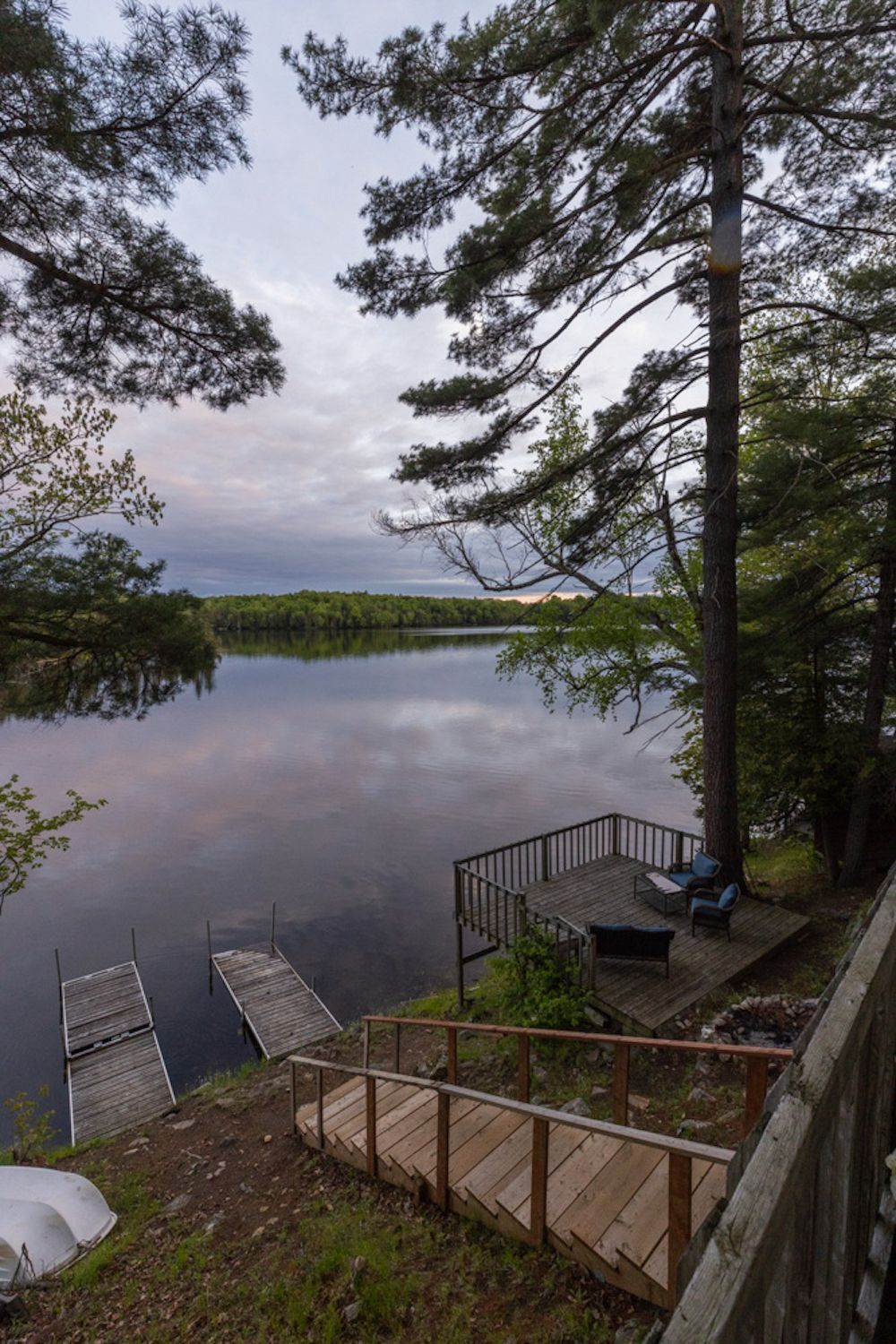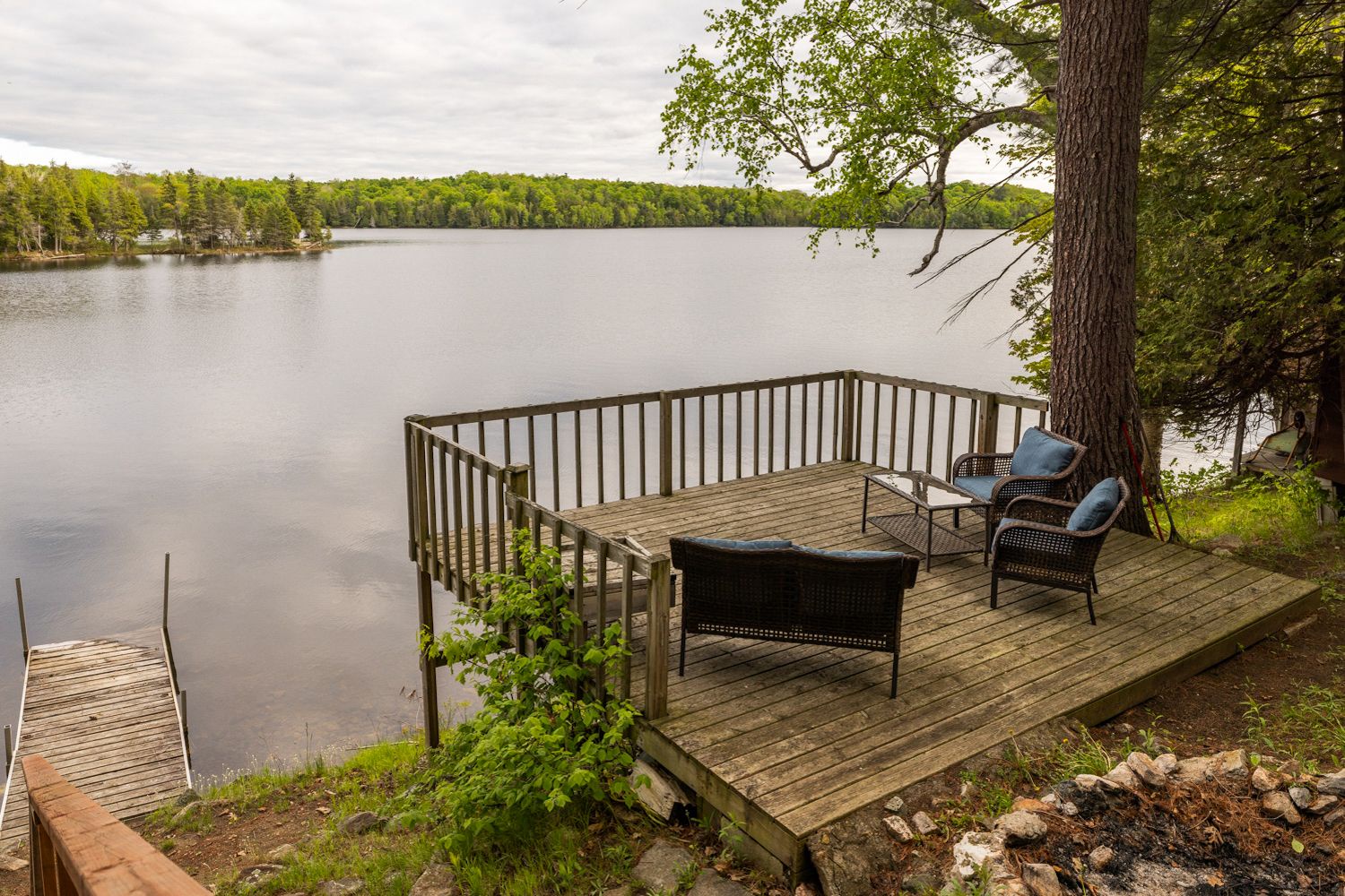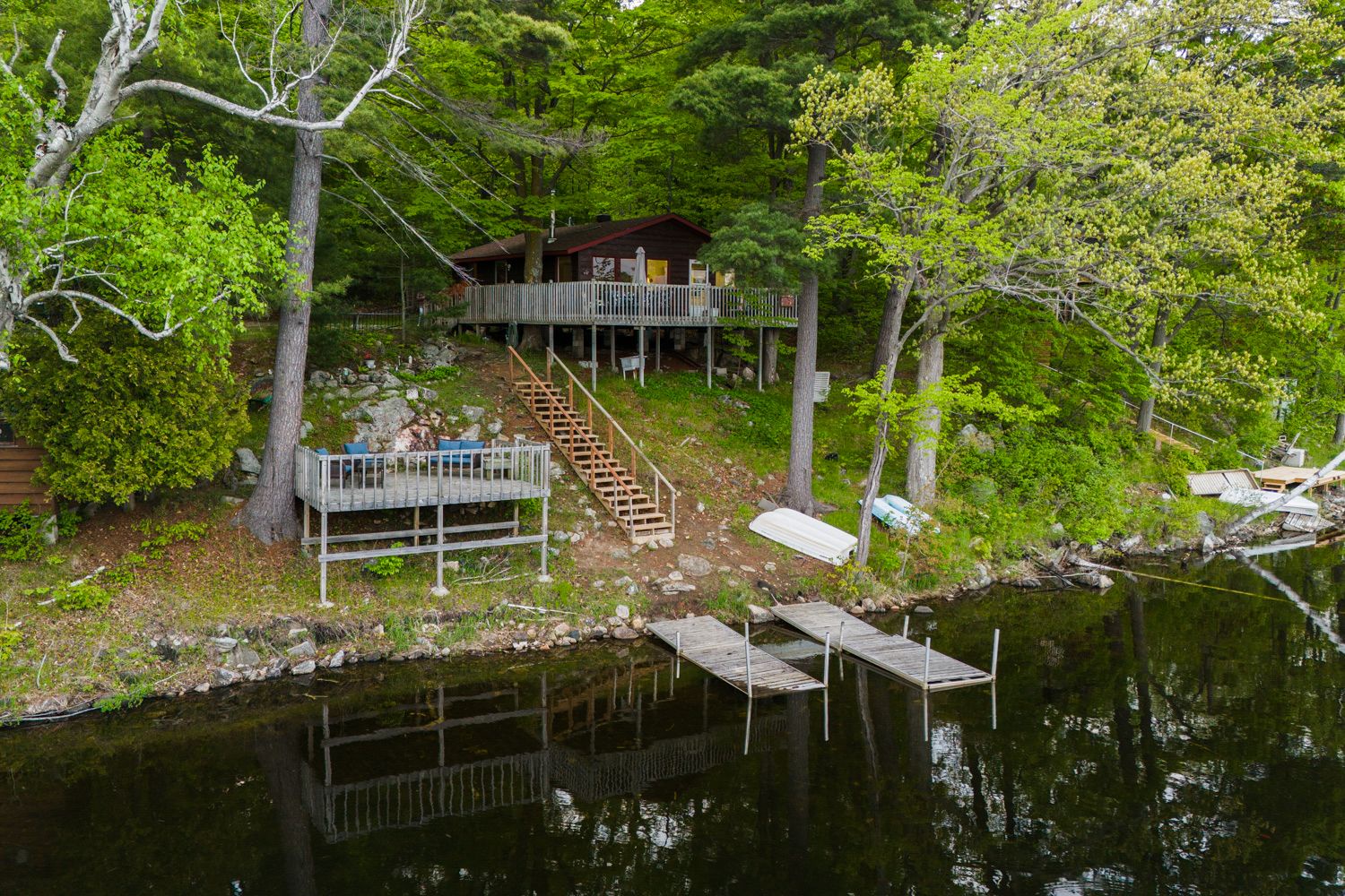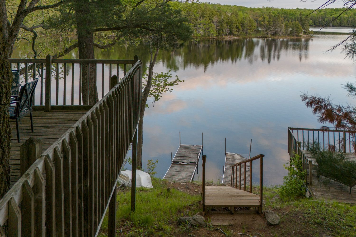 You've got that idea in your head - the family cottage, where memories are made between cannonballs and campfires. This is THAT place. And better yet, its a two-for-one deal: two seasonal cottages on nearly 5 acres of pristine waterfront on the quiet and crystal-clear Little Crosby Lake. With very few cottages on this intimate 1 km-long lake, you'll love the peace, the privacy, and the sense that you've stepped into a slower pace of life. Swim right off the shore, cast a line for bass or pike, paddle out into glassy morning water, or just sit back and let the loon calls remind you that yes, this is exactly where you're meant to be. The lower cottage features 3 bedrooms, 1 bathroom, a cozy wood stove, and expansive views of the lake, with a wraparound deck, waterfront deck, and two docks to launch your adventures. The upper cottage is tucked among mature trees and offers 2 bedrooms, 1 bathroom, and more outdoor space for lawn games, sunbathing, or lazy afternoons with a book and a breeze. Both cottages have been freshly stained to enhance their rustic charm, and new steps to the lakefront make water access even easier. Roof shingles replaced in 2020. Upper cottage is baseboard heated, while the lower cottage stays cozy with a wood stove. Use both cottages for your crew, invite friends and family to join in the fun, or enjoy one and rent the other for bonus income. As they say, "Don't wait to buy land - they're not making any more of it." This is a rare chance to own a piece of Little Crosby.