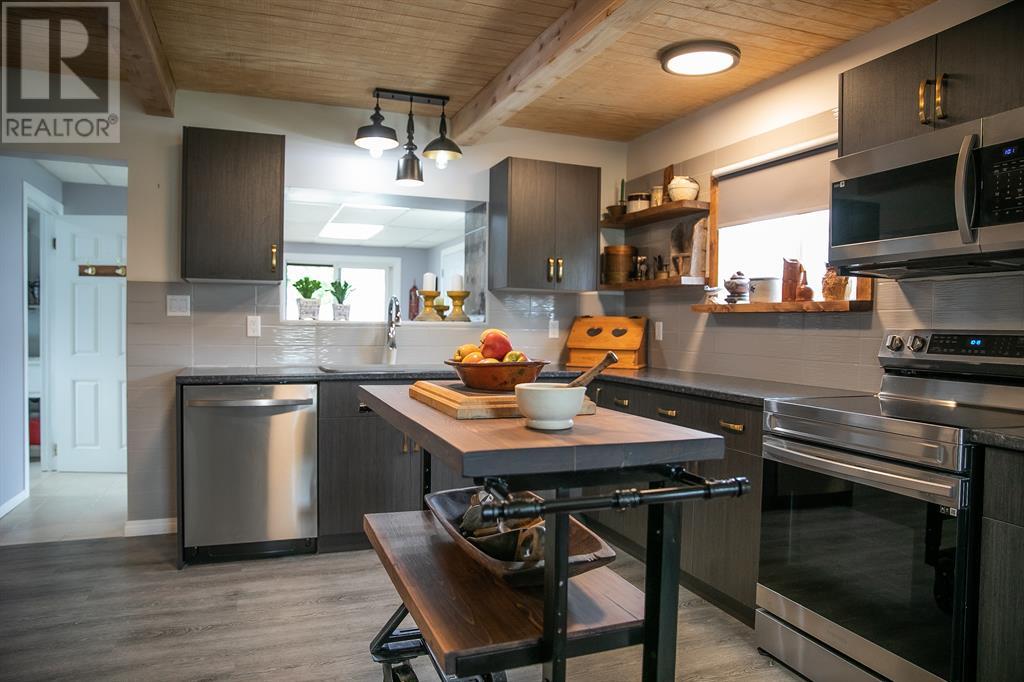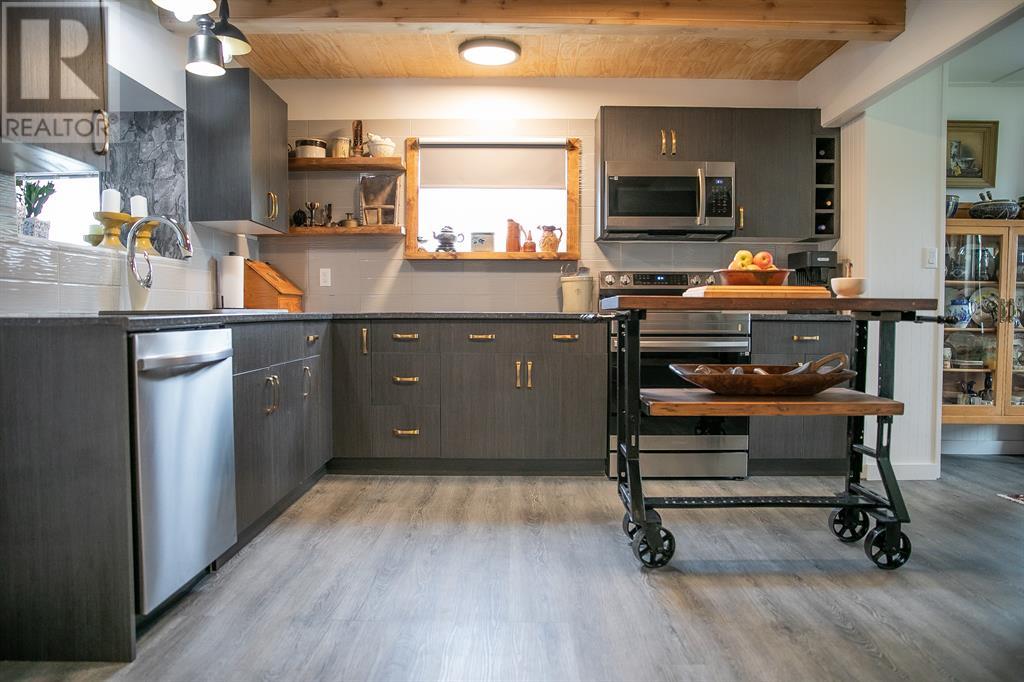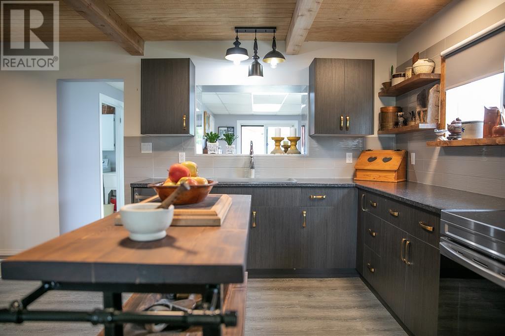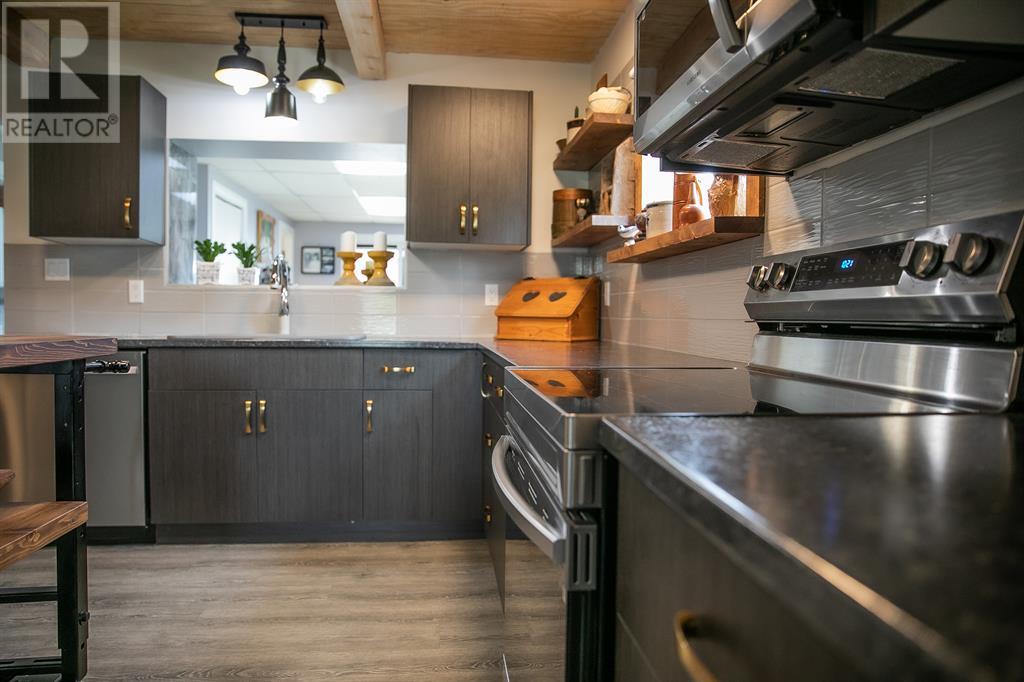 This is a MUST SEE home with character, charm, and the perfect touch of modern style. Immaculately taken care of, the front entrance welcomes you into the living room full of natural light, Canadian Made Ash hardwood and a cozy library overlooking the front yard. Be wow-ed as you step into the newly renovated kitchen featuring custom cabinetry, deep double sink, cedar beamed ceiling, new backsplash, stainless steel appliances with transferable extended warranty and lighting fixtures that bring the dining room and kitchen together so elegantly. Attention to detail and design is evident with matching antique pantry doors and upcycled floating shelves of the original farm house. Continue on to the in-floor heat of the back foyer, large laundry room, 3 piece bathroom with large walk-in rain shower and easy access to the back patio for summer barbeques. Upstairs, you will find 3 excellent sized bedrooms, including the primary bedroom with walk-in closet, the Office/Flex space - also with in-floor heat, and a charming 4 piece bathroom. The basement features another bathroom, utility room, and storage with enough room to add your own personal touch! Outside, the drive through parking pad extends all the way to the back alley for plenty of off-street parking. The backyard is the perfect place for gathering with family and friends – fully fenced and landscaped with fire pit area, multiple patios, an insulated work shop and a shed for even more storage! Close to schools, playgrounds and walking distance to uptown amenities; inside and out, this home has it all! (id:22211)