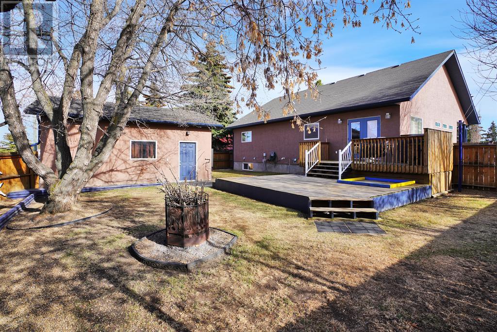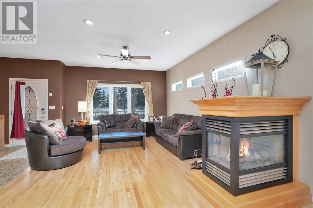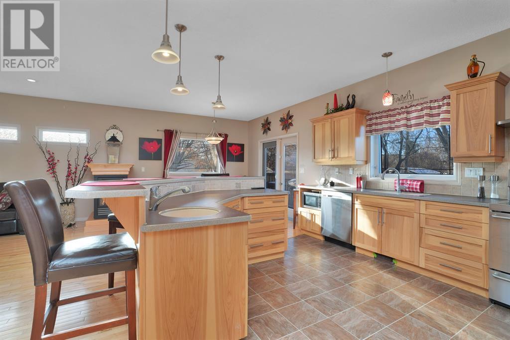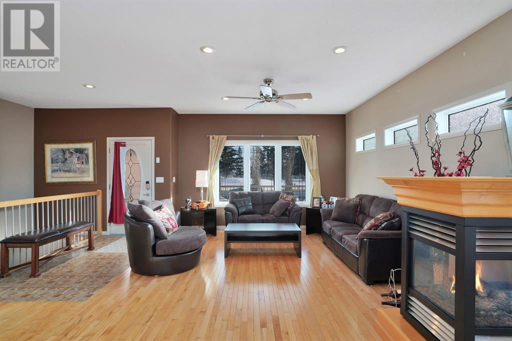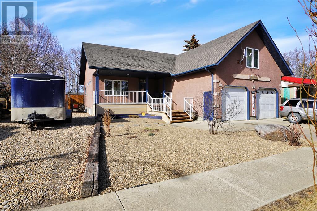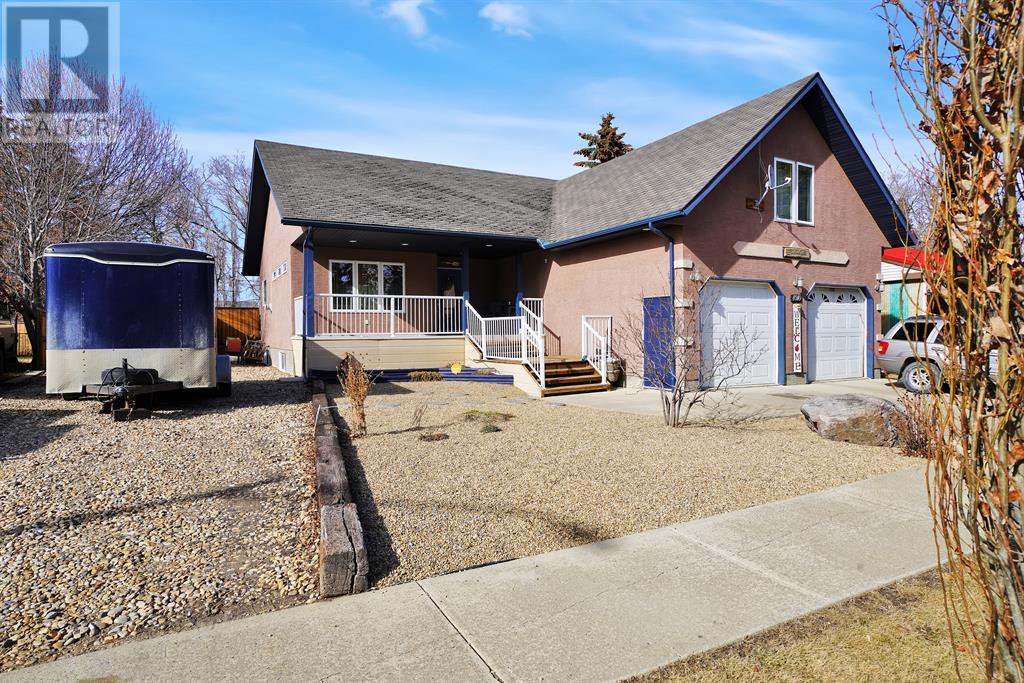 Are you wanting the IDEAL Home in a Friendly, Rural Community to raise your Family in? This beautiful 4 bed, 3 bath home has it all! Located on an extra large lot within walking distance to many of Rimbey's amenities including a variety of restaurants, shopping, schools, swimming pool, community centre and hospital. This home is situated right across from a large playground so not only will you not have neighbouring houses across the street but you can watch the kids run off some energy while relaxing on your own covered porch. As you enter the home you will find that every detail to living in style and comfort has been thought of throughout every level. The spacious, open concept main floor includes a comfortable living room partially seperated from the dining room by a free-standing gas fireplace. A large, raised island has plenty of room for sitting and keeping the cook company and even has an additional sink/garburetor. Tons of cupboard space, a main sink/garburetor, high quality appliances, gorgeous gas stove and huge walk-in pantry make this kitchen every family chef's dream! Patio doors leading to the 2 tiered back deck add to your culinary options with plenty of room for the BBQ expert. The remainder of the main floor consists of a bedroom (office), 4 pc bath and spacious laundry room with a handy, fold down ironing board, impressive amount of storage cabinets (so much storage in this home!) that is conveniently located with access to the attached 2 car garage. Upstairs you will find your own private retreat in the massive primary bedroom with its' sizable walk-in closet and 4pc ensuite complete with his and her sinks and a steam shower with extra jets. There's even a handy 'over the stairs' storage cubby for your luggage etc. Downstairs you will find a huge rec room, 2 more good sized bedrooms, a 4pc bathroom, the utility room and a den (currently home to a tanning bed). The backyard is fenced, private and has a firepit area as well as a heate d 24' x 24' detached garage with 16' door and back alley access. Did we mention that the lot is large enough to accomodate plenty of RV parking to the west of the home? Low maintenance landscaping adds to the warm feel of this home that was designed to be lived in and loved! (id:22211)