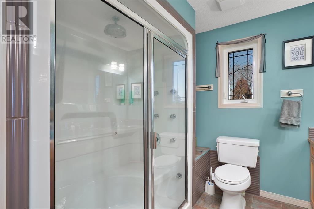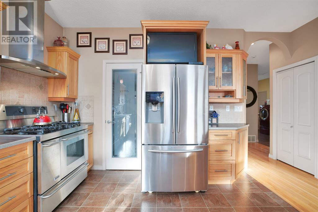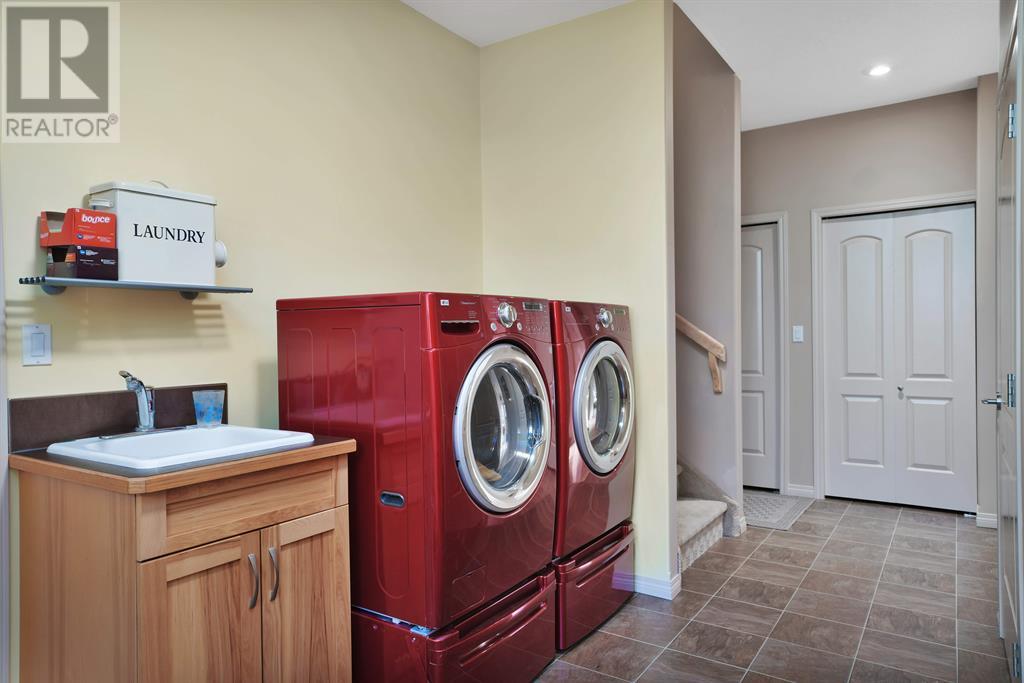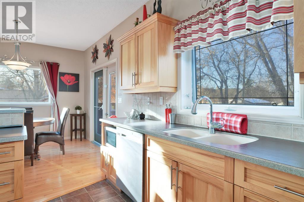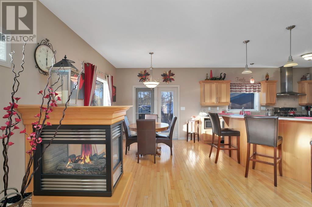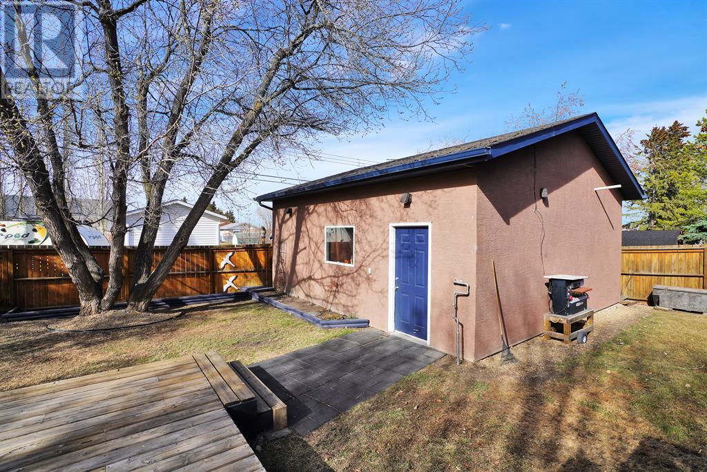 Are you wanting the IDEAL Home in a Friendly, Rural Community to raise your Family in? This beautiful 4 bed, 3 bath home has it all! Located on an extra large lot within walking distance to many of Rimbey's amenities including a variety of restaurants, shopping, schools, swimming pool, community centre and hospital. This home is situated right across from a large playground so not only will you not have neighbouring houses across the street but you can watch the kids run off some energy while relaxing on your own covered porch. As you enter the home you will find that every detail to living in style and comfort has been thought of throughout every level. The spacious, open concept main floor includes a comfortable living room partially seperated from the dining room by a free-standing gas fireplace. A large, raised island has plenty of room for sitting and keeping the cook company and even has an additional sink/garburetor. Tons of cupboard space, a main sink/garburetor, high quality appliances, gorgeous gas stove and huge walk-in pantry make this kitchen every family chef's dream! Patio doors leading to the 2 tiered back deck add to your culinary options with plenty of room for the BBQ expert. The remainder of the main floor consists of a bedroom (office), 4 pc bath and spacious laundry room with a handy, fold down ironing board, impressive amount of storage cabinets (so much storage in this home!) that is conveniently located with access to the attached 2 car garage. Upstairs you will find your own private retreat in the massive primary bedroom with its' sizable walk-in closet and 4pc ensuite complete with his and her sinks and a steam shower with extra jets. There's even a handy 'over the stairs' storage cubby for your luggage etc. Downstairs you will find a huge rec room, 2 more good sized bedrooms, a 4pc bathroom, the utility room and a den (currently home to a tanning bed). The backyard is fenced, private and has a firepit area as well as a heate d 24' x 24' detached garage with 16' door and back alley access. Did we mention that the lot is large enough to accomodate plenty of RV parking to the west of the home? Low maintenance landscaping adds to the warm feel of this home that was designed to be lived in and loved! (id:22211)