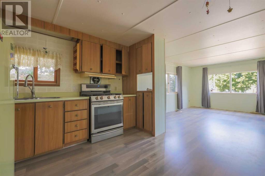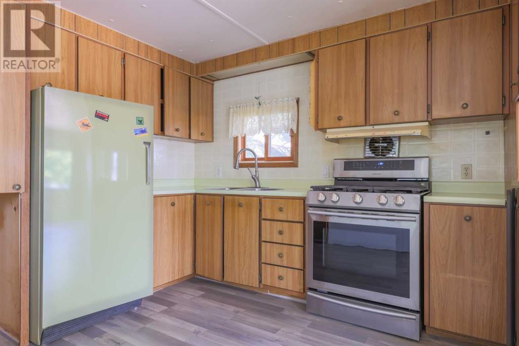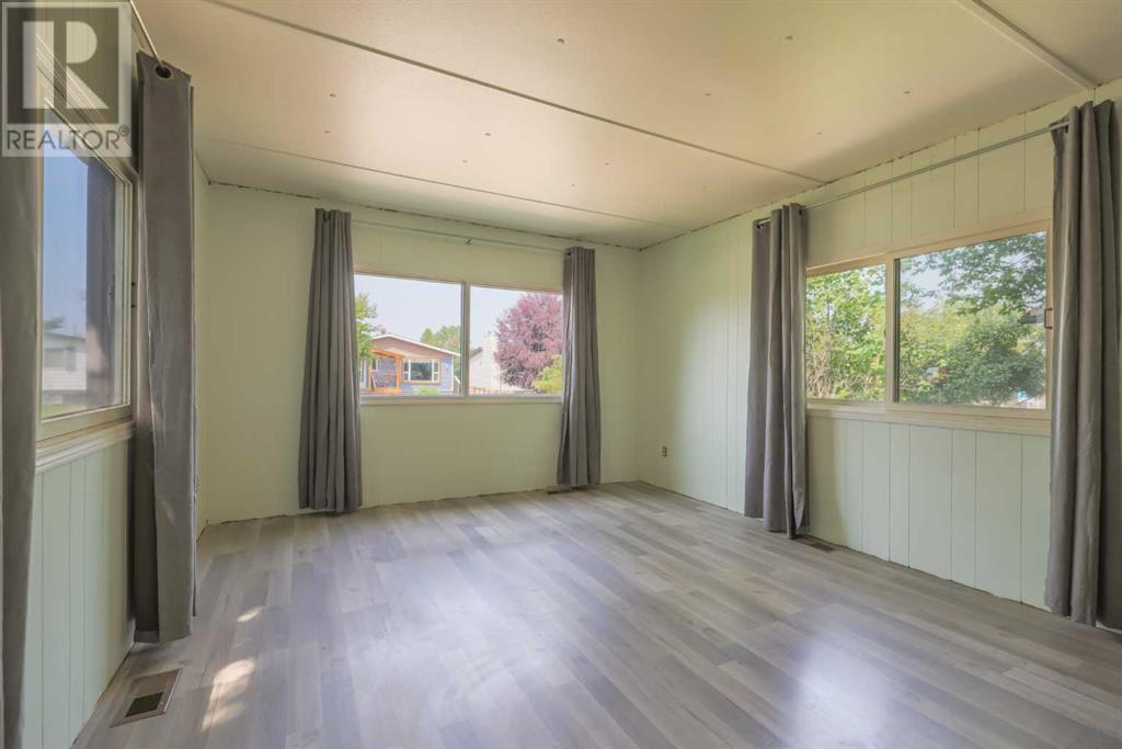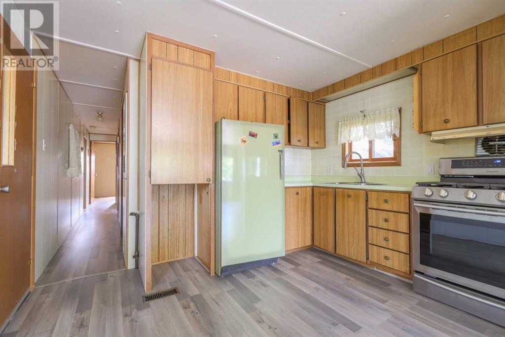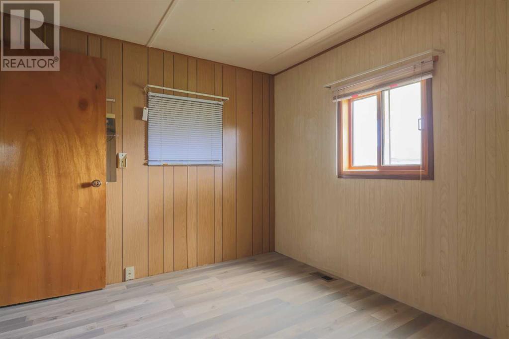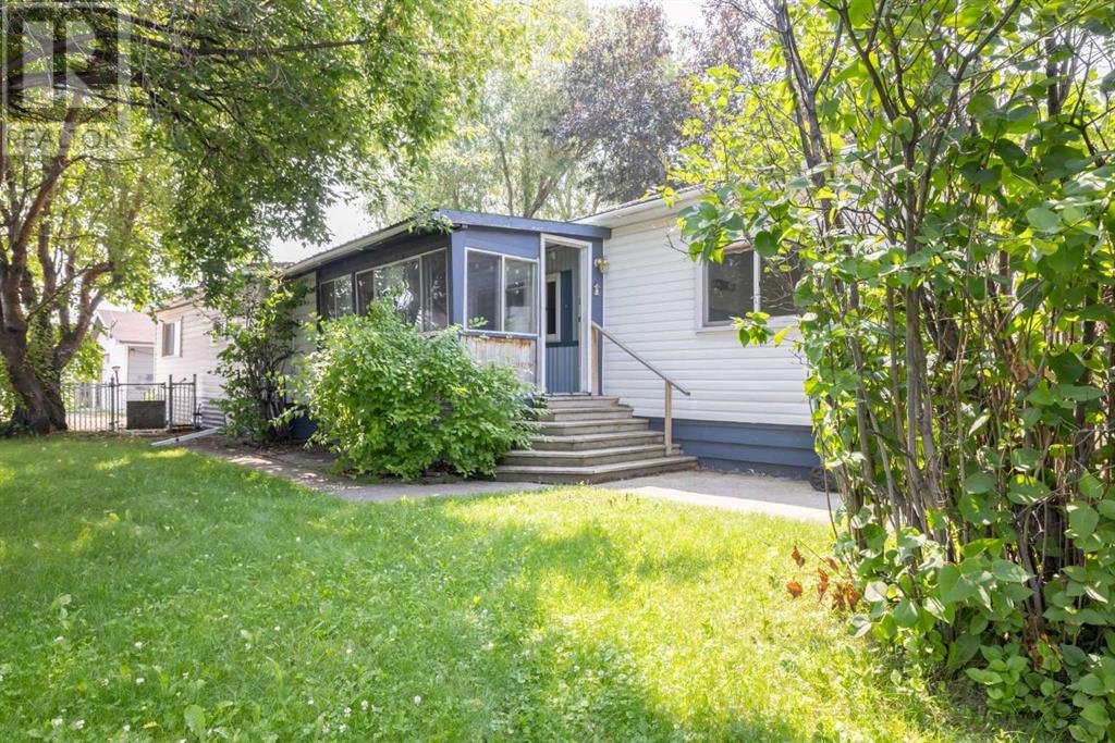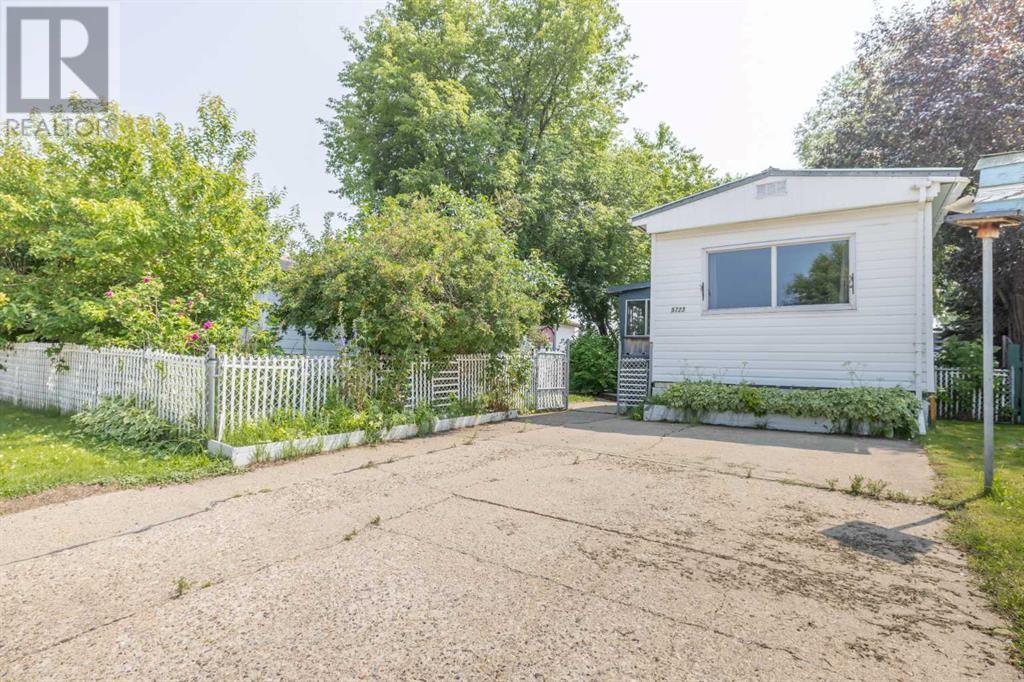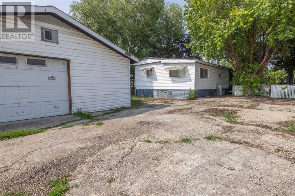 Affordable bungalow with a lovely fenced yard and double car garage. This 1075 sq ft mobile is located on it's own lot backing onto St. Matthew School. It features 2 bedrooms with a 4 piece bathroom on the main floor, and a large third bedroom/den as an addition. Natural light brightens the open concept living room and kitchen from the 3 large windows. Paved parking in the front of the home and additional large paved parking in the back for all your toys next to the garage and storage. Modern gas range stove in the kitchen with updated flooring in the living room and kitchen. The fenced yard is nicely landscaped with mature trees and a covered porch. Located near schools and parks in the heart of Rocky Mountain House. (id:22211)