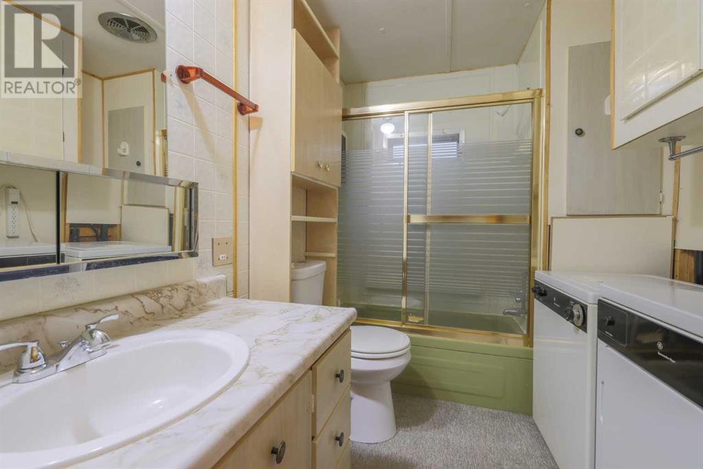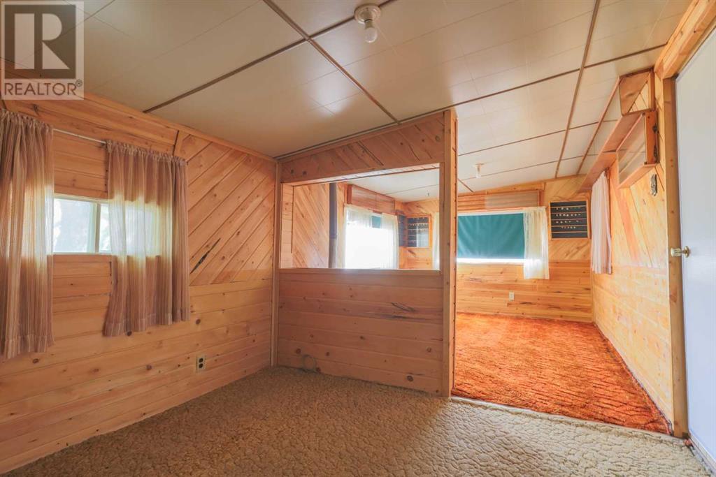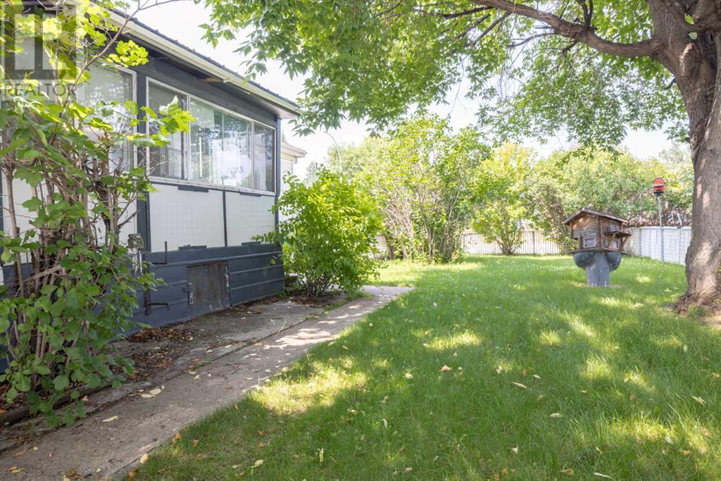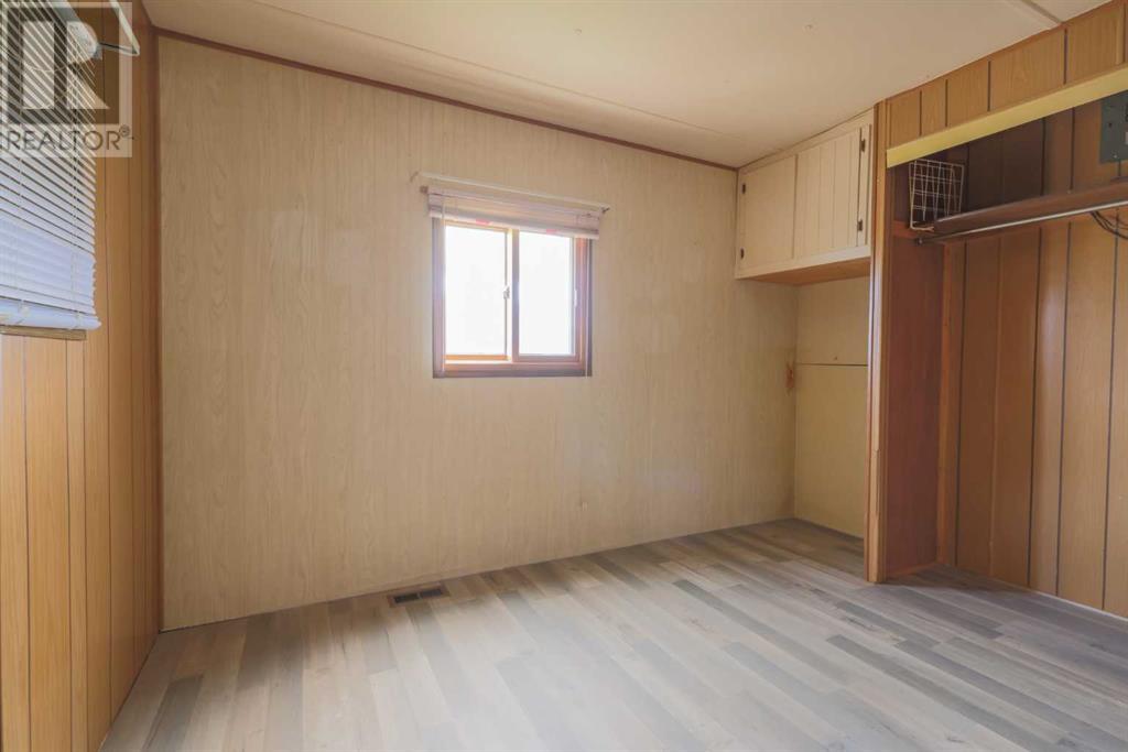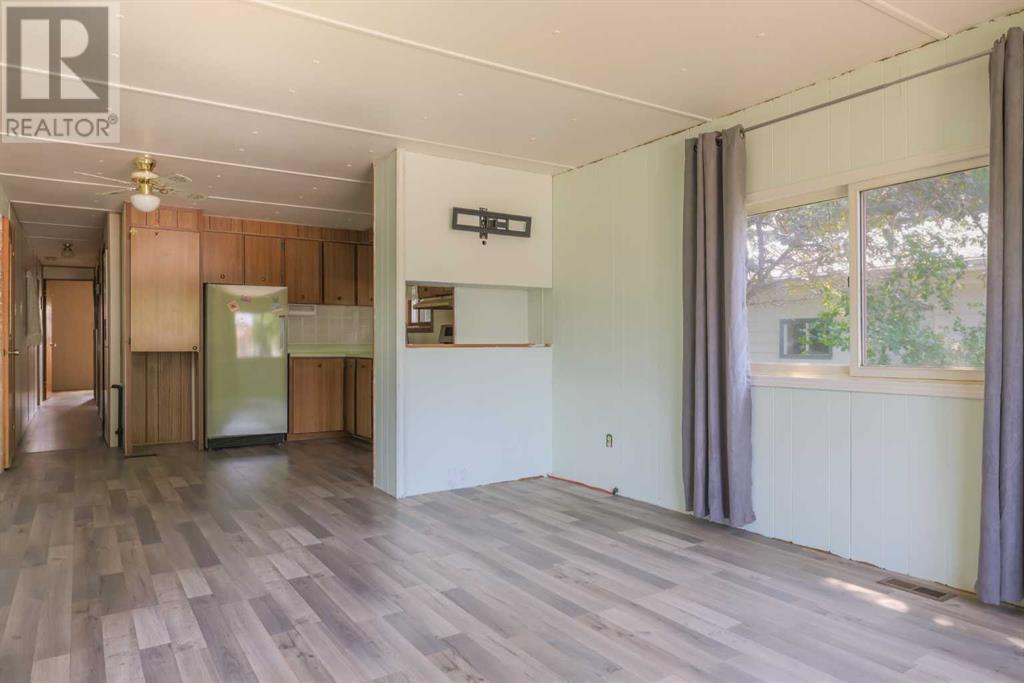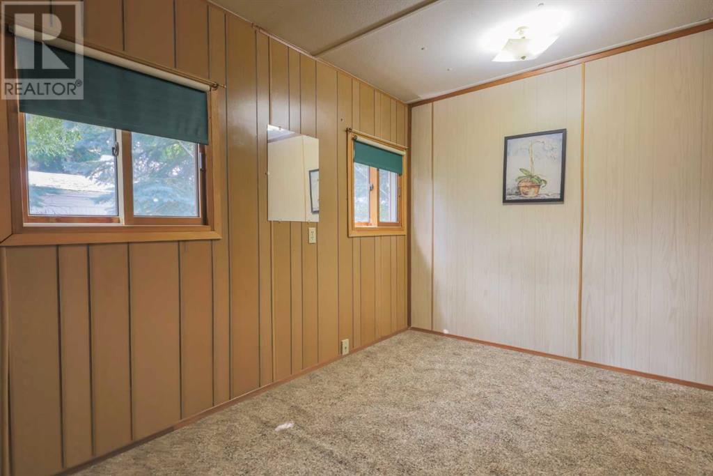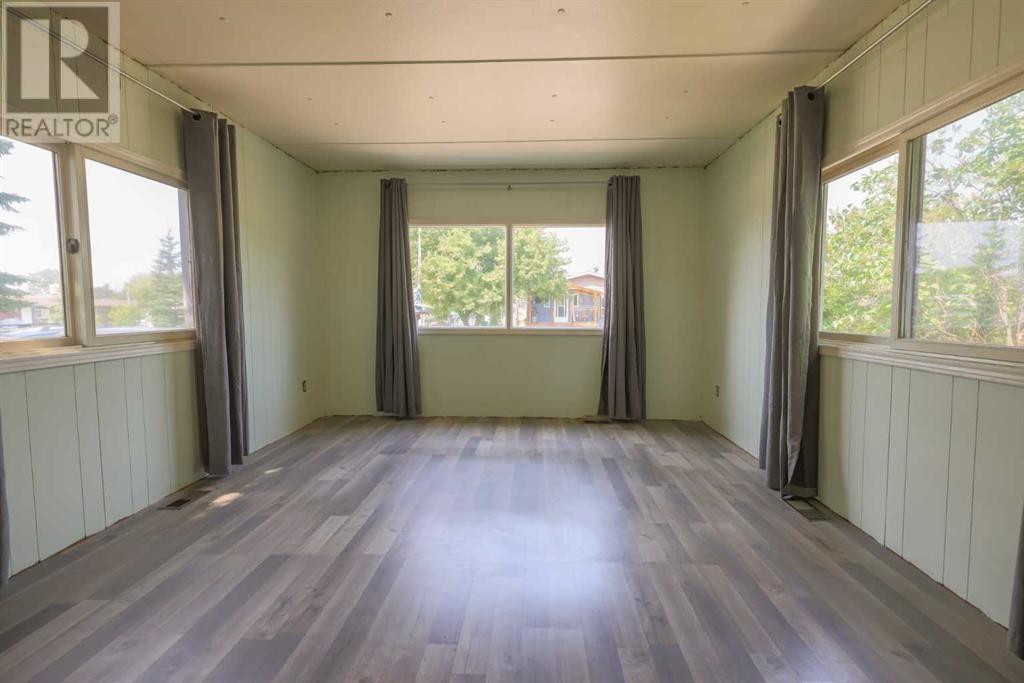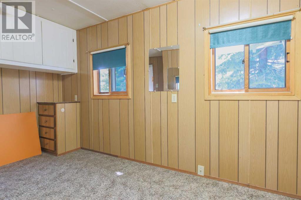 Affordable bungalow with a lovely fenced yard and double car garage. This 1075 sq ft mobile is located on it's own lot backing onto St. Matthew School. It features 2 bedrooms with a 4 piece bathroom on the main floor, and a large third bedroom/den as an addition. Natural light brightens the open concept living room and kitchen from the 3 large windows. Paved parking in the front of the home and additional large paved parking in the back for all your toys next to the garage and storage. Modern gas range stove in the kitchen with updated flooring in the living room and kitchen. The fenced yard is nicely landscaped with mature trees and a covered porch. Located near schools and parks in the heart of Rocky Mountain House. (id:22211)