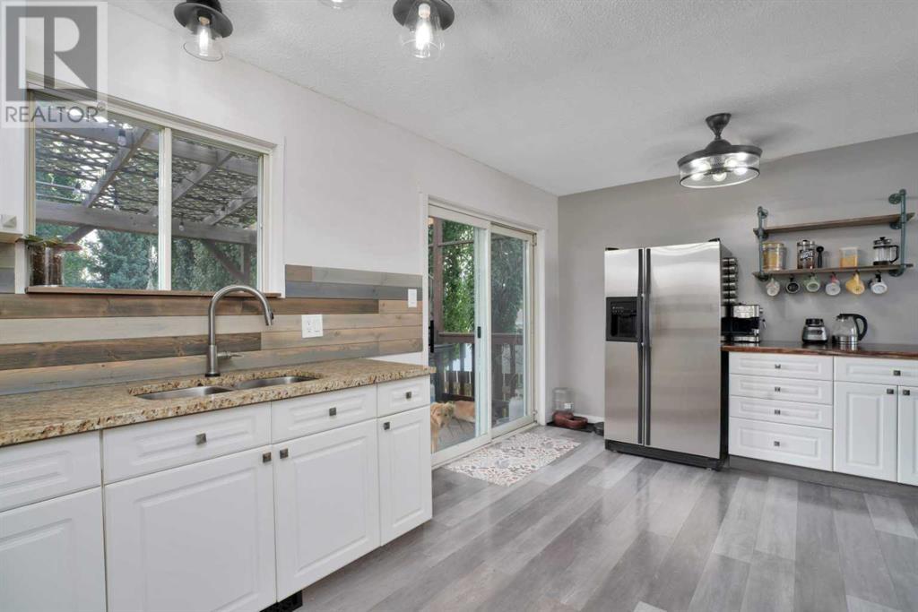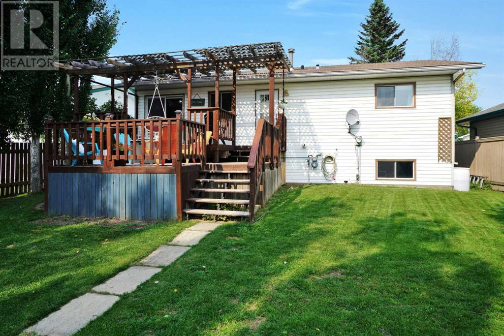 FAMILY HOME, GREAT NEIGHBOURHOOD! This property features the perfect family backyard and tiered deck for spending time outside all summer long and hosting family BBQs. 1983 bi-level with many updates offering 3 bedrooms on the main floor and 2 bathrooms including a renovated 4-piece main floor bathroom and a private 2-piece ensuite off the primary bedroom. The basement offers a spacious and well-lit family room and a corner fireplace, an oversized 4th bedroom, a 3-piece bathroom, and a dedicated laundry room. In the laundry room, there is currently a small home-based salon set up which is IDEAL for a stay-at-home parent who wants to work from the comforts of home / alternatively turn this space into your dream laundry room oasis. Very walkable location with close proximity to schools (elementary, middle, and high school) parks, and to the bike/walking path. Recent upgrades include light fixtures, hot water tank, furnace. the front living room window, shingles, fence, flooring, kitchen cabinets & granite countertops, custom coffee bar zone, beautiful stainless steel touch faucet, and to top it off the bathrooms have also been upgraded. Situated on a 0.12-acre lot (53x124) there is ample space to build a garage in the future and plenty of room to park vehicles and an RV with the existing rear parking pad. Lots of rustic modern details throughout the home making it cozy and inviting. Must be seen to be FULLY appreciated! (id:22211)
