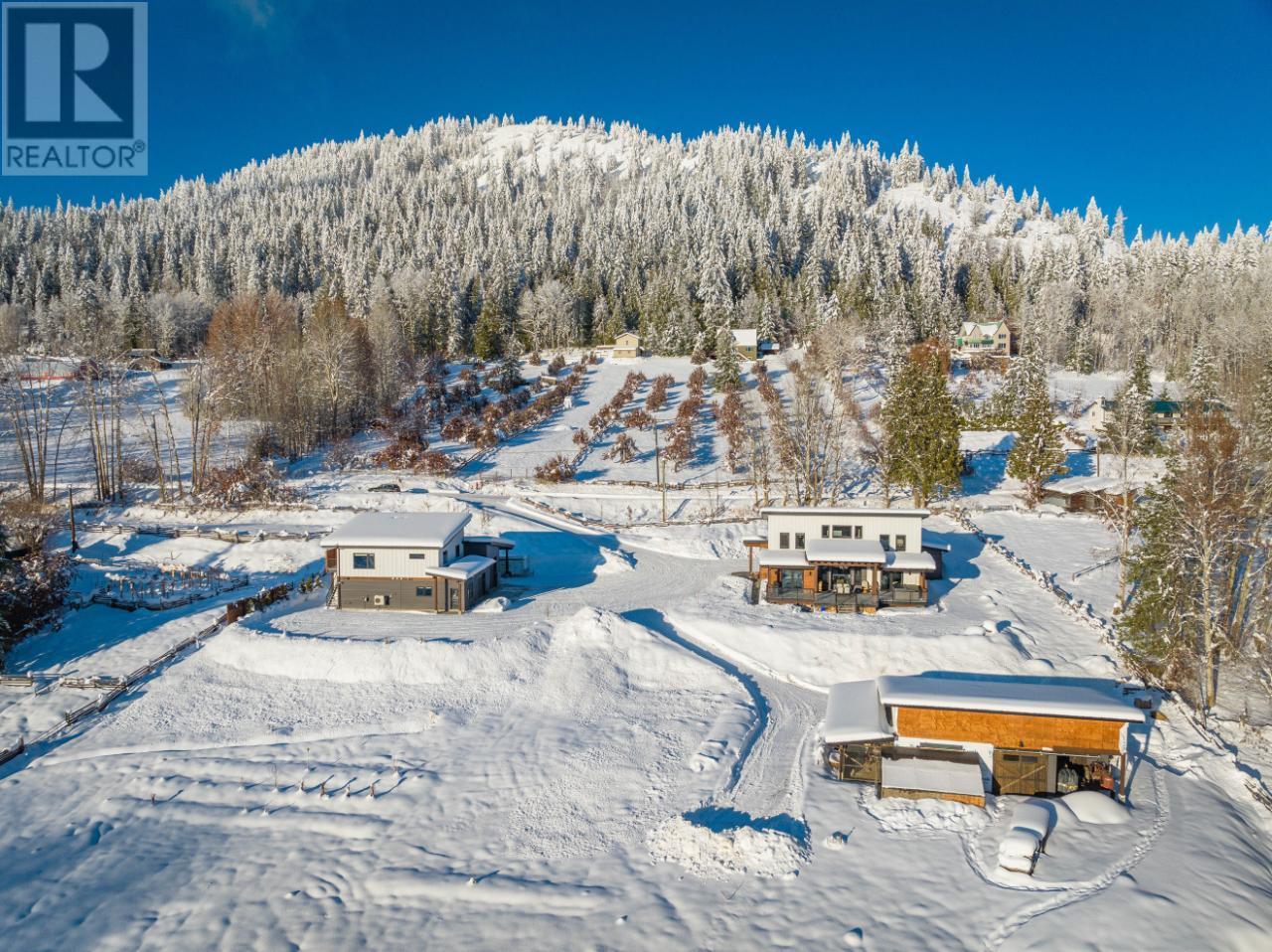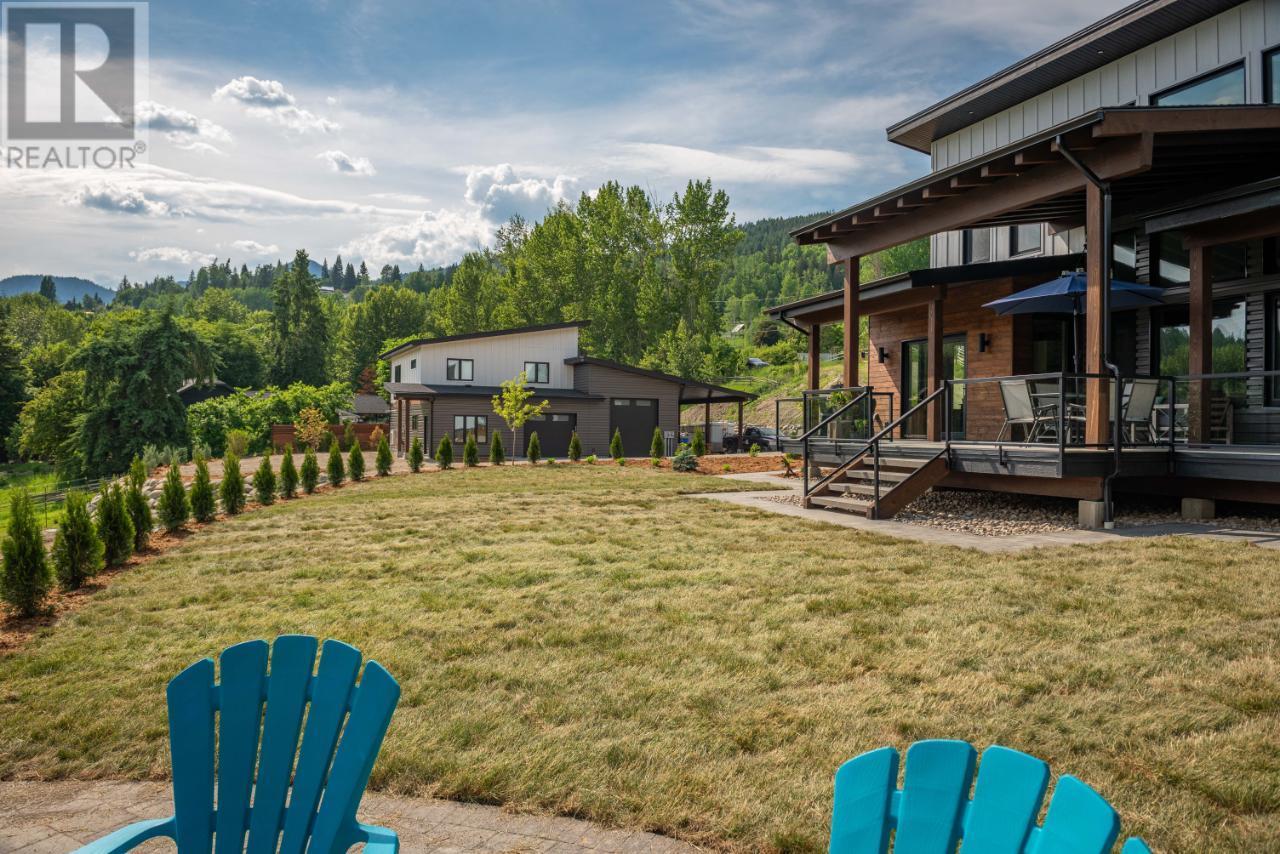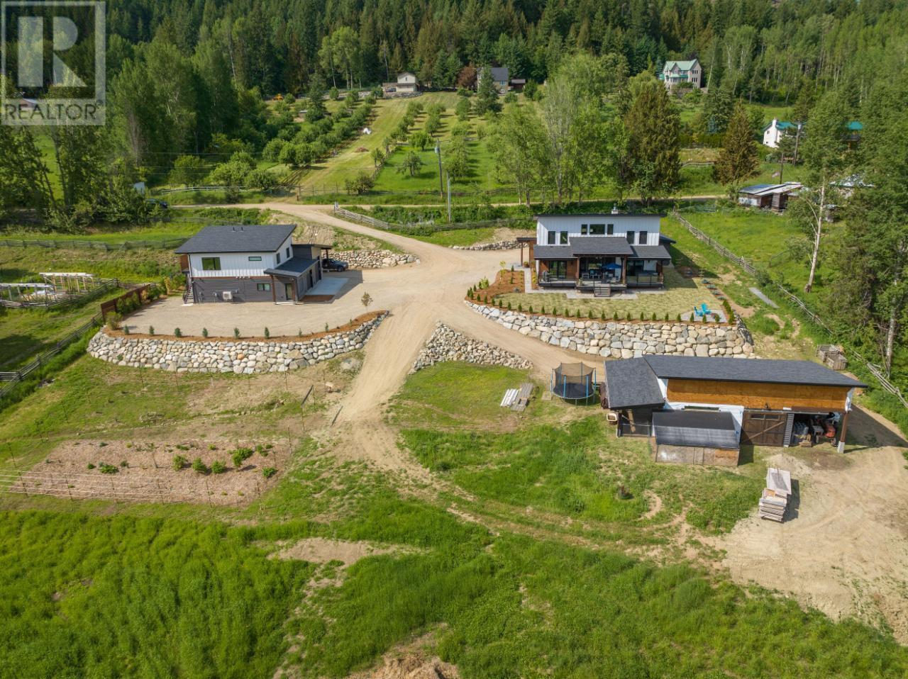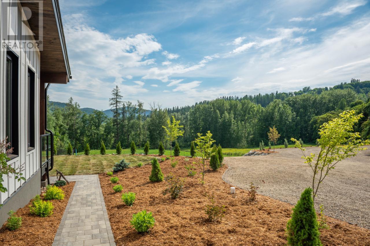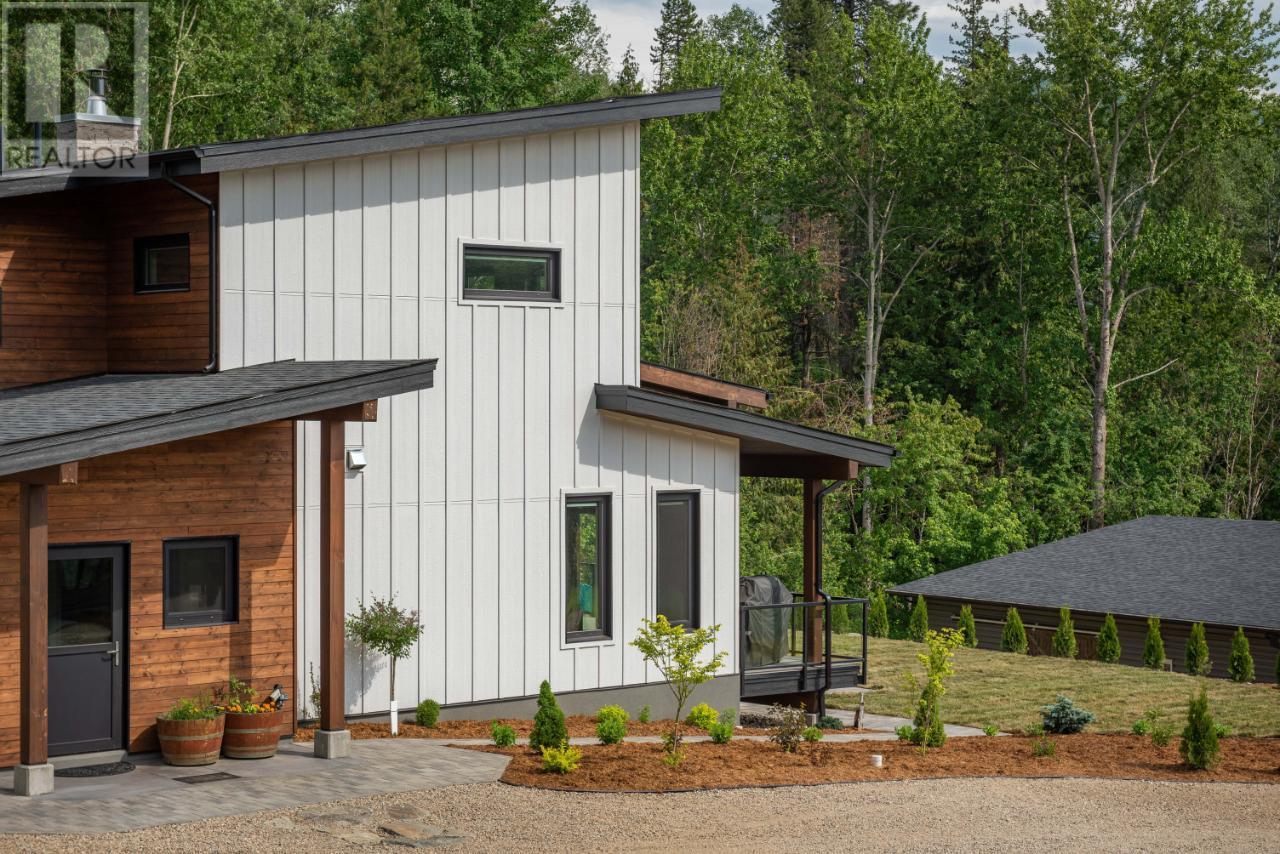 Welcome to 2993 Happy Valley, this executive estate is unlike any property around. From every corner of this property you will enjoy the serenity of rural life while soaking in incredible views. Easily access Rossland's legendary trail networks or enjoy a quick stroll into town. Established in 2022 this property boasts just under 5 acres of mixed pasture & forest land with over 200 planted trees and shrubs for added beauty & future privacy, a stunning home, a 1880 sq ft shop with a 944 sq ft secondary suite above & a barn complete with chicken coop & heated feed room. This incredible home is overflowing with quality & design. The energy efficiency exceeds a step code 4 through additional insulation, triple pane tilt and turn windows and some of the most efficient heating and cooling systems around. The gas boiler feeds the radiant in-floor heat on the main floor & garage while the ductless mini split air source heat pump keeps the upper level warm and nicely cools the entire home in the summer. The energy efficient wood fireplace adds warmth & charm. Want to take energy efficiency to the next level; conduits for future solar are already installed. As far as the design goes we'll let the pictures do the talking for this showstopper of a home. The shop space is what dreams are made of & includes a bathroom and office space as well as a 2 bedroom self contained furnished secondary suite above. Property is serviced by municipal water & also has full RV hookups. (id:22211)