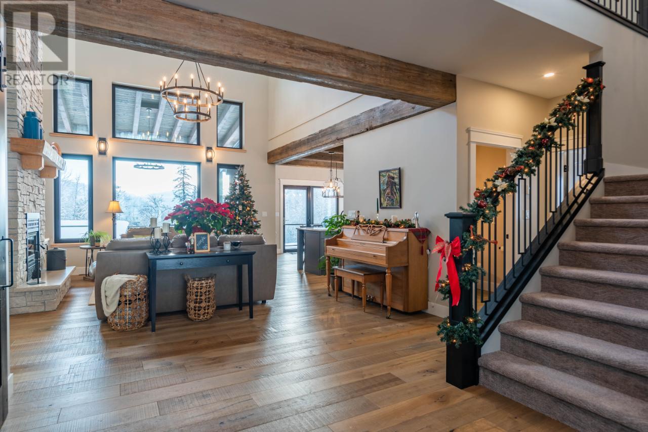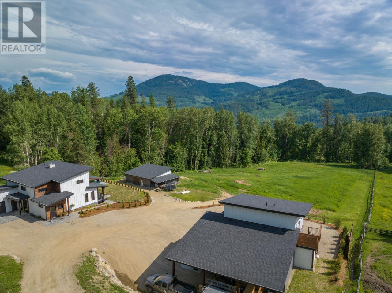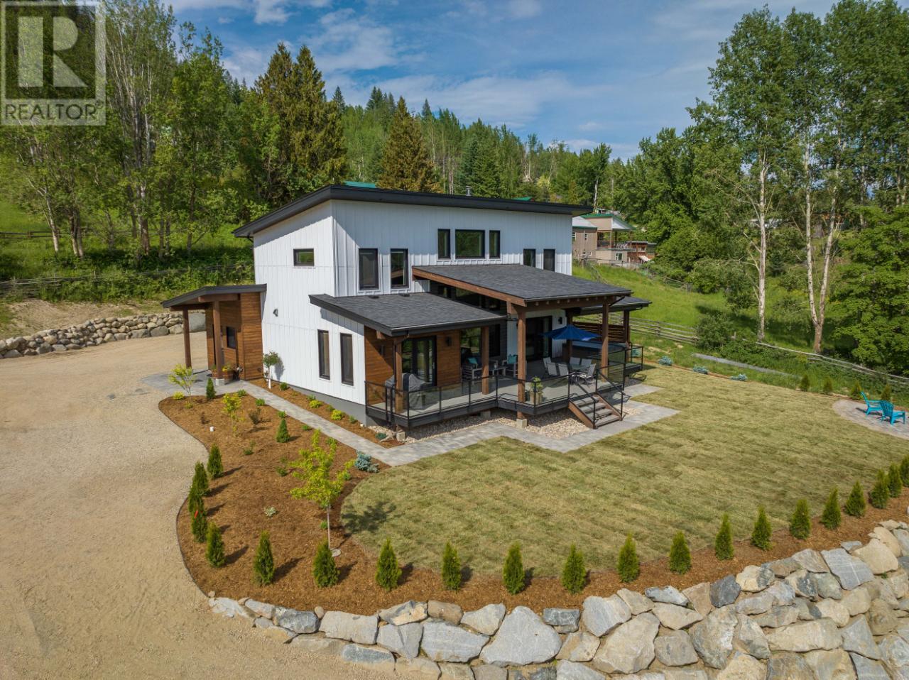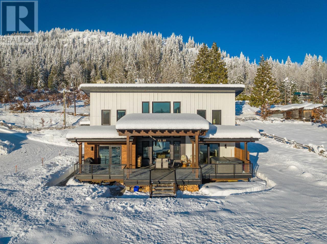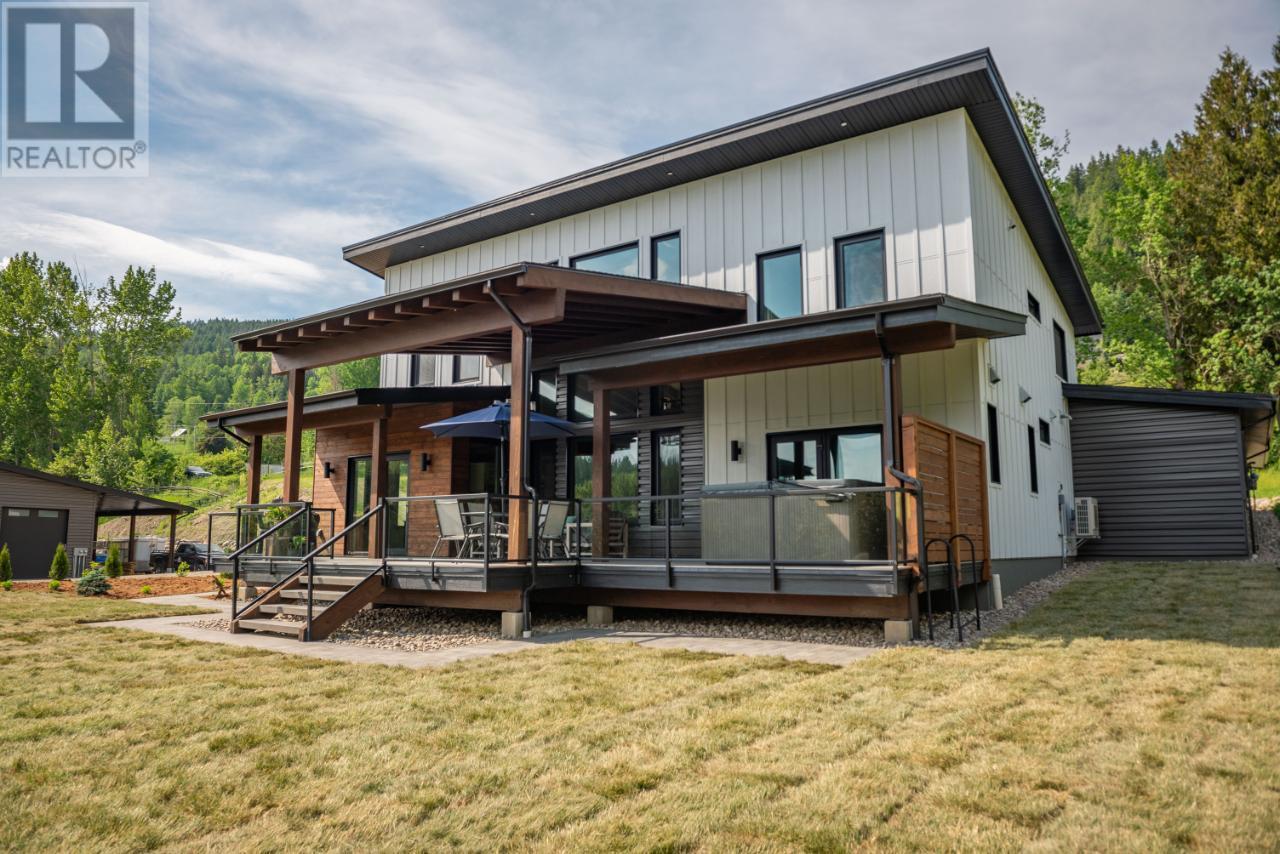 Welcome to 2993 Happy Valley, this executive estate is unlike any property around. From every corner of this property you will enjoy the serenity of rural life while soaking in incredible views. Easily access Rossland's legendary trail networks or enjoy a quick stroll into town. Established in 2022 this property boasts just under 5 acres of mixed pasture & forest land with over 200 planted trees and shrubs for added beauty & future privacy, a stunning home, a 1880 sq ft shop with a 944 sq ft secondary suite above & a barn complete with chicken coop & heated feed room. This incredible home is overflowing with quality & design. The energy efficiency exceeds a step code 4 through additional insulation, triple pane tilt and turn windows and some of the most efficient heating and cooling systems around. The gas boiler feeds the radiant in-floor heat on the main floor & garage while the ductless mini split air source heat pump keeps the upper level warm and nicely cools the entire home in the summer. The energy efficient wood fireplace adds warmth & charm. Want to take energy efficiency to the next level; conduits for future solar are already installed. As far as the design goes we'll let the pictures do the talking for this showstopper of a home. The shop space is what dreams are made of & includes a bathroom and office space as well as a 2 bedroom self contained furnished secondary suite above. Property is serviced by municipal water & also has full RV hookups. (id:22211)