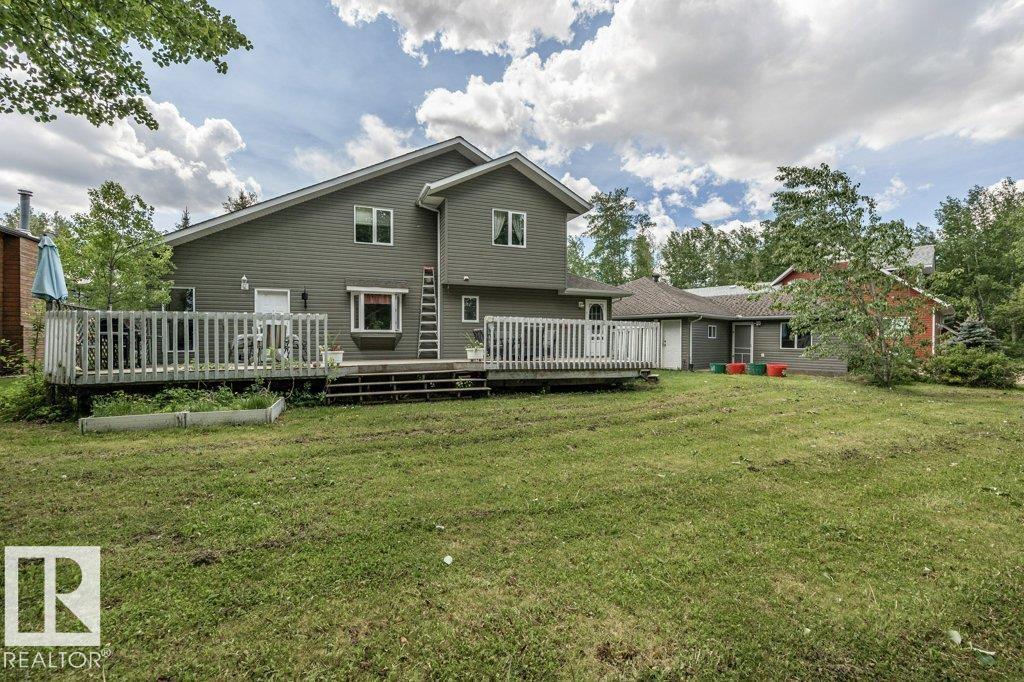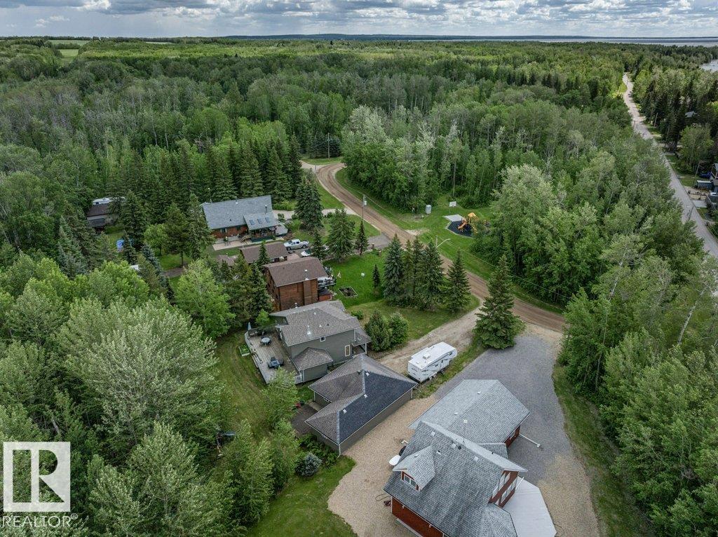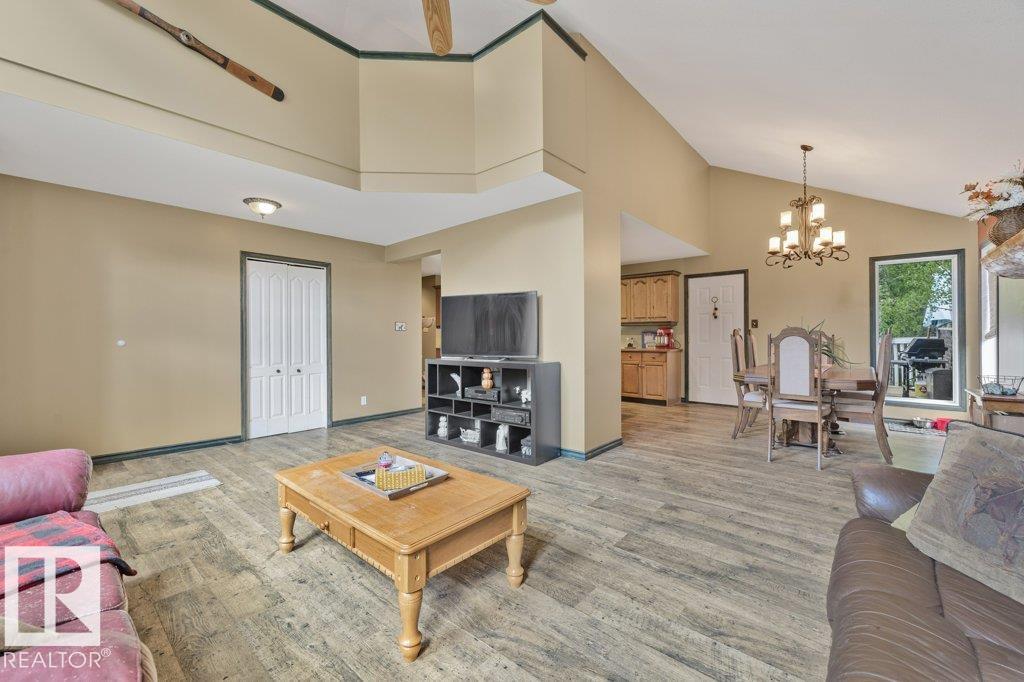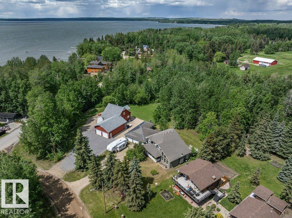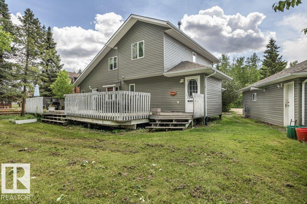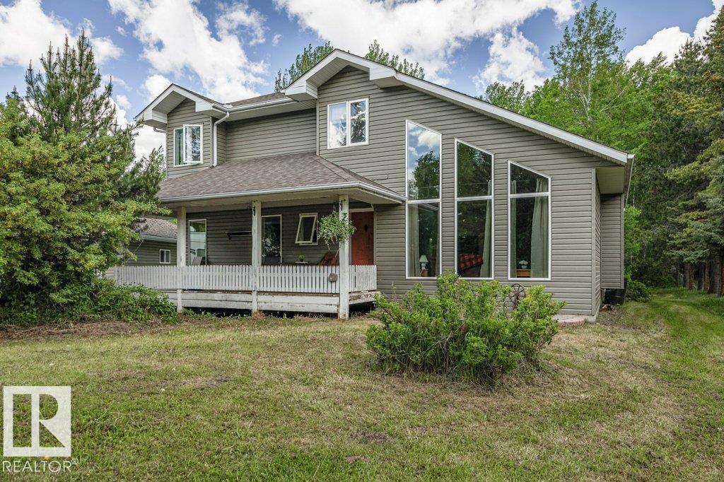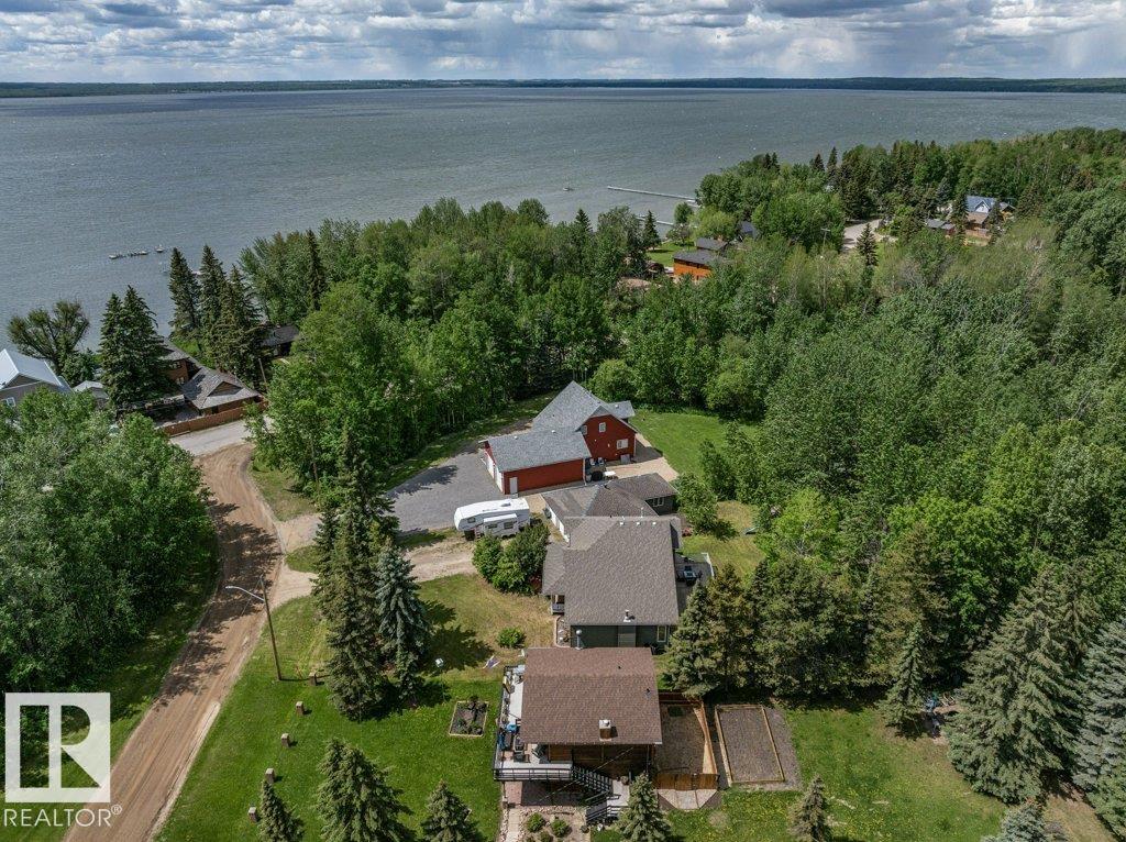 Escape to your private retreat on a tree-lined half-acre in Johnsonia Beach, just a minute’s walk to the lake via a scenic greenbelt. This 1.5-storey home offers 3 bedrooms, 2.5 baths, and vaulted ceilings that fill the space with light. The main floor features a bright kitchen with a gas stove and oversized island flowing into a cozy living room with a wood-burning fireplace, perfect for family gatherings or quiet evenings. The main-floor primary suite includes a 2-piece ensuite and separate vanity for added privacy. Upstairs, two bedrooms, a loft, and a versatile den provide space for work, hobbies, or guests. Step outside to enjoy morning coffee on the covered front veranda, entertain on the back deck, or gather around the firepit while taking in peaceful forest views. A triple detached garage with an attached guest room offers flexibility for visitors or projects. Surrounded by trails and just minutes from golf, dining, shopping, and Pigeon Lake, this home is more than a house—it’s a lifestyle.