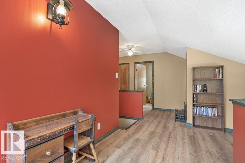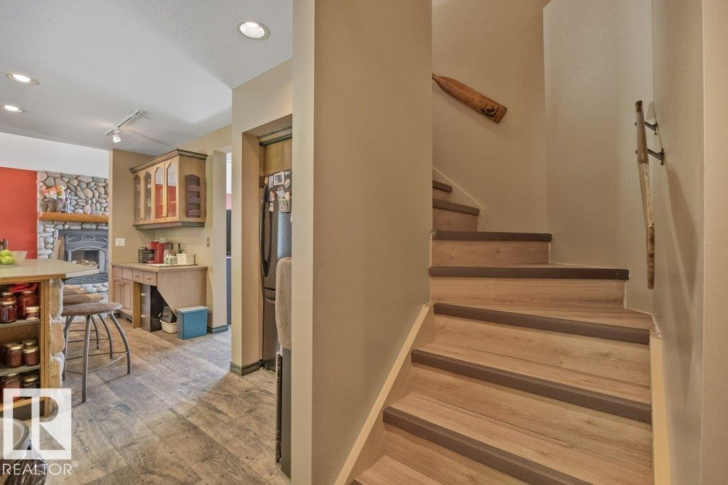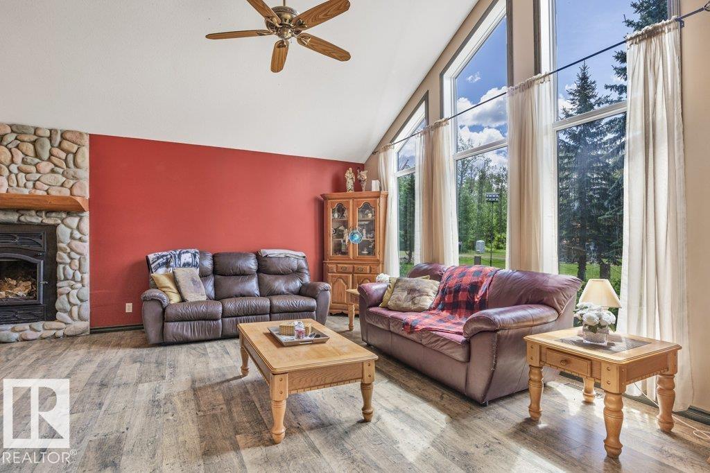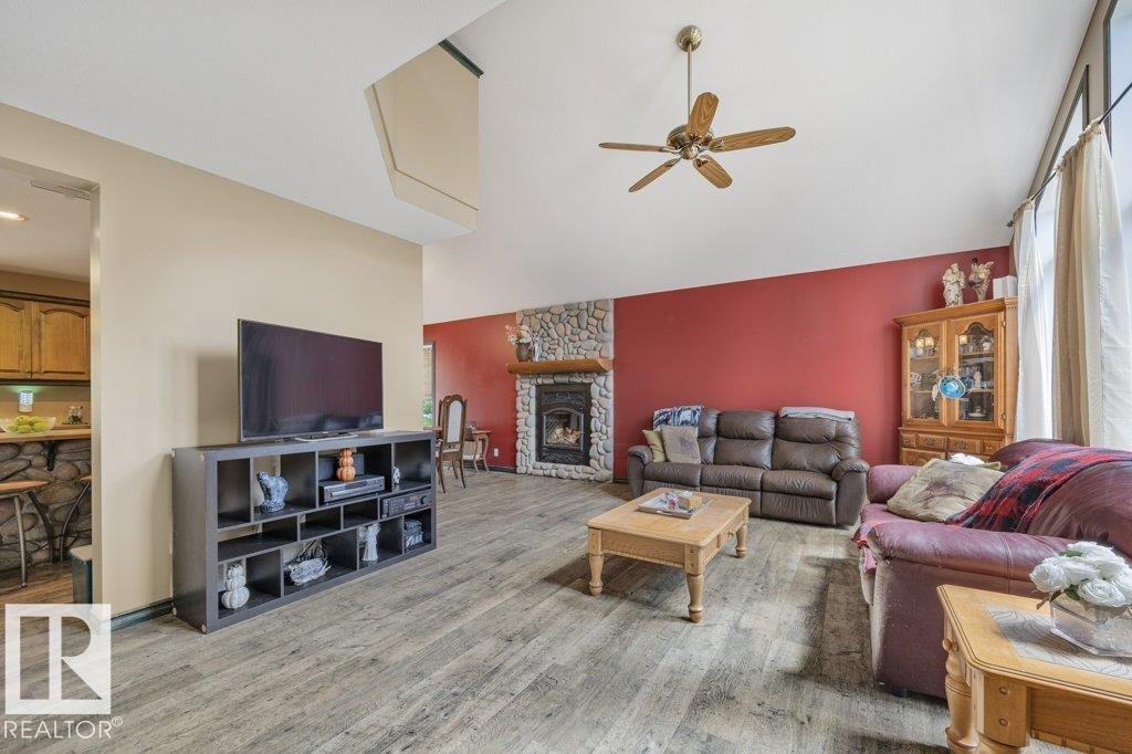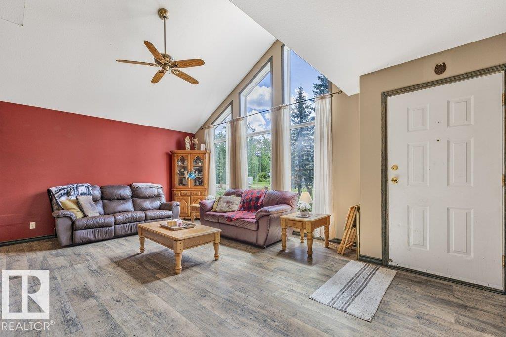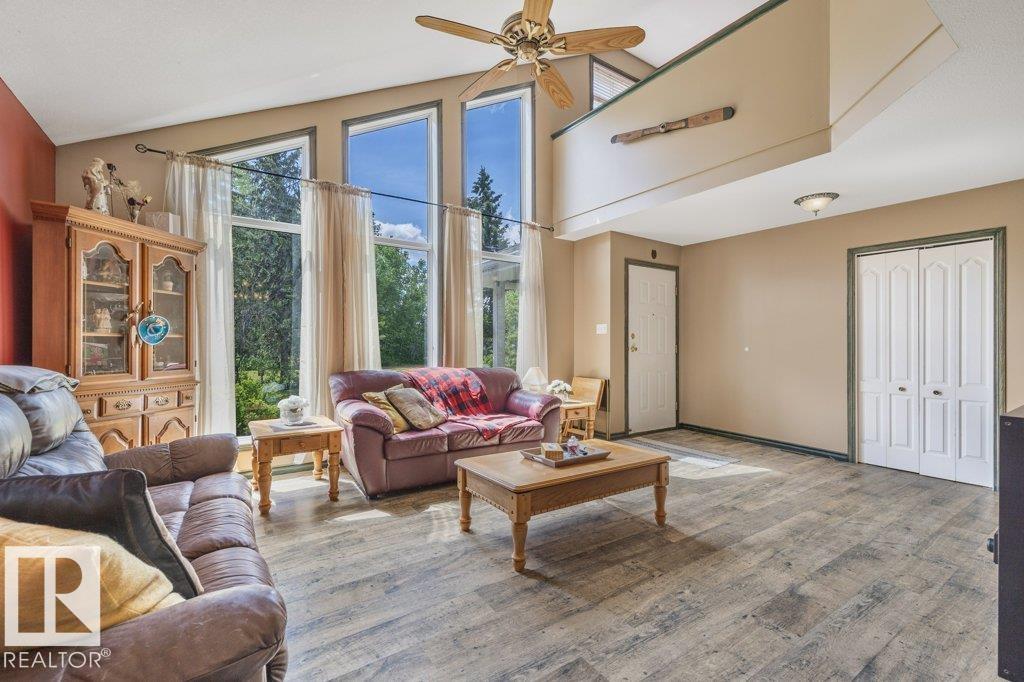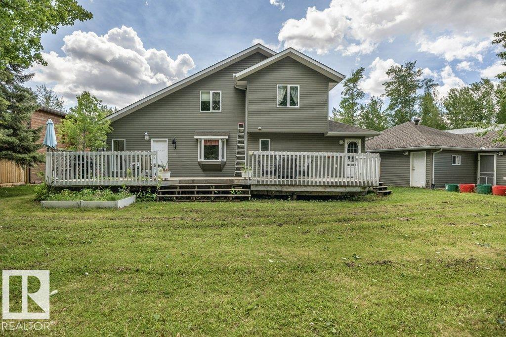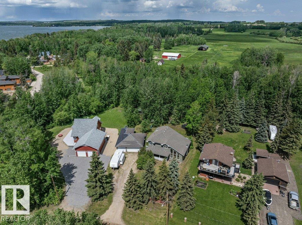 Escape to your private retreat on a tree-lined half-acre in Johnsonia Beach, just a minute’s walk to the lake via a scenic greenbelt. This 1.5-storey home offers 3 bedrooms, 2.5 baths, and vaulted ceilings that fill the space with light. The main floor features a bright kitchen with a gas stove and oversized island flowing into a cozy living room with a wood-burning fireplace, perfect for family gatherings or quiet evenings. The main-floor primary suite includes a 2-piece ensuite and separate vanity for added privacy. Upstairs, two bedrooms, a loft, and a versatile den provide space for work, hobbies, or guests. Step outside to enjoy morning coffee on the covered front veranda, entertain on the back deck, or gather around the firepit while taking in peaceful forest views. A triple detached garage with an attached guest room offers flexibility for visitors or projects. Surrounded by trails and just minutes from golf, dining, shopping, and Pigeon Lake, this home is more than a house—it’s a lifestyle.