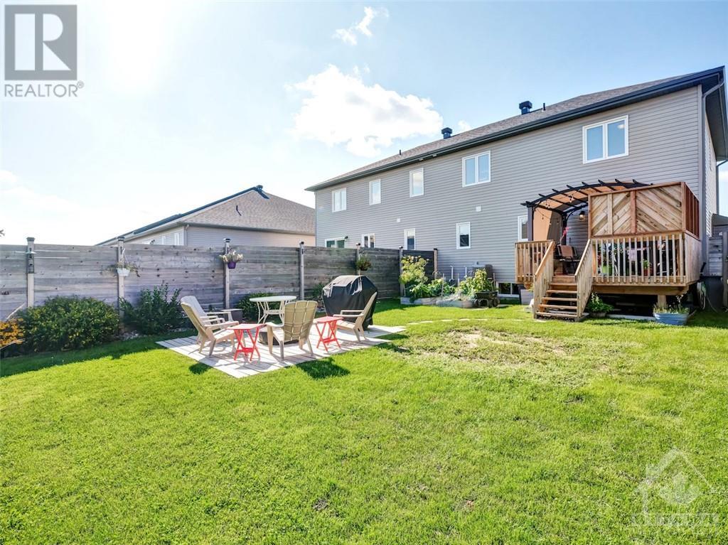 This immaculately kept Semi-Detached home is nestled in the highly desired neighbourhood of Sunset Flats in Russell.This 2019 build has lots of Tarion Warranty remaining. This is the Norwood model which is the largest semi-detached Melanie Construction makes. It's spacious, bright, open concept and modern. The living room welcomes you with a modern fireplace, open dining and large gourmet kitchen with a large island and substantial storage. The large backyard is stunning with upgraded 12x12 deck, 7ft privacy fence all around and gorgeous landscaping. 2nd level offers 4 bedrooms, laundry room and four pc bath. The gorgeous bright primary bedroom has a walk in closet with a window and 4 pc bath. The unfinished basement is just waiting for a buyer to finish it the way THEY want. It has a rough-in for another bath which would make this home a 4 bedroom, 4 bath. It's hard to get all of this in a large semi.It has a long single car garage and the double driveway has room for 4 cars. (id:22211)