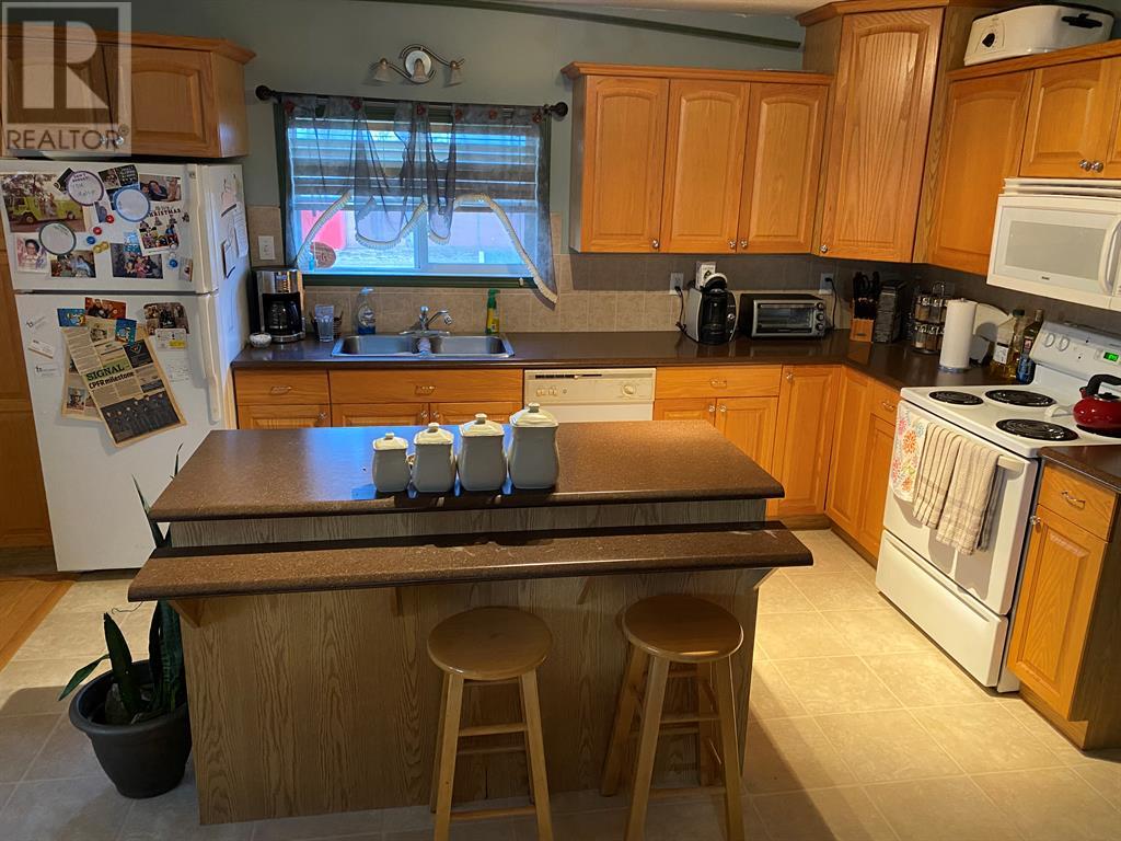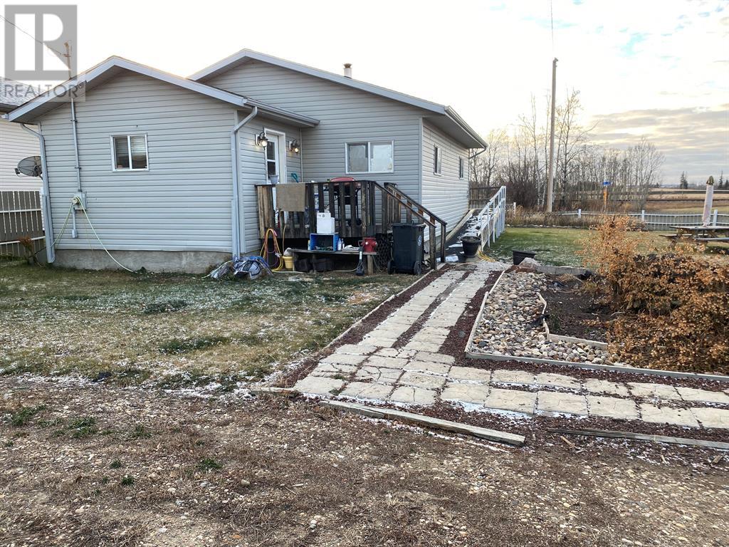 This great property is located close to ball diamonds and school. You get a huge fenced lot with lots of parking. You are greeted with large entry, with storage and washer and dryer. The large kitchen has tonnes of cupboards and counters, and movable island, and is open to the living and dining room, which have lots of room for your family. You also have 2 good size bedrooms. You have wheel chair access, beautiful yard, and 2 sheds for storage. Call to view today (id:22211)