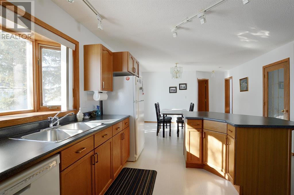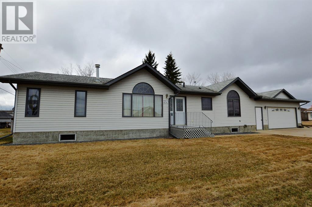 Situated on a large corner lot; close to downtown amenities! Located in Rycroft, this 1522 sq. ft. bungalow offers 3 bedrooms, 2 bathrooms, vaulted ceilings, a welcoming living room with a cozy gas fireplace, a large kitchen with an island, an abundance of cabinets, corner pantry plus French doors in the dining area allowing natural light to fill the room. The master bedroom offers double closets and a 3pc ensuite. The additional bedrooms area a generous size. Massive back entry leading to the attached double garage. Downstairs is currently undeveloped; left for new owners to finish as they please. Recent improvements include: newer hi efficiency furnace and newer hot water tank. The yard has a irrigation system and is nicely landscaped. Rycroft is a lovely community to raise a family with restaurants, a grocery store, school, and more. (id:22211)