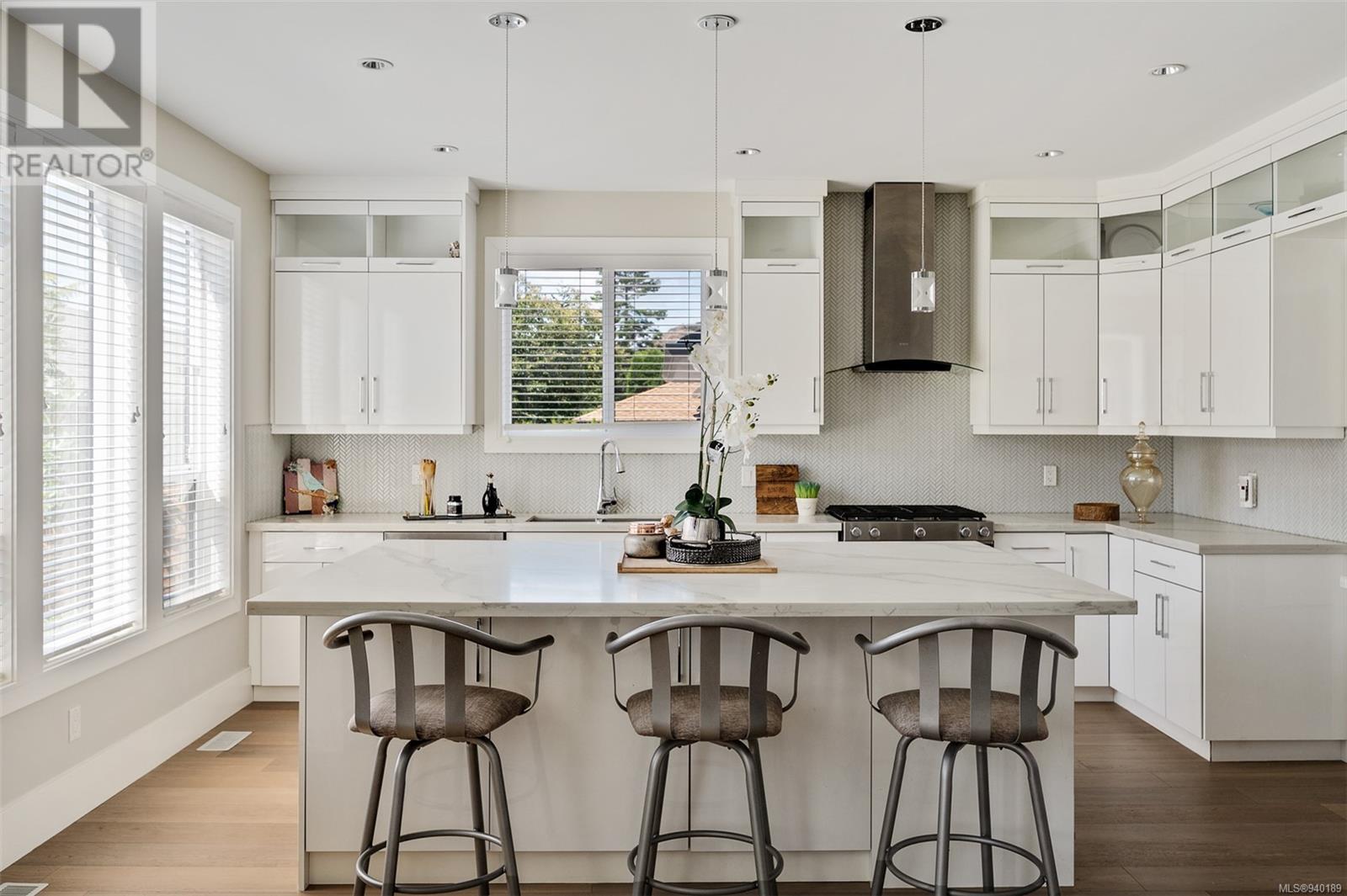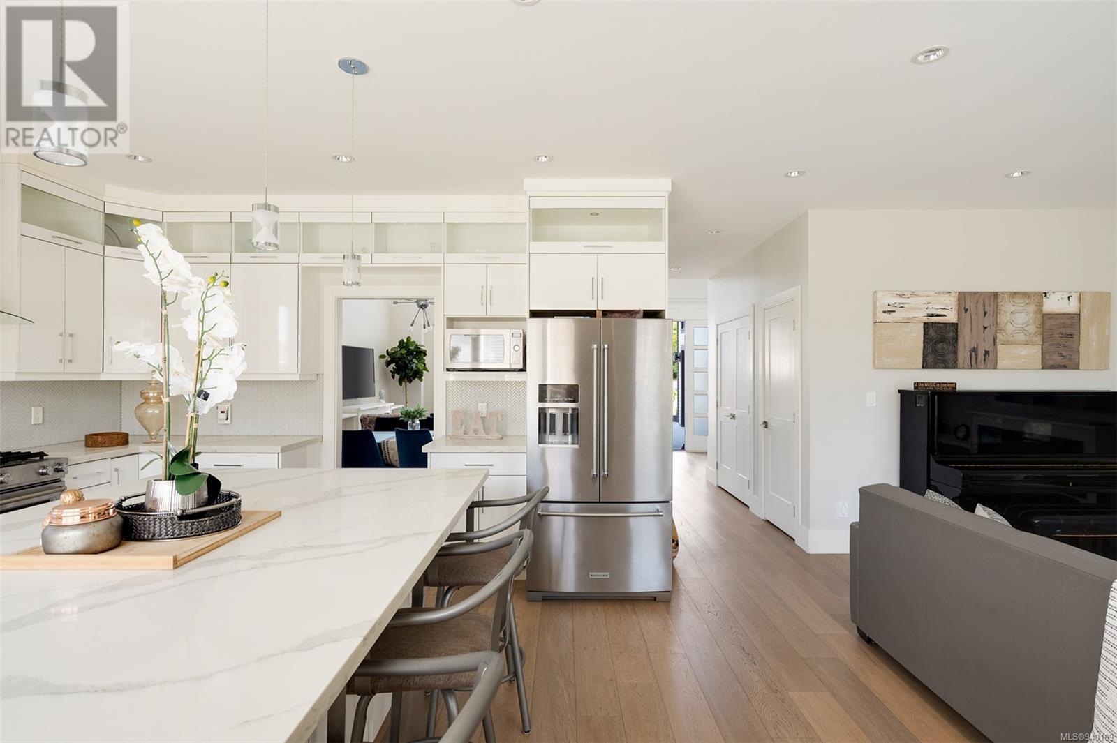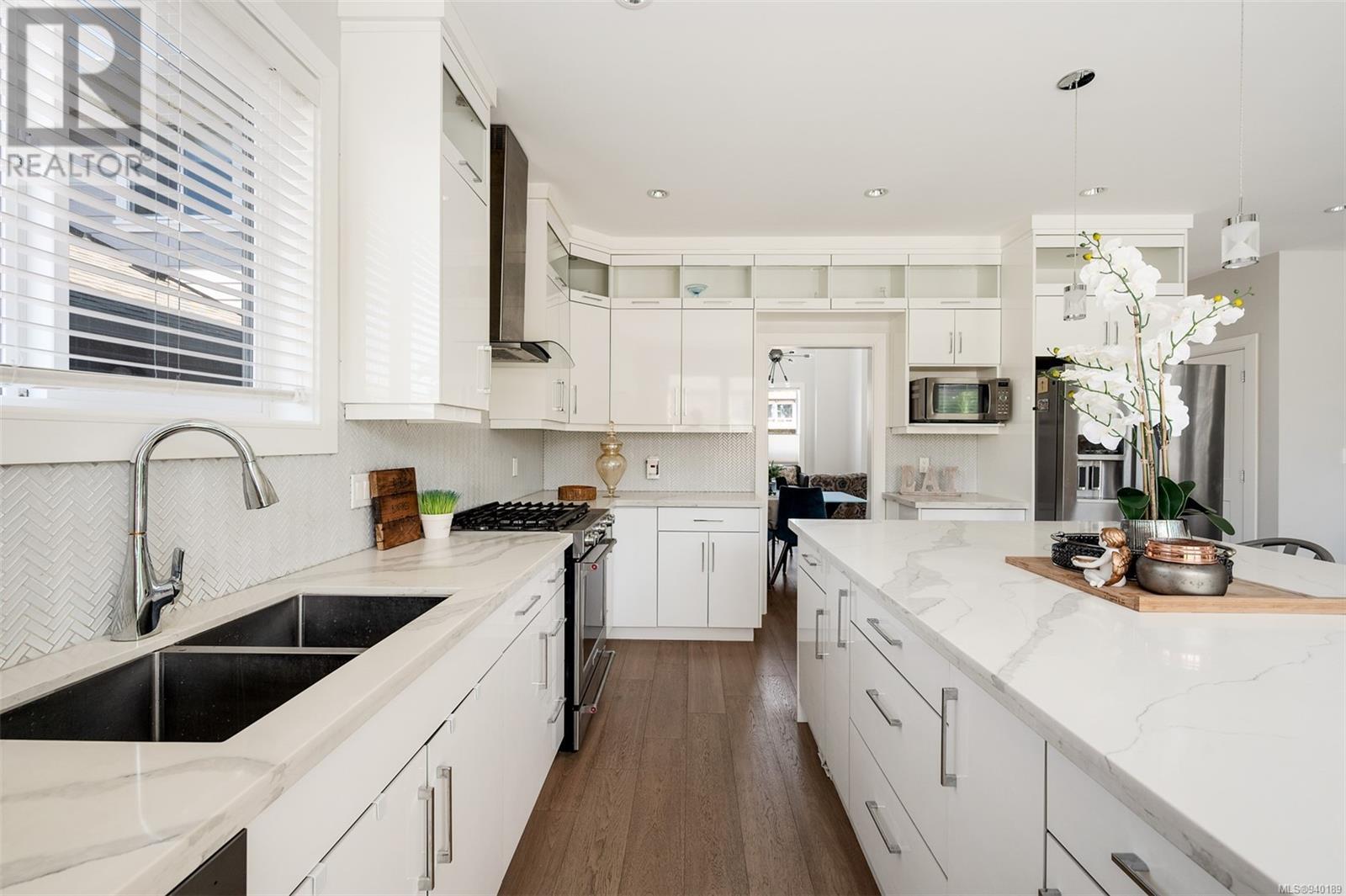 This modern multi-generational Family home features 7 beds, 5 baths, 3 kitchens, & 3600+ SQFT with room for the whole family. Main floor will take your breath away with stunning vaulted ceilings, FP, & large floor-to-ceiling windows. Gorgeous kitchen has a large island, quartz countertops, SS appliances, gas stove & overlooks the bright dining & living rm. The main floor in-law suite, 2 beds, family room, & a 4 pc & 2 pc bath complete the main level. The upper floor opens onto the main level, & you will find the Spa-Like Master Suite with heated floors, a 5 pc bath & spacious walk-in closet. 3 more beds, 4 pc bath, & laundry rm complete the upper floor. 2nd legal suite on the lower level features its own laundry & entrance. The outdoor space is fully fenced with an irrigation system, & expansive patio partially covered with a glass awning. Additional features: double car garage, 2 EV chargers, crawl space, near parks, schools, UVIC, & Mt Doug! (id:22211)