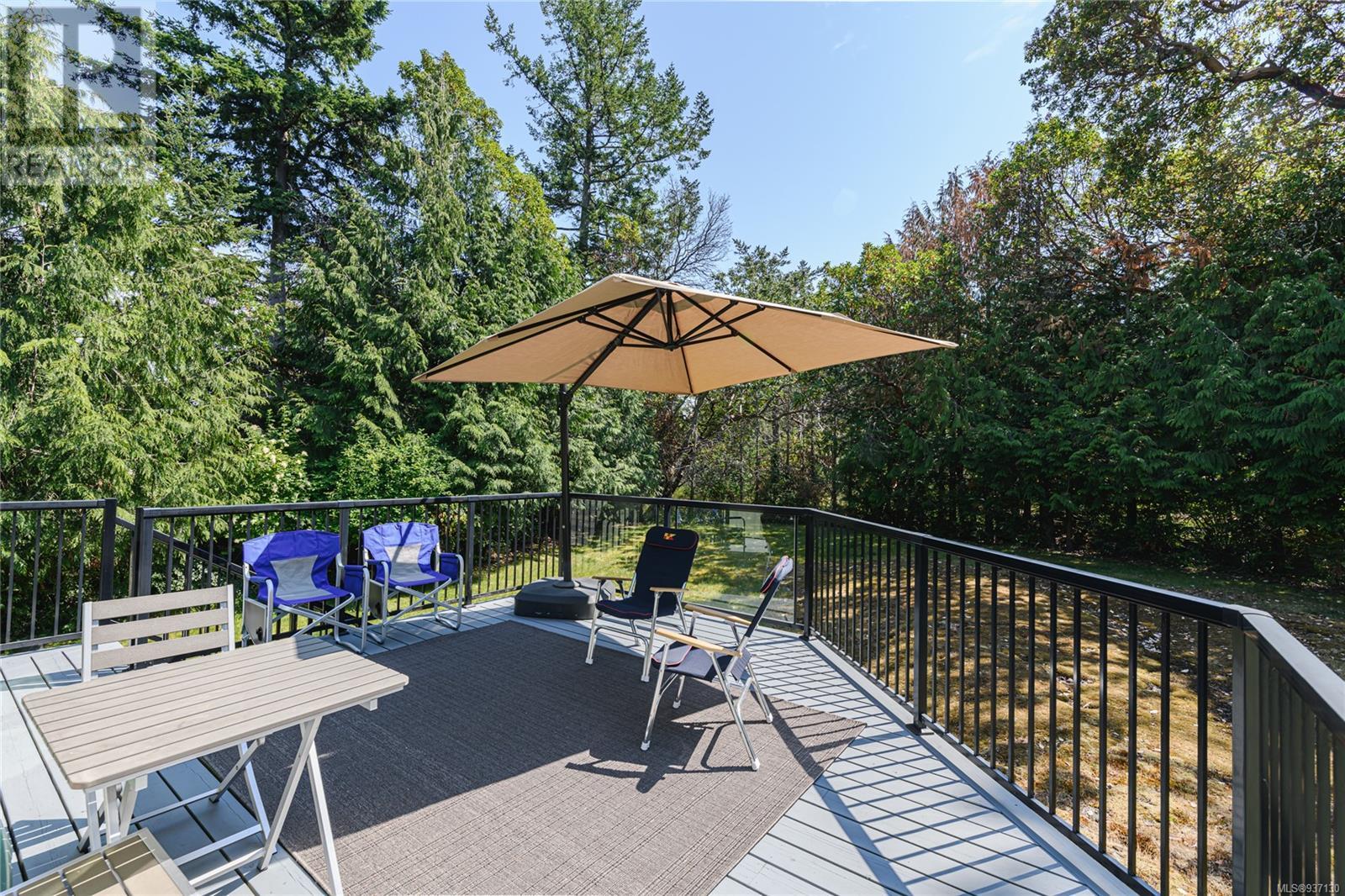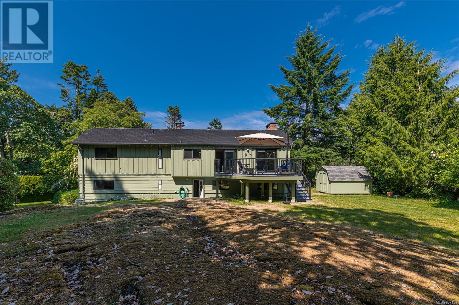 A home that captures the essence of the West Coast, this thoughtfully designed post & beam home exudes warmth & character. Providing a unique blend of architectural elegance, natural harmony & privacy backing onto Konukson Park on desirable Ten Mile Point, you'll be delighted that your new home is close to the ocean, walking trails, & all amenities of Cadboro Bay village. There are 4 spacious bedrooms, 3 bathrooms, a large eat-in kitchen, equipped with modern appliances & plenty of counter & storage space. The large south-facing deck is perfect for hosting barbecues, relaxing with a book, or enjoying quality time with family & friends. The large, two-part recreation room downstairs is perfect for kids, and hobbies. Floor to ceiling picture windows flood the living room with natural light. Outside you will find a sprinkler system, a magnificent magnolia tree, plus a lush side yard perfect for the home gardener enthusiast. This quiet & private retreat will appeal to all who appreciate what Ten Mile Point offers (id:22211)