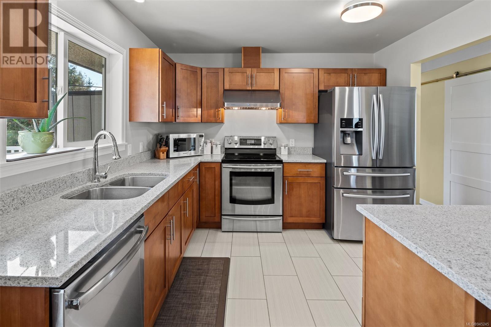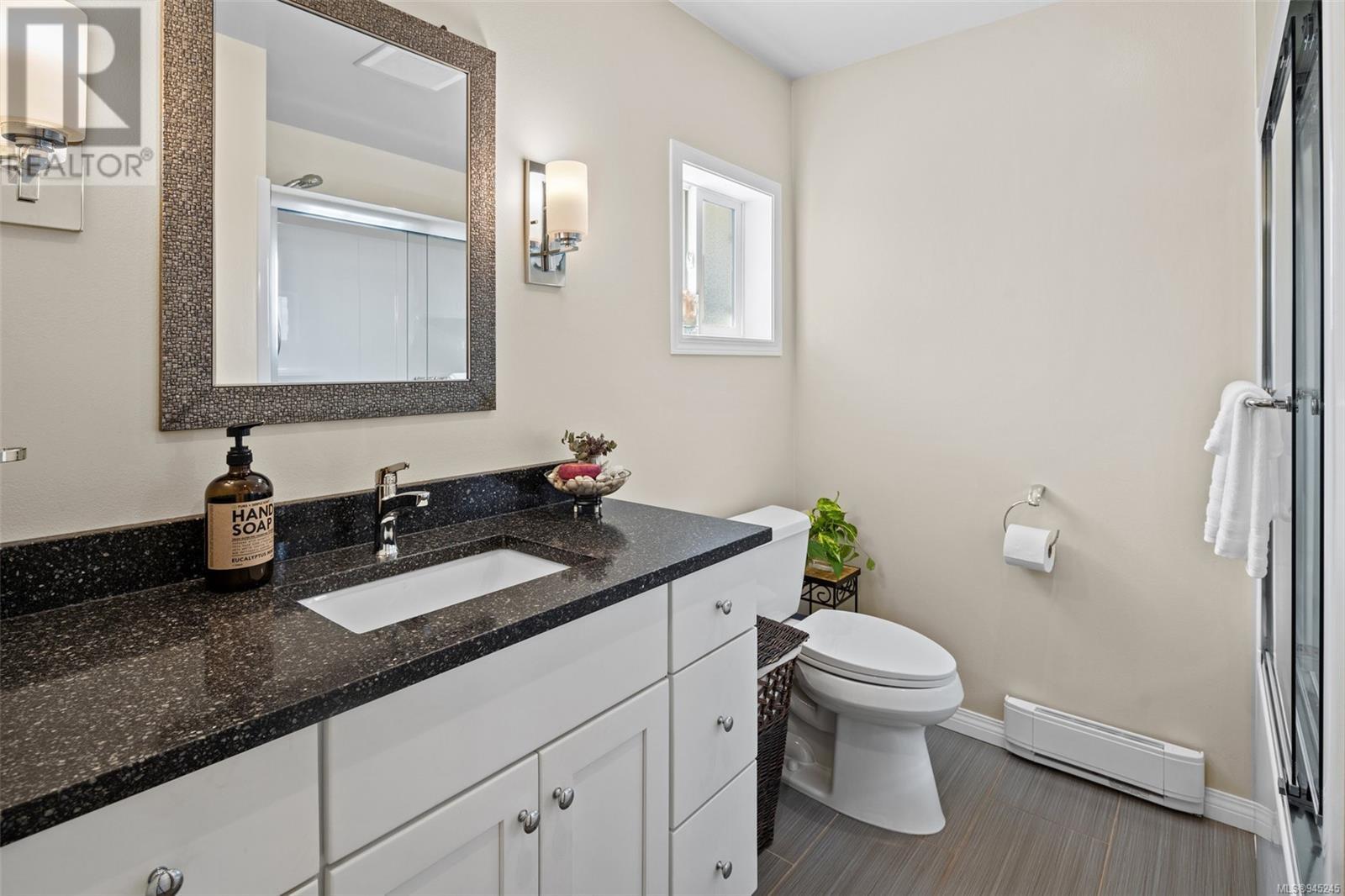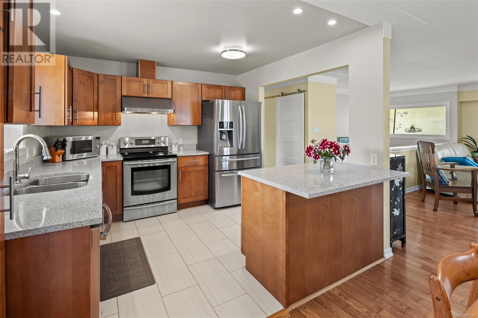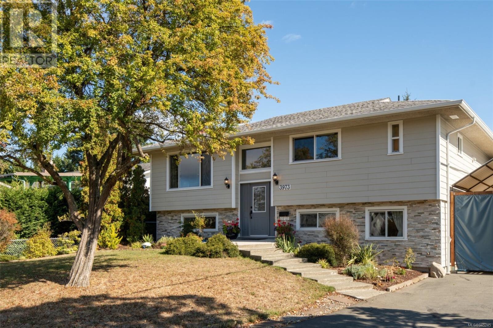 Welcome to 3973 Oakwood Street! Built in 1965, this fully updated split-level home boasts 6 bedrooms and 3 bathrooms, offering a spacious and modern living experience. As you step inside, upstairs you'll be greeted by an open-concept layout along with 3 bedrooms, 2 bathrooms, including a primary with ensuite, and a bright beautifully designed kitchen. The kitchen features stainless-steel appliances, shaker cabinetry with soft-close doors, quartz countertops, and an large island great for entertaining. You will also enjoy the warmth of ash and oak hardwood throughout the upper floor. The main living/dinning area, temperature controlled by heat pump, flows seamlessly to a walkout deck and a fully fenced sunny backyard! The bathrooms have been updated with newer tile flooring, vanities, and fixtures. Energy-efficient windows have been installed to enhance the home's aesthetics and functionality. Downstairs there's an additional 4th bedroom great for guests and a separate indoor flex space for all your needs. But that's not all – this property also features a newly built 2-bedroom suite complete with a full bath, its own water supply, separate hot water heater, and laundry. Modern vinyl flooring has been installed and soundproofing between floors ensure a comfortable and private living space. The exterior has been upgraded with HardiePlank, natural ledgestone accents, and ground level downspout cleanouts. The wrap-around driveway equipped with power provides ample parking, including space for an RV, boat, or trailer. The backyard is a gardener's dream with a variety of fruit trees, garden space, storage shed, and green house! Located in a wonderful neighbourhood, you're just a short walk away from all amenities, including Tuscany Village, the University of Victoria, and much much more. With upgraded electrical and plumbing throughout, this home is move-in ready and waiting for you to make it your own! (id:22211)
