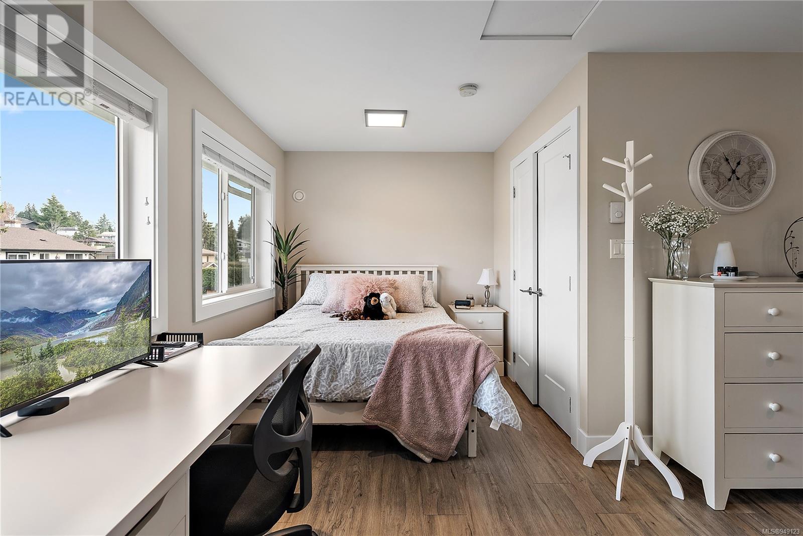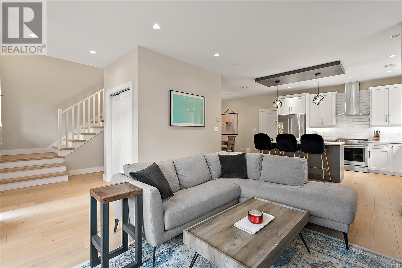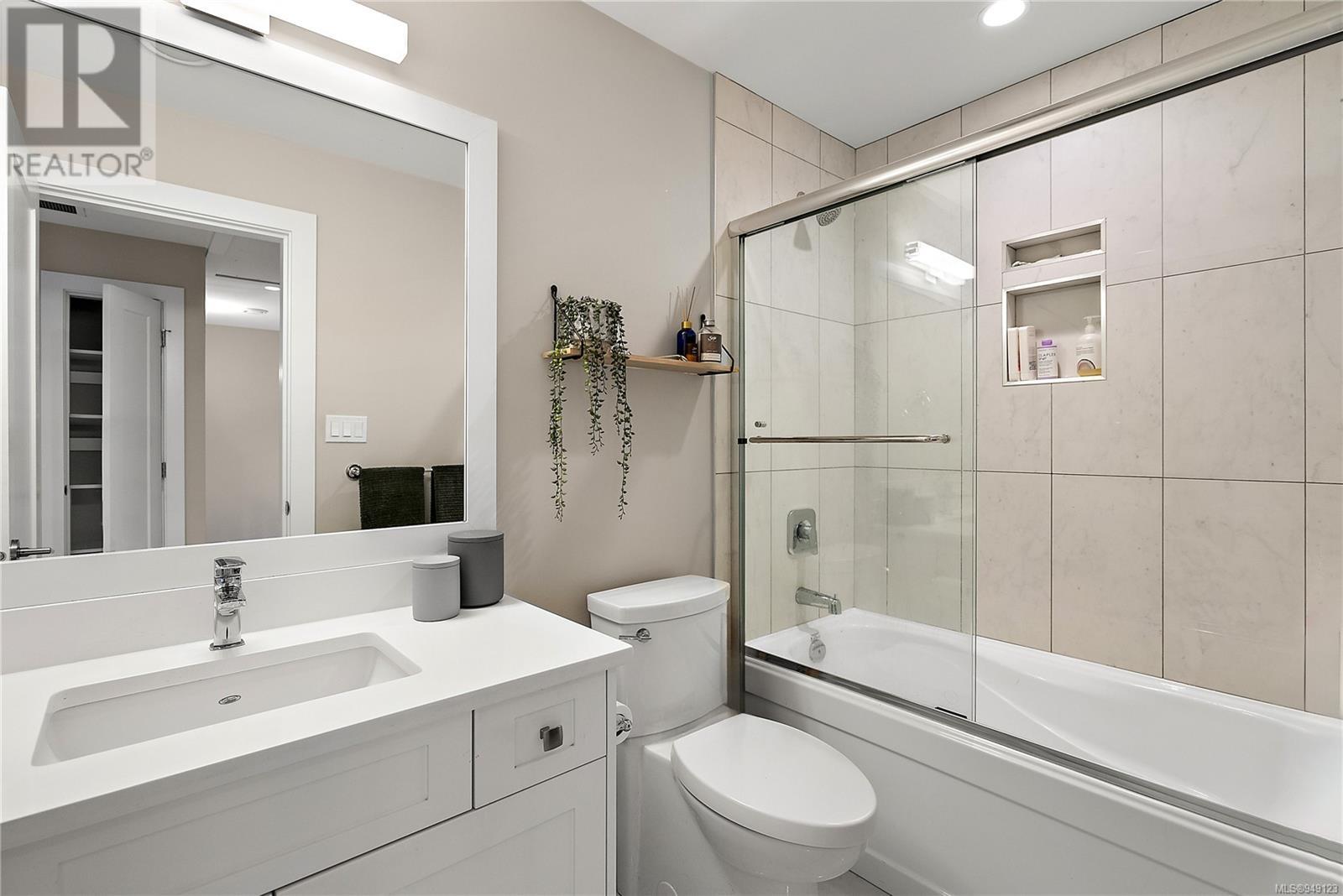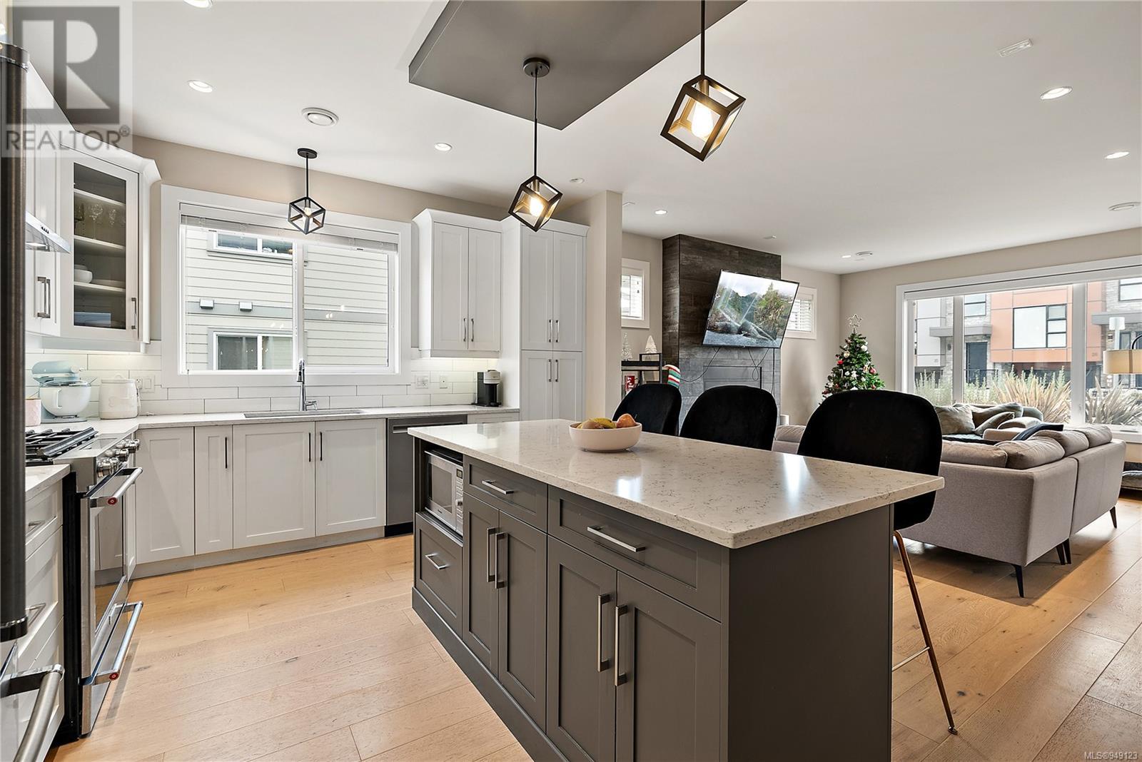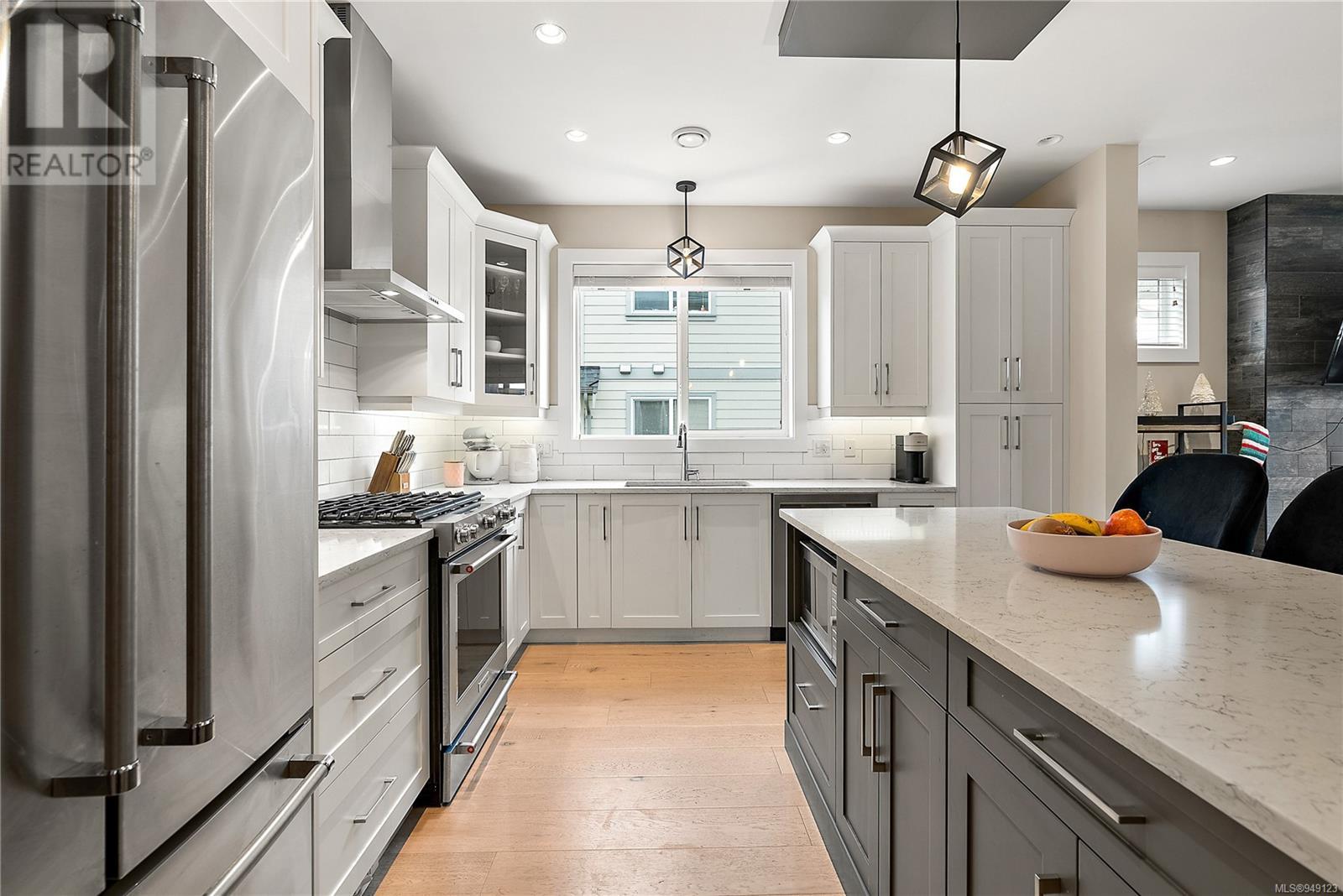 Located on a quiet culdesac in Saanich East, amongst beautiful brand new homes, awaits this stunning 2019 built 3 bed, 4 bath home with separate legal above garage bachelor suite. Boasting open concept living on the main level, with a spacious living room, dreamy kitchen with gorgeous quartz countertops, gas cook top, SS KitchenAid appliances, and dining room with double French doors to the patio. This lovely family home offers 3 bedrooms and 2 bathrooms upstairs with an adjoining, above garage bachelor suite complete with 3 pc bathroom, kitchen, separate laundry and its own separate entrance. Other amazing features include beautiful hard wood flooring, 9' ceilings, heated flooring in the ensuite, large laundry room, a double car garage, full landscaped yard with irrigation, heat pump, tankless gas hot water, and a very energy efficient home! This is your chance to own in the highly desirable, very central area of high Quadra - close to all amenities! (id:22211)