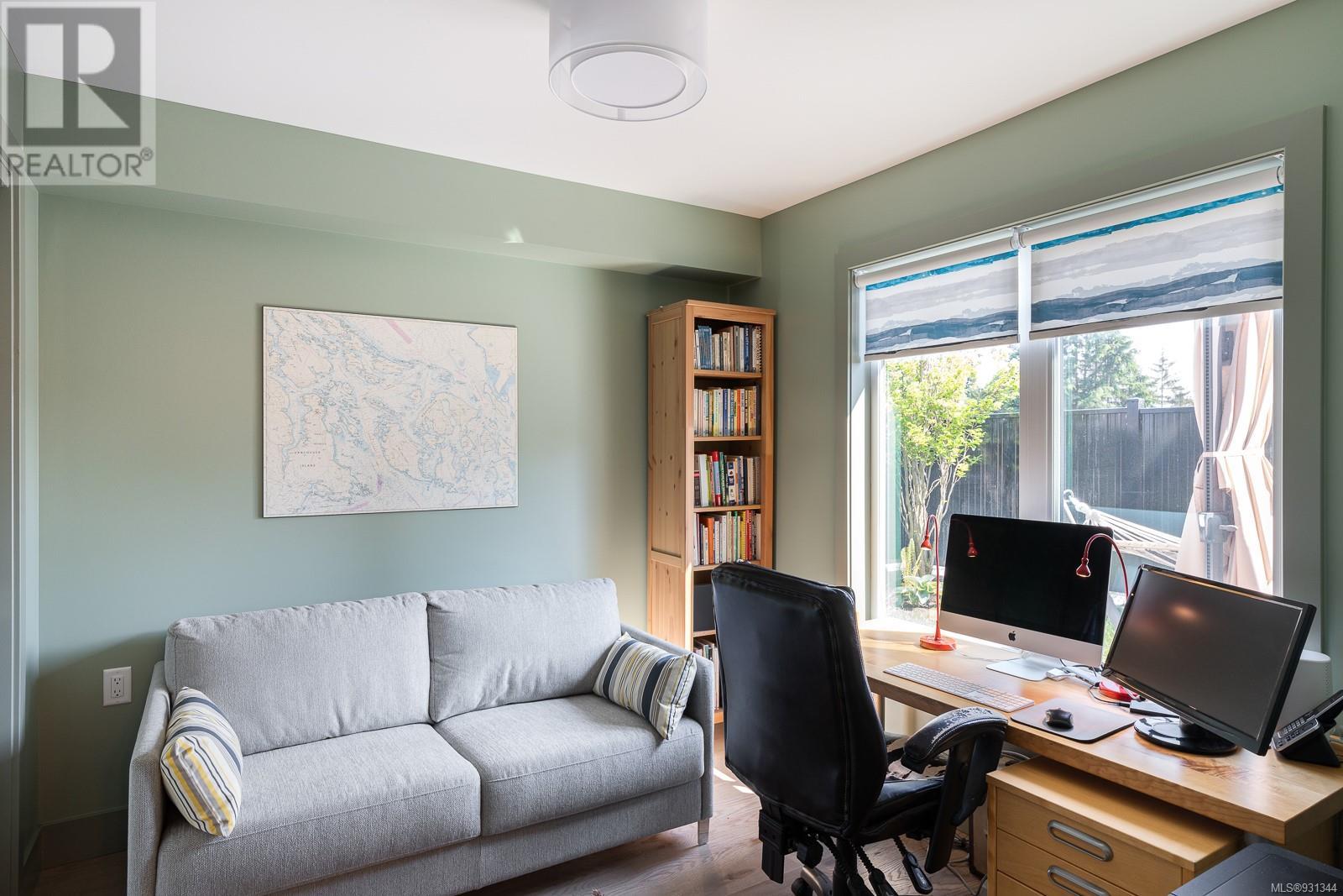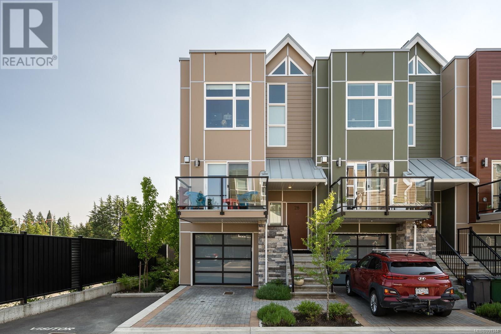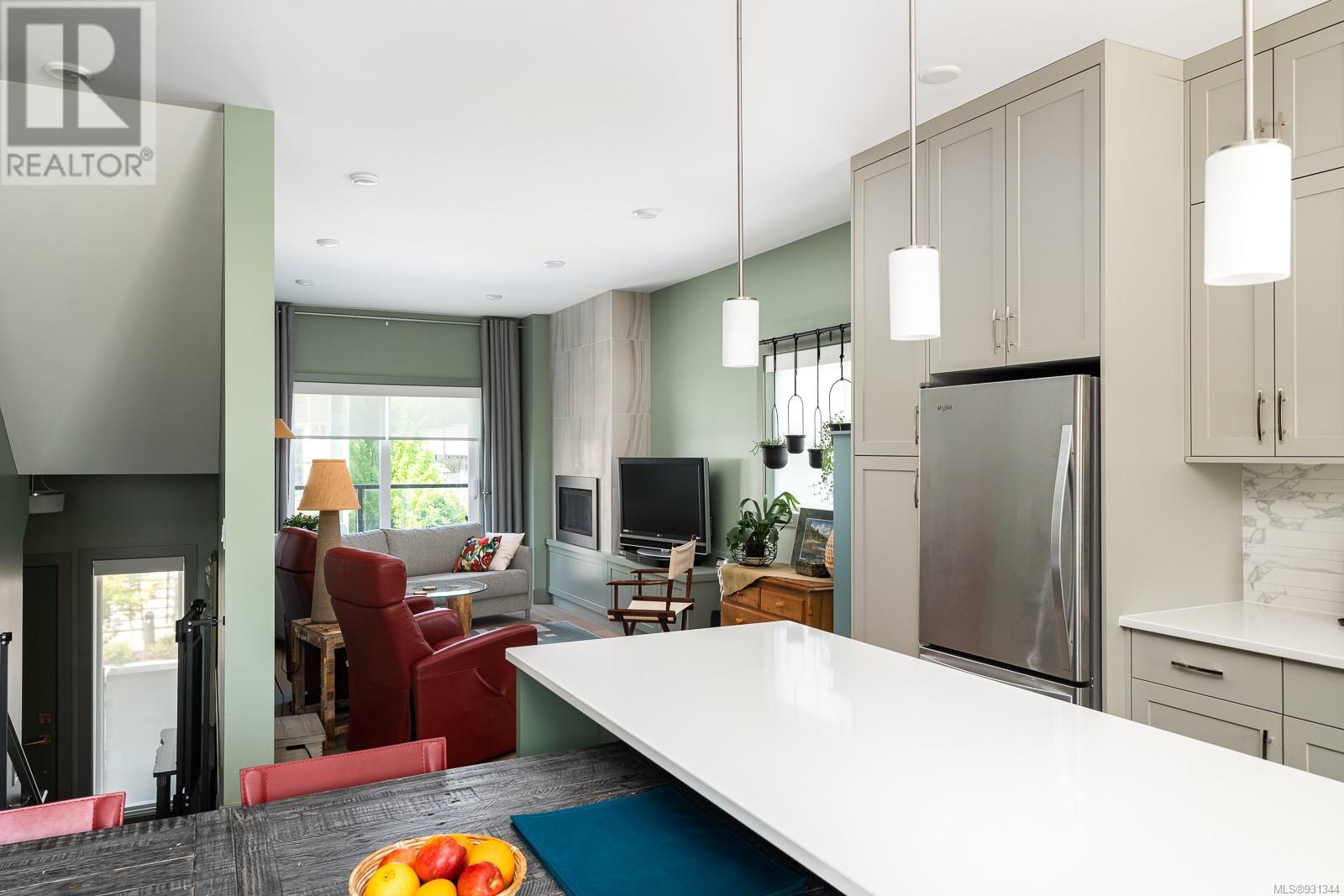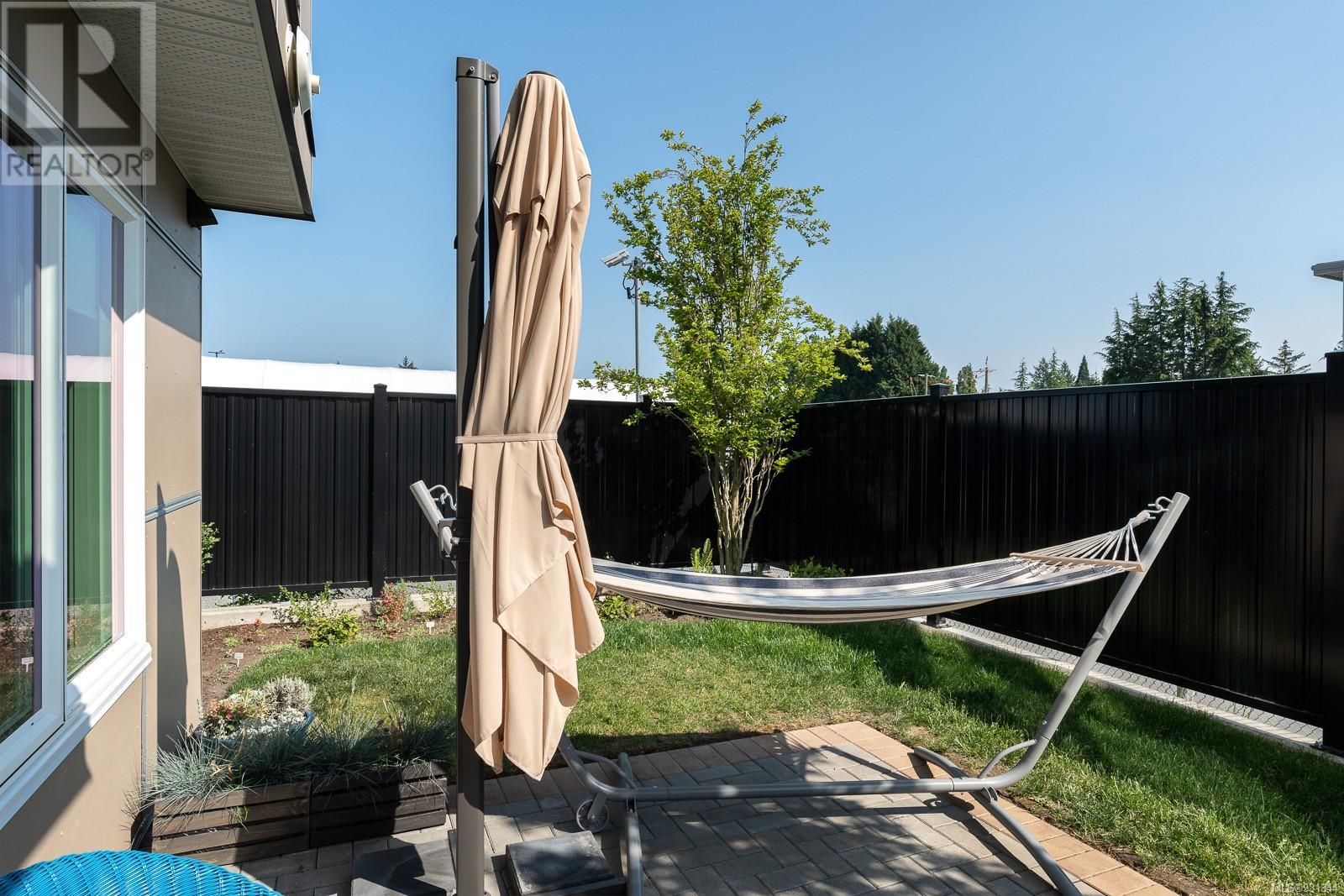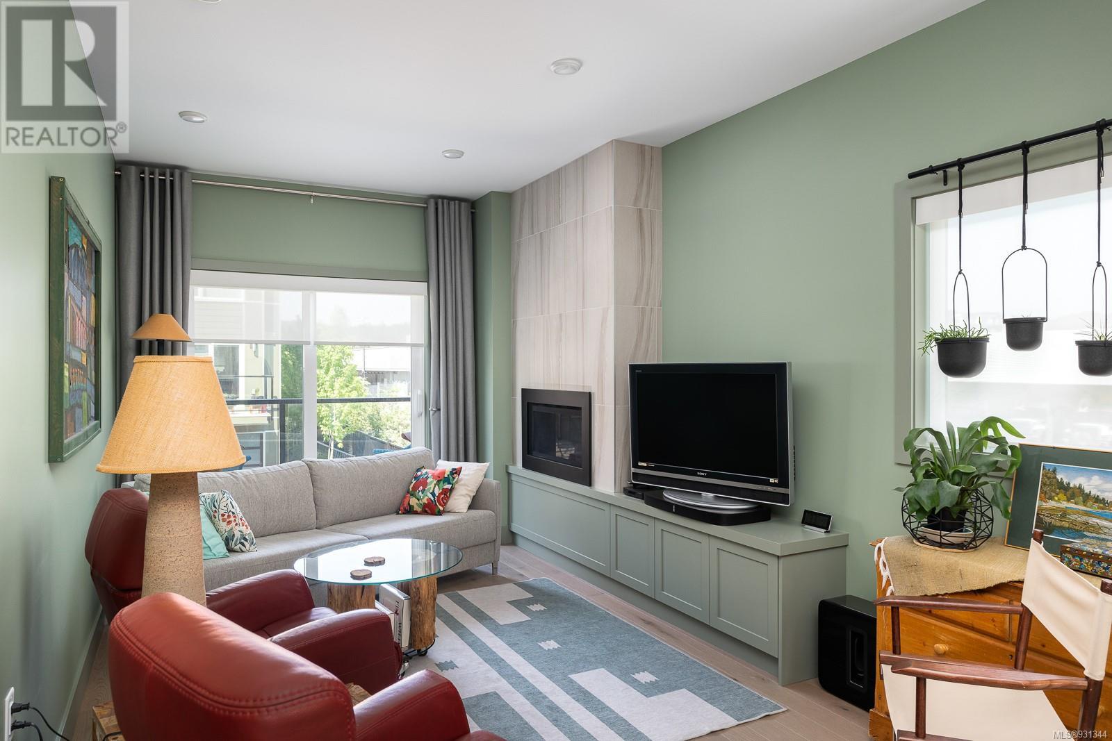 Welcome to The Reeve, an exclusive new development of 36 high-end townhomes. Built in 2020, this stunning 3 bed, 3 bath, end unit is located in the sought after Royal Oak area just minutes from Royal Oak Shopping Center, restaurants, Brydon park and the Colquitz river trail system. Offering almost 1,500 sq ft of open concept living space, this home has loads of upgrades - power blinds, engineered hardwood oak floors throughout, dimmers and light fixtures, and closets custom fitted by Premier Closets. On the main level, the high-ceilinged living area with cozy gas fireplace, large kitchen offering stainless steel appliances, quartz countertops, and dining area with adjacent enclosed sunroom/balcony. Upstairs, retreat to the primary bedroom with a renovated 4 piece ensuite with large walk-in shower and heated floors, a second bedroom and 4 piece bath, and big laundry closet with upgraded side by side washer and dryer. Lower level offers a third bedroom, 3 piece bath, and ample storage as well as the garage equipped with EV-charger. Other green features include heat pump with A/C, and solar panels with net metering. Enjoy a private sunny backyard oasis with irrigation, on a corner lot. Bring your pets - no size limit on dogs! (id:22211)
