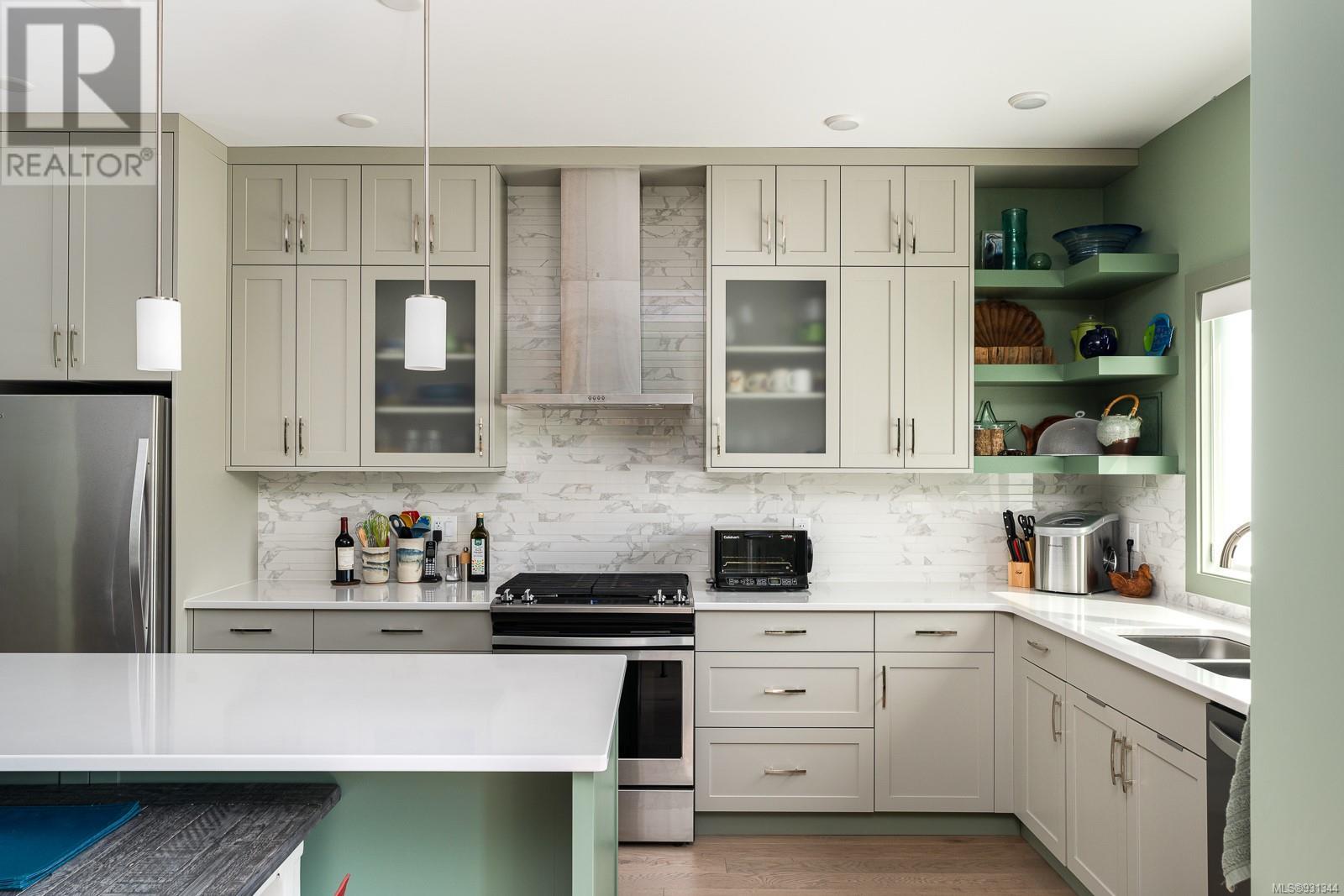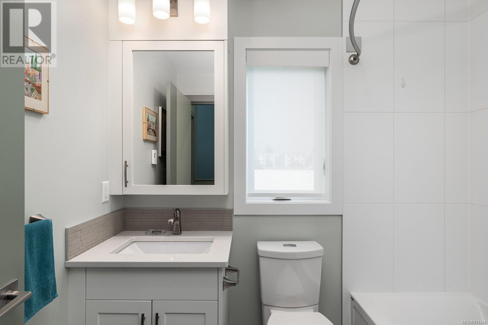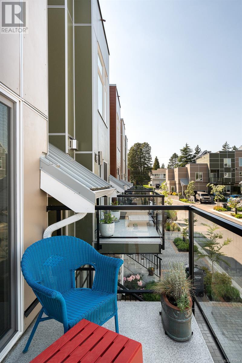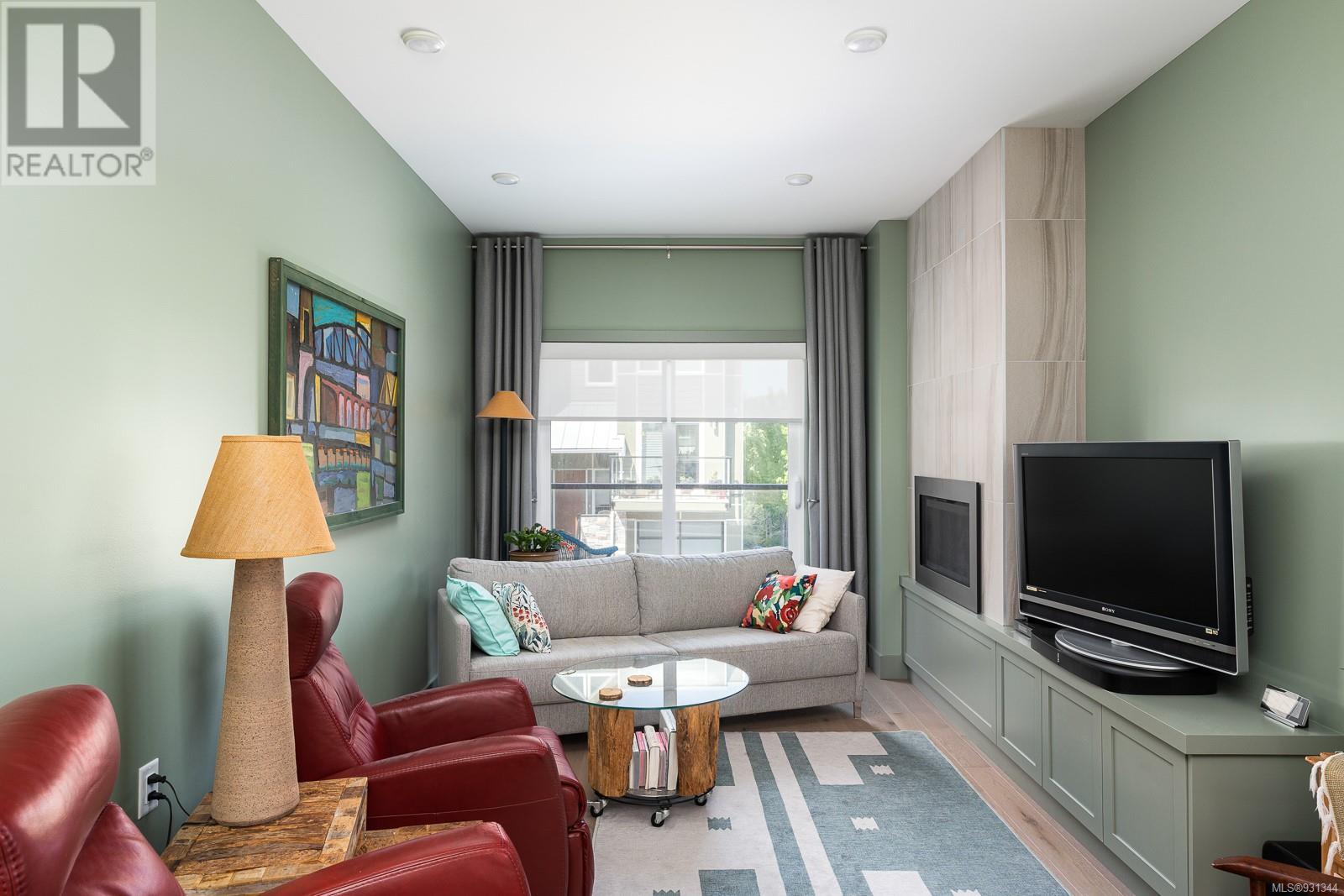 Welcome to The Reeve, an exclusive new development of 36 high-end townhomes. Built in 2020, this stunning 3 bed, 3 bath, end unit is located in the sought after Royal Oak area just minutes from Royal Oak Shopping Center, restaurants, Brydon park and the Colquitz river trail system. Offering almost 1,500 sq ft of open concept living space, this home has loads of upgrades - power blinds, engineered hardwood oak floors throughout, dimmers and light fixtures, and closets custom fitted by Premier Closets. On the main level, the high-ceilinged living area with cozy gas fireplace, large kitchen offering stainless steel appliances, quartz countertops, and dining area with adjacent enclosed sunroom/balcony. Upstairs, retreat to the primary bedroom with a renovated 4 piece ensuite with large walk-in shower and heated floors, a second bedroom and 4 piece bath, and big laundry closet with upgraded side by side washer and dryer. Lower level offers a third bedroom, 3 piece bath, and ample storage as well as the garage equipped with EV-charger. Other green features include heat pump with A/C, and solar panels with net metering. Enjoy a private sunny backyard oasis with irrigation, on a corner lot. Bring your pets - no size limit on dogs! (id:22211)