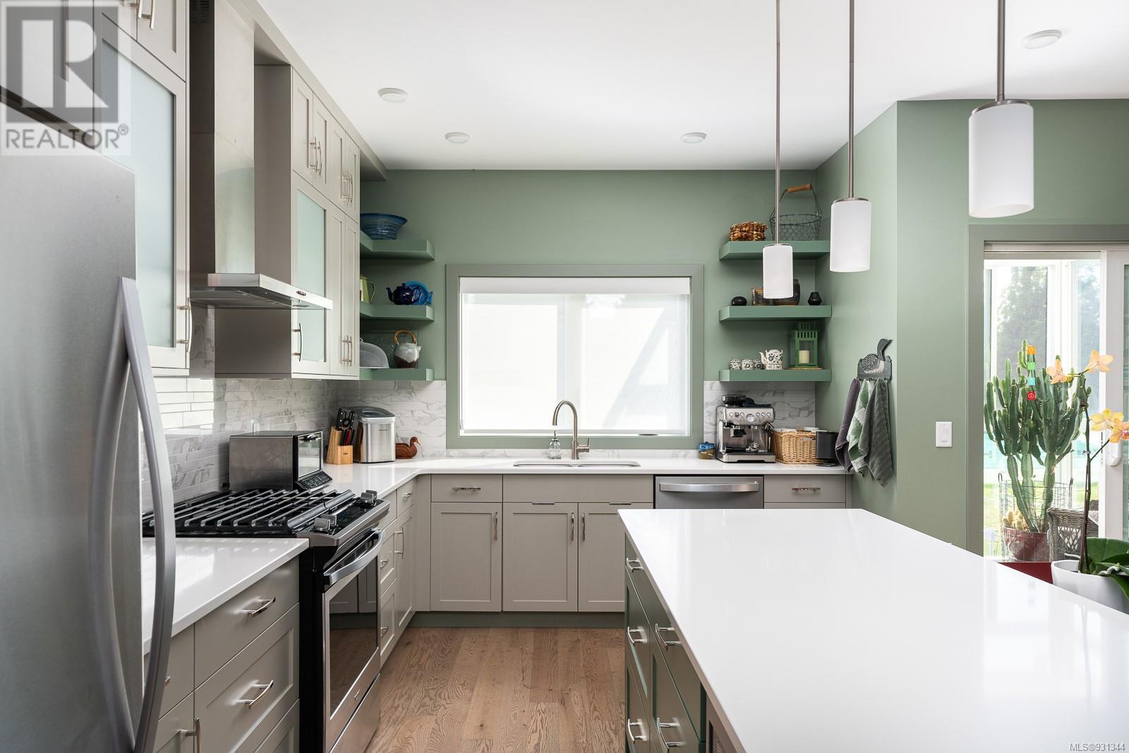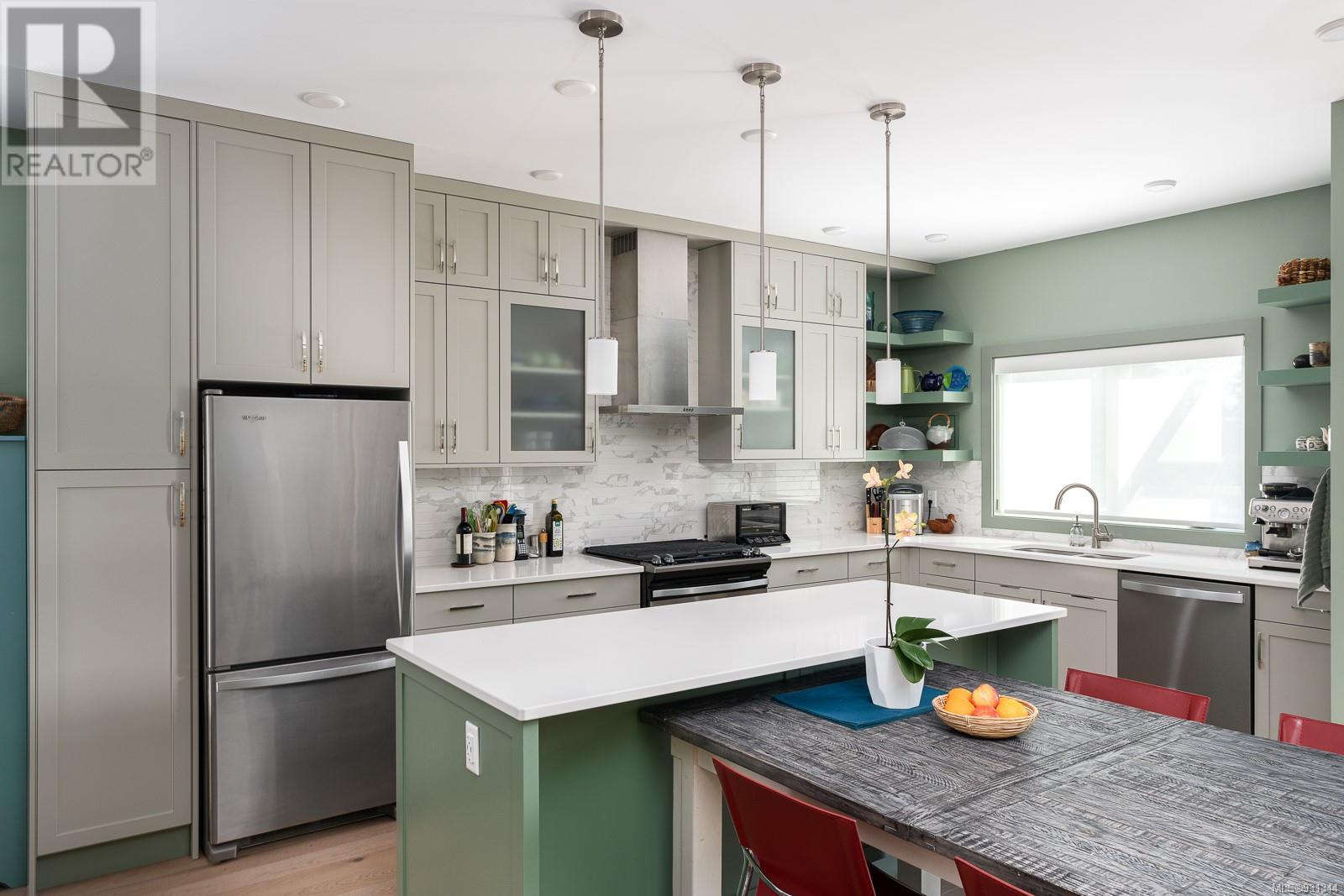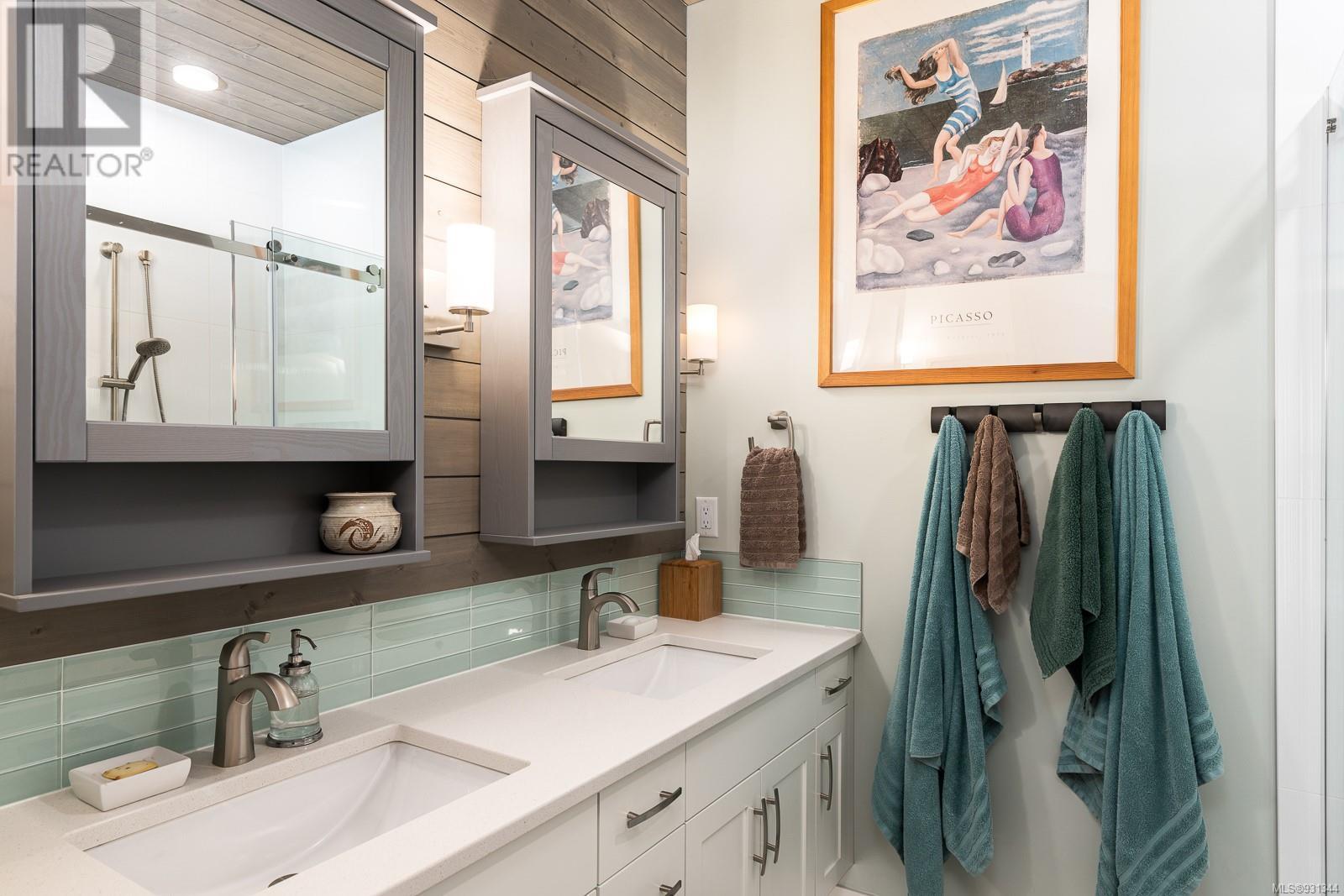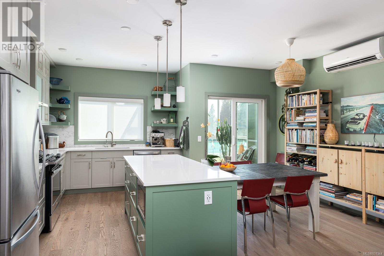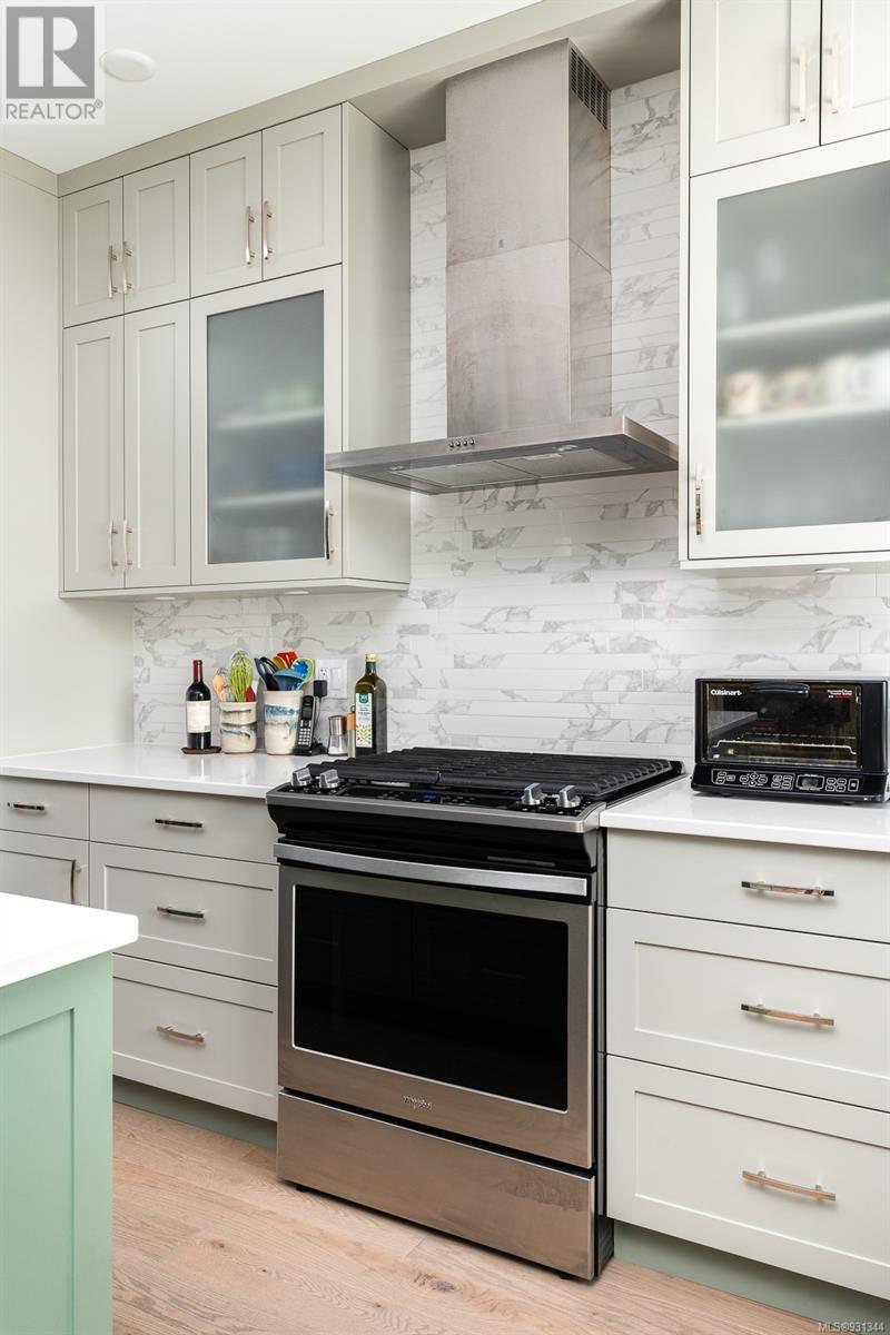 Welcome to The Reeve, an exclusive new development of 36 high-end townhomes. Built in 2020, this stunning 3 bed, 3 bath, end unit is located in the sought after Royal Oak area just minutes from Royal Oak Shopping Center, restaurants, Brydon park and the Colquitz river trail system. Offering almost 1,500 sq ft of open concept living space, this home has loads of upgrades - power blinds, engineered hardwood oak floors throughout, dimmers and light fixtures, and closets custom fitted by Premier Closets. On the main level, the high-ceilinged living area with cozy gas fireplace, large kitchen offering stainless steel appliances, quartz countertops, and dining area with adjacent enclosed sunroom/balcony. Upstairs, retreat to the primary bedroom with a renovated 4 piece ensuite with large walk-in shower and heated floors, a second bedroom and 4 piece bath, and big laundry closet with upgraded side by side washer and dryer. Lower level offers a third bedroom, 3 piece bath, and ample storage as well as the garage equipped with EV-charger. Other green features include heat pump with A/C, and solar panels with net metering. Enjoy a private sunny backyard oasis with irrigation, on a corner lot. Bring your pets - no size limit on dogs! (id:22211)