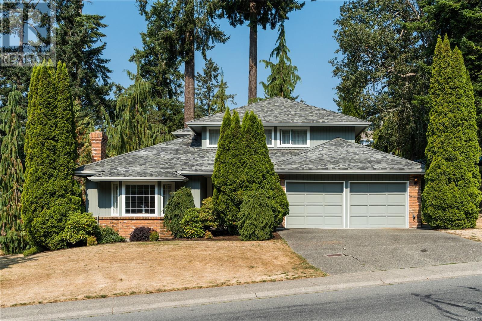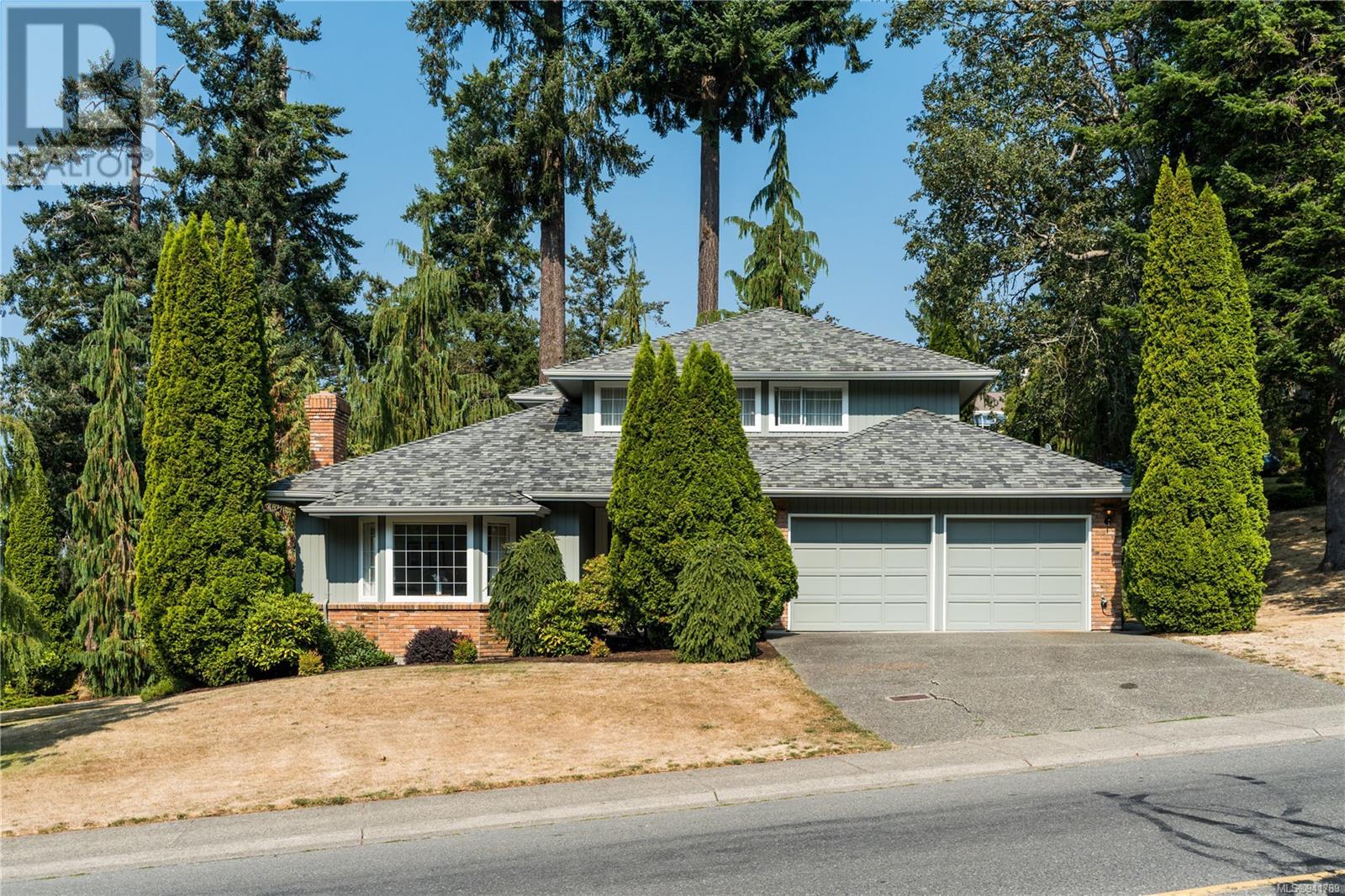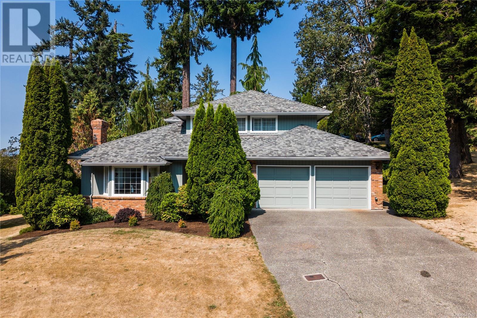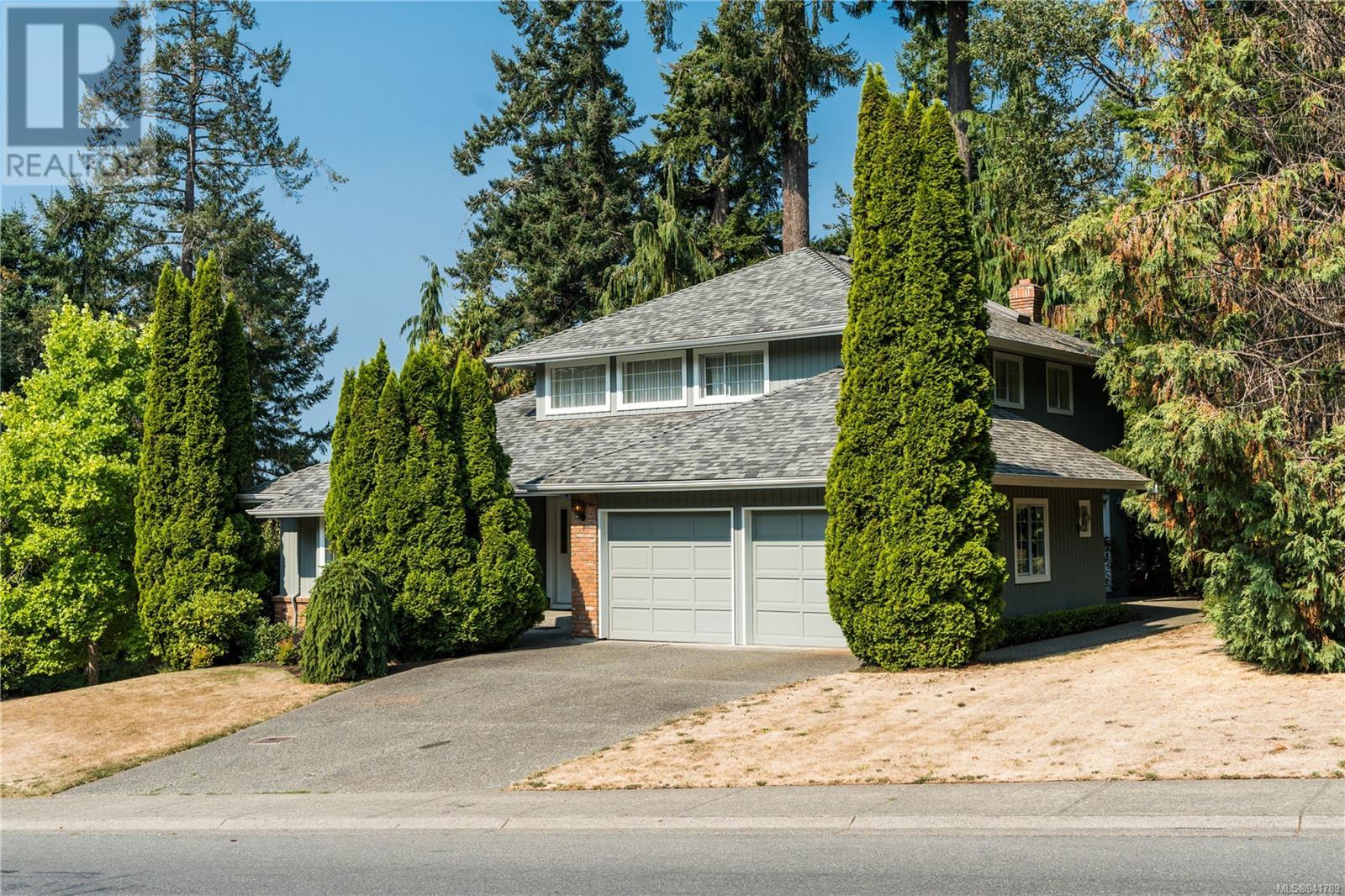 Beautiful Broadmead! Fastidiously maintained, 1 owner, 3 bed, 3 bath, 2757sf home on a large & masterfully landscaped 10,213sf/.23ac lot. Exuding street appeal & ideally located next to coveted Fir Tree Glen & steps to Rithet's Park. The front door opens to the bright cathedral entry. Be impressed w/the abundance of natural light thru a profusion of picture windows. Spacious living rm w/cozy fireplace & bay window. The dining rm will easily accommodate large family dinners & opens to the private deck - perfect for BBQs & outdoor entertaining. Kitchen boasts plenty of white oak cabinetry, peninsula, dual SS sinks & bay window eating area opening to the deck. Family rm w/brick fireplace opens thru sliders to the side patio. Laundry rm & 2pc bath complete main lvl. Up: 4pc bath & 3 generous beds incl huge primary bedroom w/bay window, walk-in closet & 4pc ensuite. Lower: oversized rec room opens to covered lower patio. Bonus: massive crawlspace for extra storage & dbl garage! (id:22211)