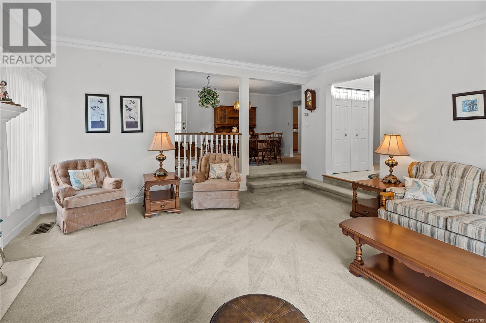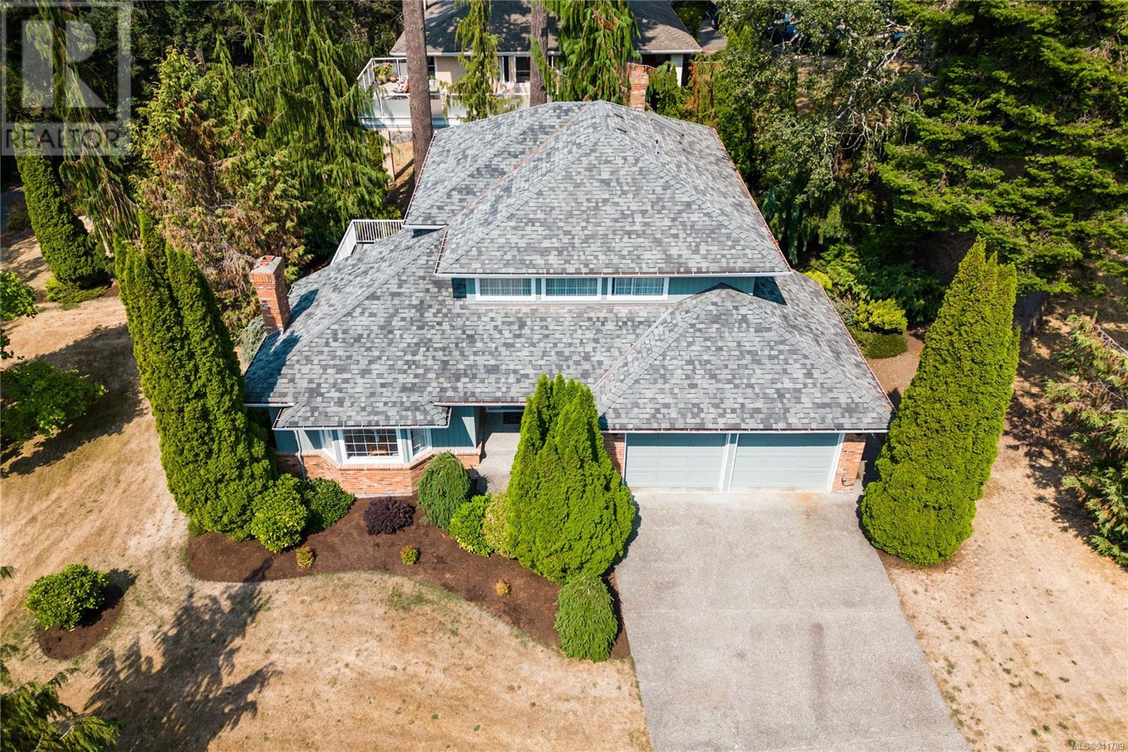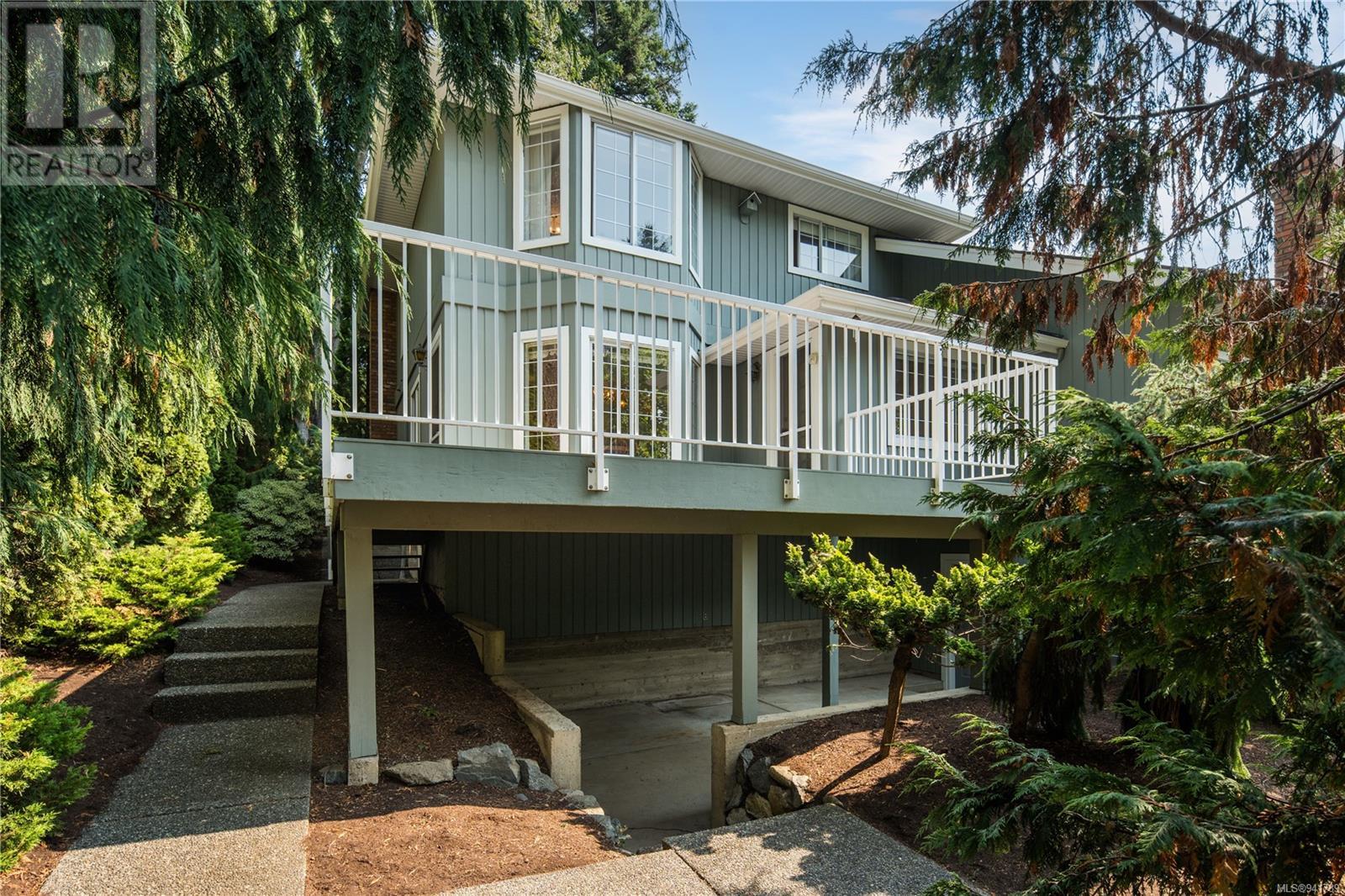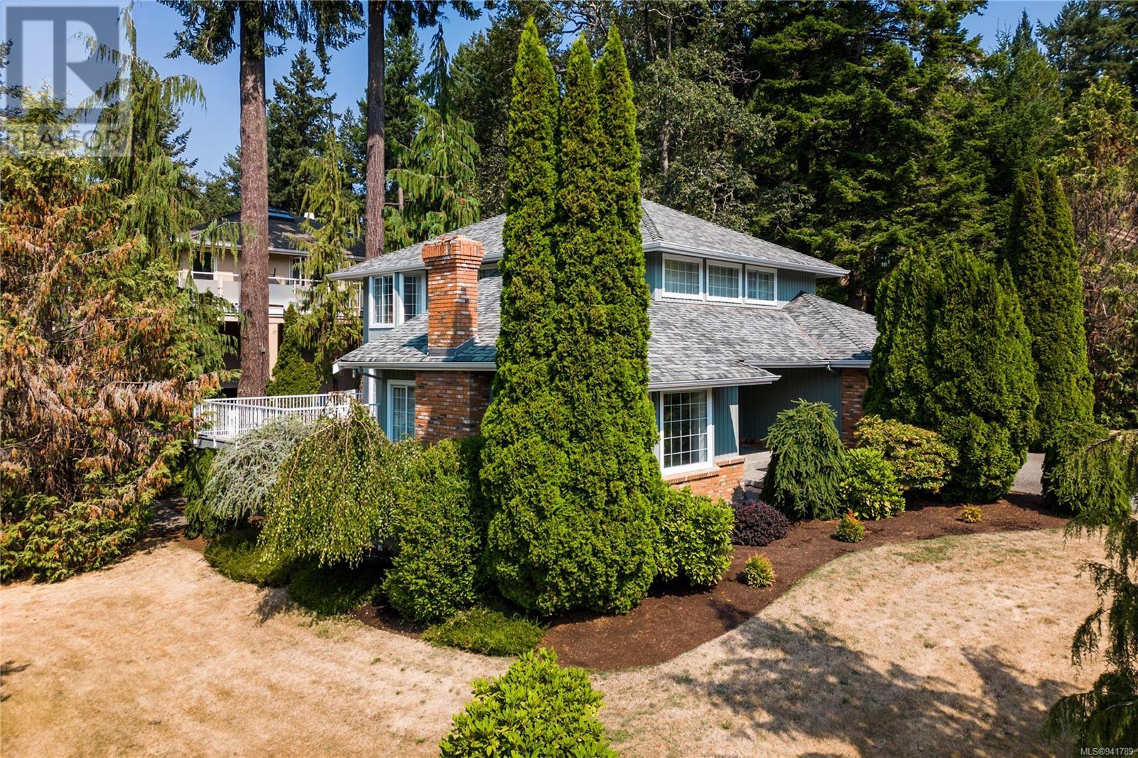 Beautiful Broadmead! Fastidiously maintained, 1 owner, 3 bed, 3 bath, 2757sf home on a large & masterfully landscaped 10,213sf/.23ac lot. Exuding street appeal & ideally located next to coveted Fir Tree Glen & steps to Rithet's Park. The front door opens to the bright cathedral entry. Be impressed w/the abundance of natural light thru a profusion of picture windows. Spacious living rm w/cozy fireplace & bay window. The dining rm will easily accommodate large family dinners & opens to the private deck - perfect for BBQs & outdoor entertaining. Kitchen boasts plenty of white oak cabinetry, peninsula, dual SS sinks & bay window eating area opening to the deck. Family rm w/brick fireplace opens thru sliders to the side patio. Laundry rm & 2pc bath complete main lvl. Up: 4pc bath & 3 generous beds incl huge primary bedroom w/bay window, walk-in closet & 4pc ensuite. Lower: oversized rec room opens to covered lower patio. Bonus: massive crawlspace for extra storage & dbl garage! (id:22211)