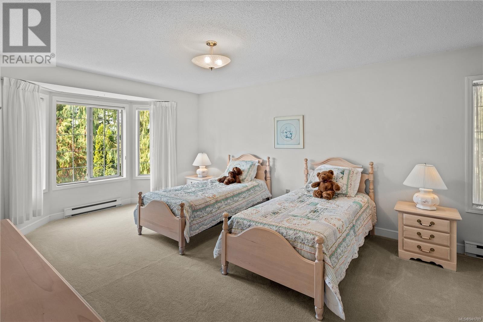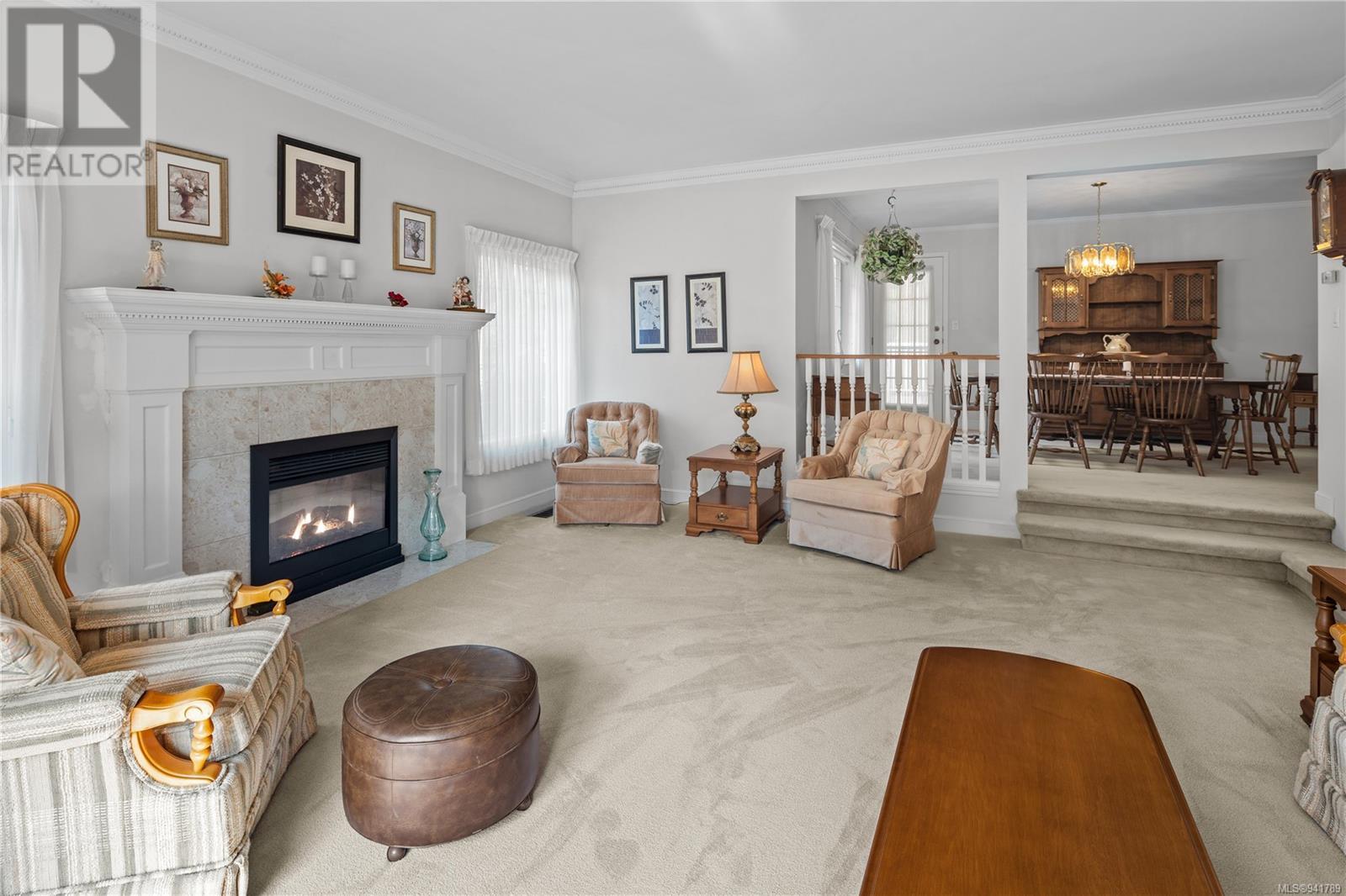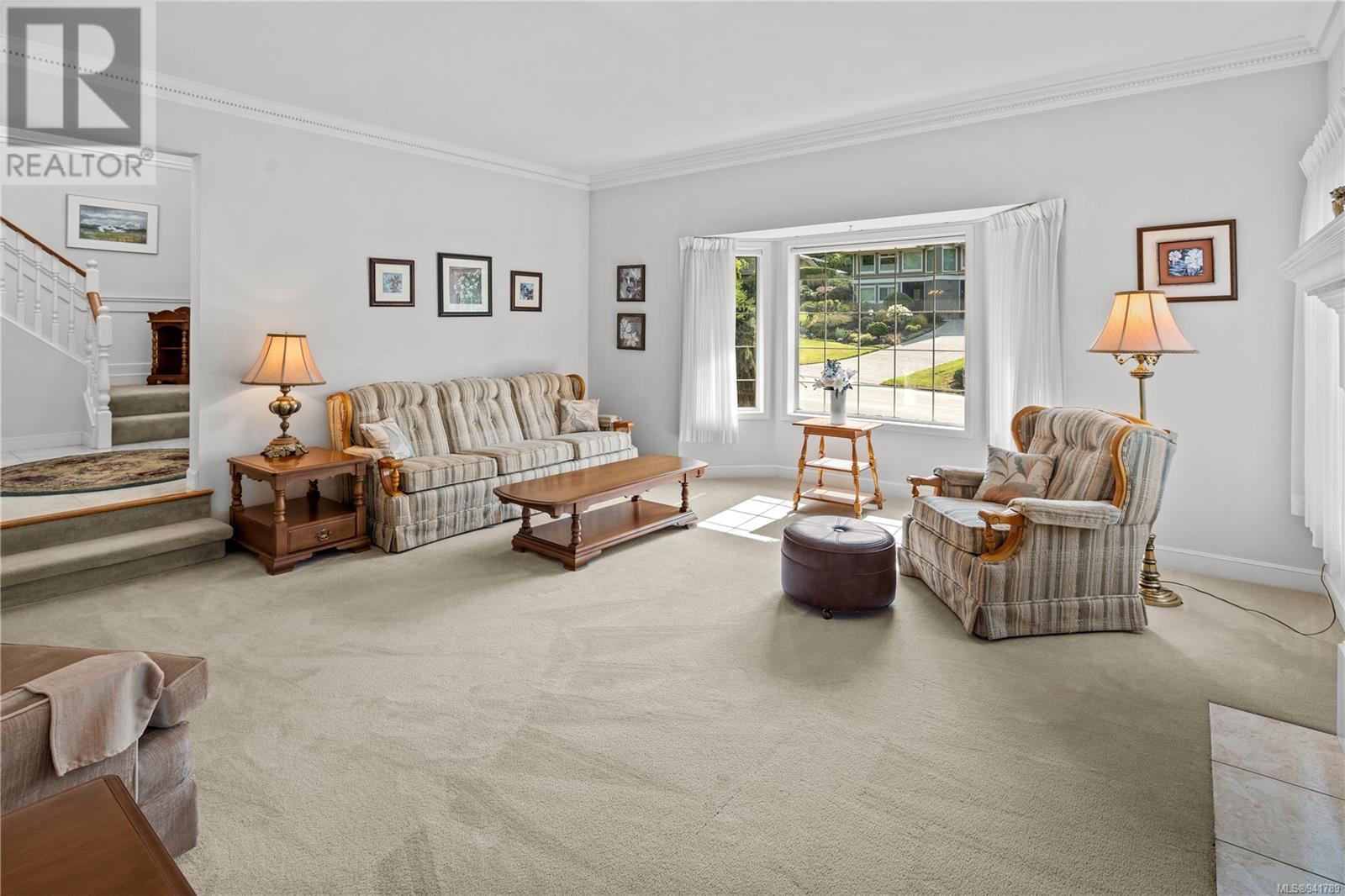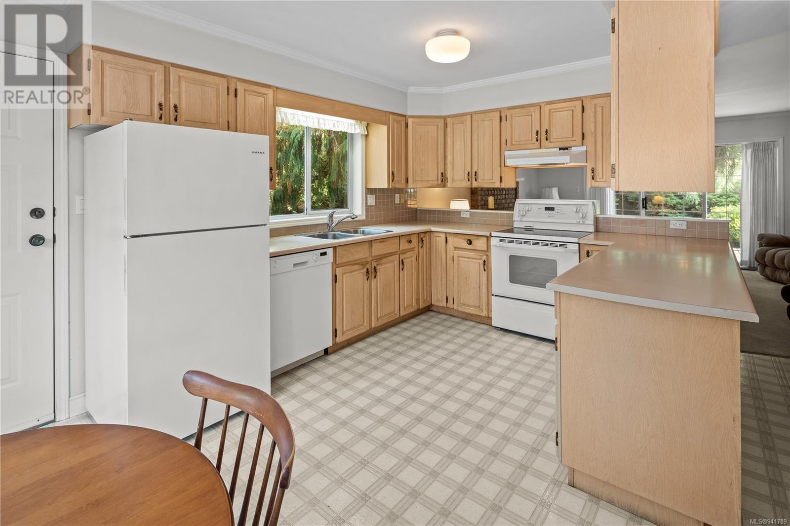 Beautiful Broadmead! Fastidiously maintained, 1 owner, 3 bed, 3 bath, 2757sf home on a large & masterfully landscaped 10,213sf/.23ac lot. Exuding street appeal & ideally located next to coveted Fir Tree Glen & steps to Rithet's Park. The front door opens to the bright cathedral entry. Be impressed w/the abundance of natural light thru a profusion of picture windows. Spacious living rm w/cozy fireplace & bay window. The dining rm will easily accommodate large family dinners & opens to the private deck - perfect for BBQs & outdoor entertaining. Kitchen boasts plenty of white oak cabinetry, peninsula, dual SS sinks & bay window eating area opening to the deck. Family rm w/brick fireplace opens thru sliders to the side patio. Laundry rm & 2pc bath complete main lvl. Up: 4pc bath & 3 generous beds incl huge primary bedroom w/bay window, walk-in closet & 4pc ensuite. Lower: oversized rec room opens to covered lower patio. Bonus: massive crawlspace for extra storage & dbl garage! (id:22211)