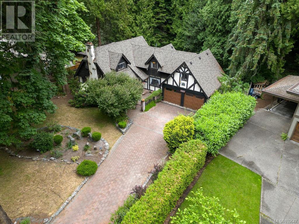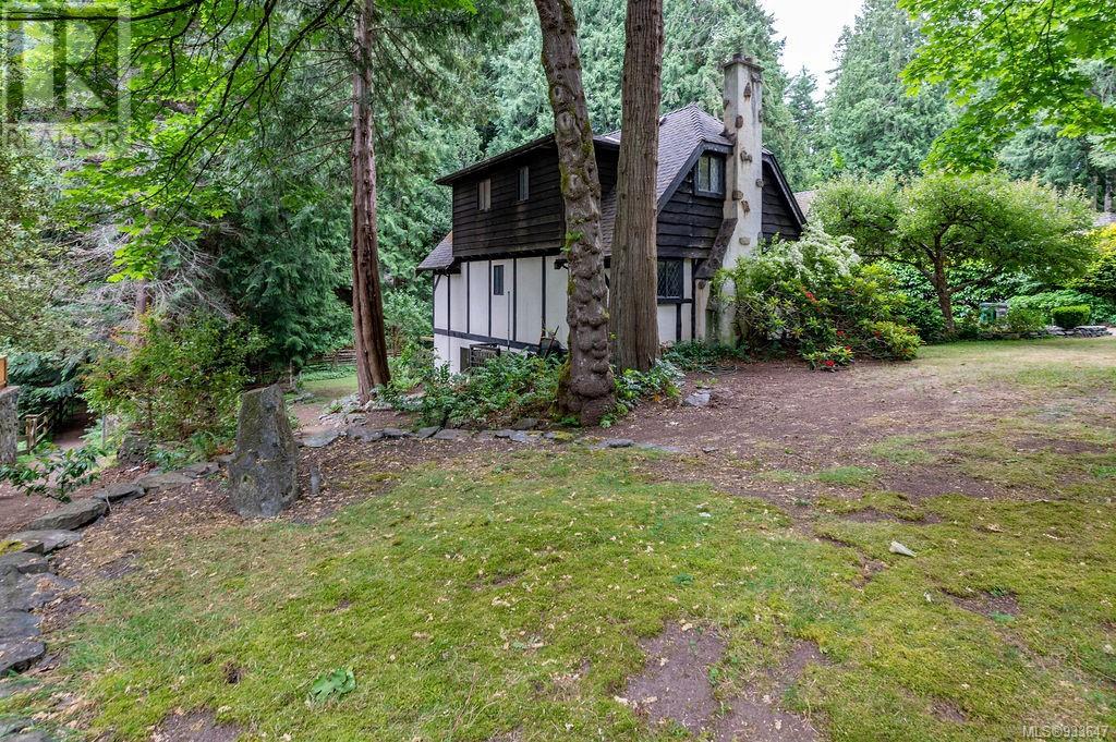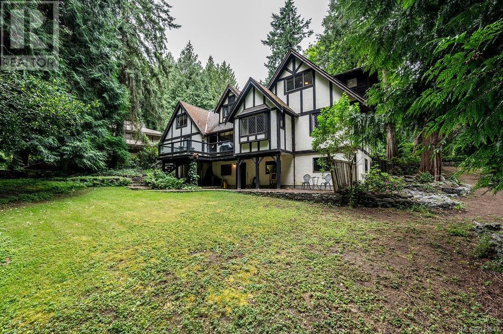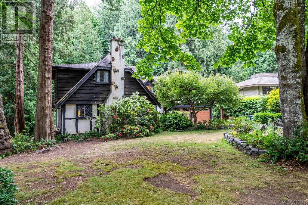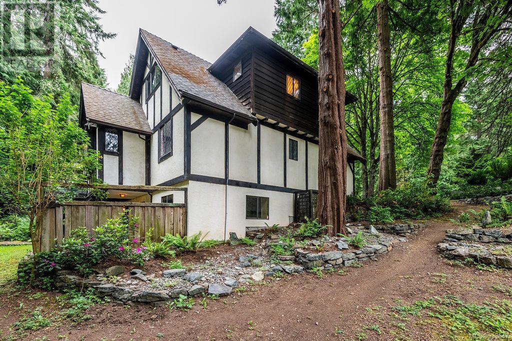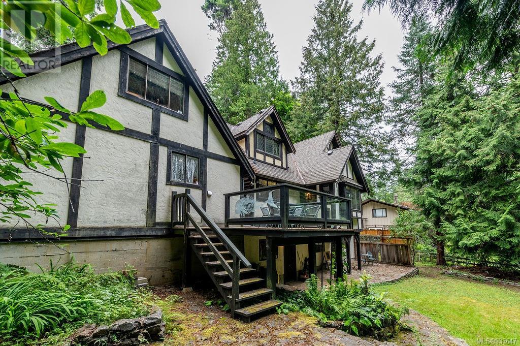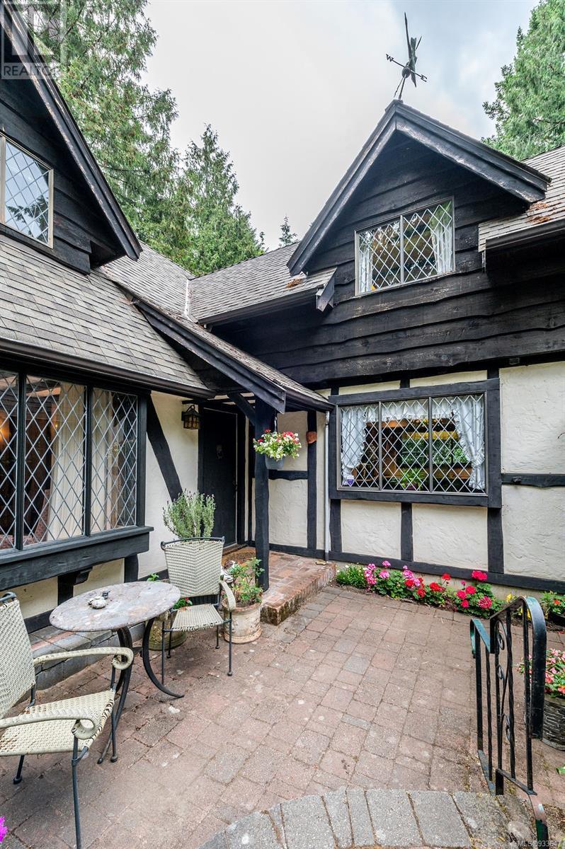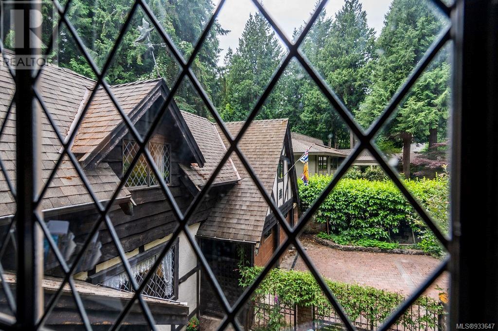 One of the few Tudor style homes in Broadmead reflecting a personal statement of the homeowner in 1973. In need of updating and redecoration this 2 storey home plus unfinished basement sits on a south facing 13,068 sq. ft. lot bordering parkland and with access from an adjacent public access. The home combines 3 bedrooms, plus office/bedroom, 3 baths and 2351 sq. ft. of finished area plus 1010 in the unfinished basement. Large living room with fireplace, separate dining room which was expanded in 1995. In addition to the 3 bedrooms up there is a large recreation/hobby room. Rear deck has access from the kitchen and dining room. Enter the home through the enclosed front courtyard. This unique home and setting is ready for a more contemporary interior. Extensive untouched beams and woodwork throughout. Wood mantle, inlaid hardwood floors, decorative tile on fireplace, leaded glass windows. Time to add your personal statement to this original Tudor home. (id:22211)