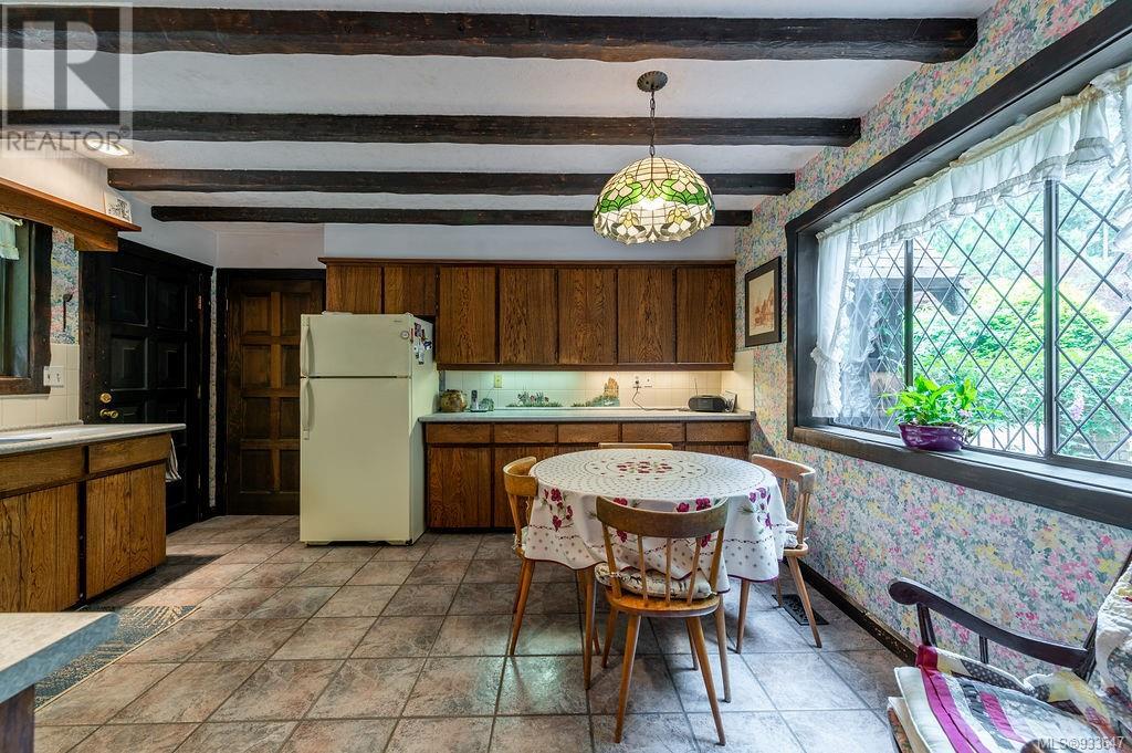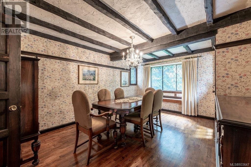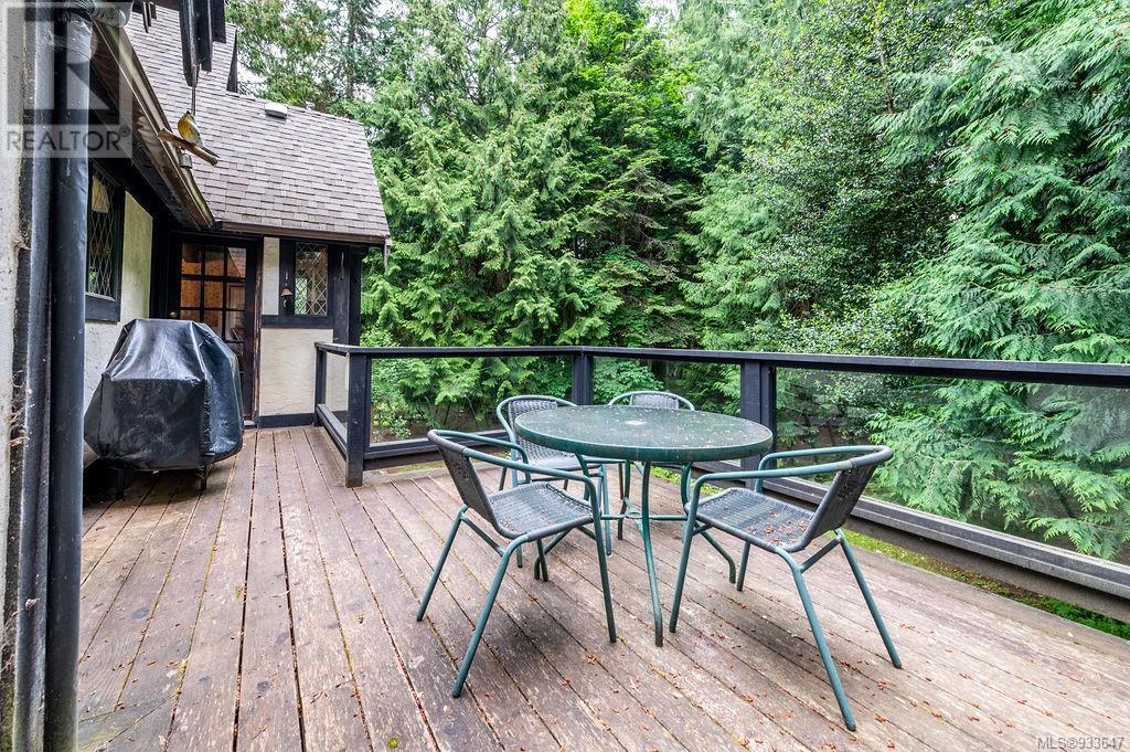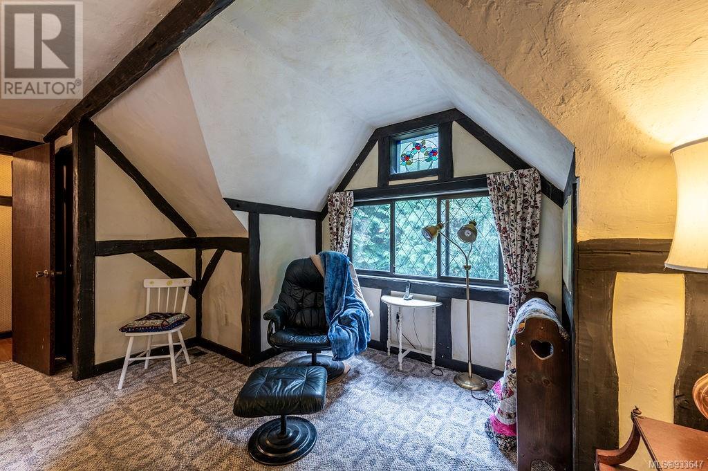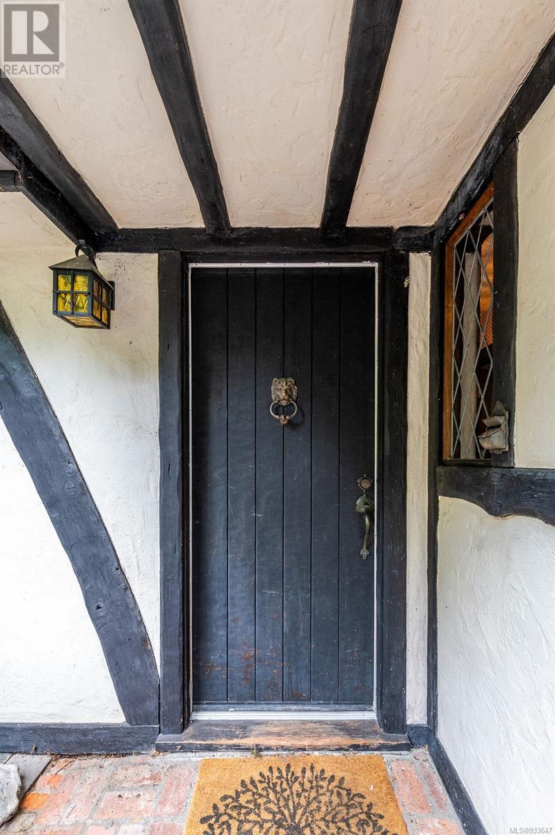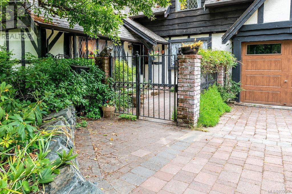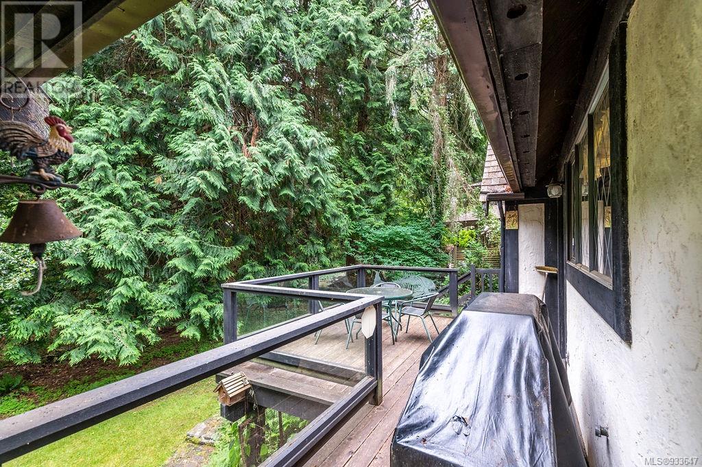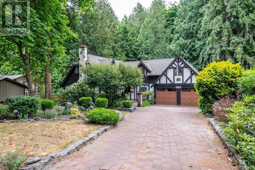 One of the few Tudor style homes in Broadmead reflecting a personal statement of the homeowner in 1973. In need of updating and redecoration this 2 storey home plus unfinished basement sits on a south facing 13,068 sq. ft. lot bordering parkland and with access from an adjacent public access. The home combines 3 bedrooms, plus office/bedroom, 3 baths and 2351 sq. ft. of finished area plus 1010 in the unfinished basement. Large living room with fireplace, separate dining room which was expanded in 1995. In addition to the 3 bedrooms up there is a large recreation/hobby room. Rear deck has access from the kitchen and dining room. Enter the home through the enclosed front courtyard. This unique home and setting is ready for a more contemporary interior. Extensive untouched beams and woodwork throughout. Wood mantle, inlaid hardwood floors, decorative tile on fireplace, leaded glass windows. Time to add your personal statement to this original Tudor home. (id:22211)