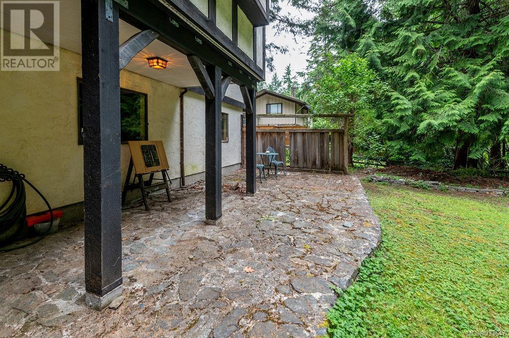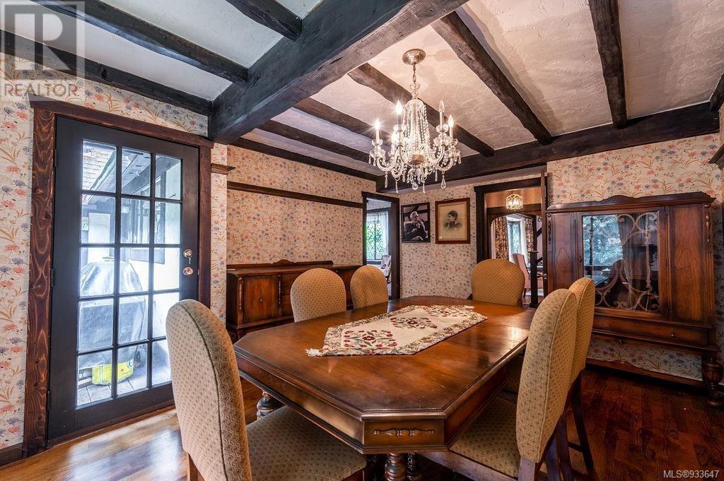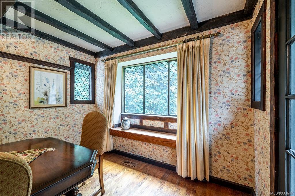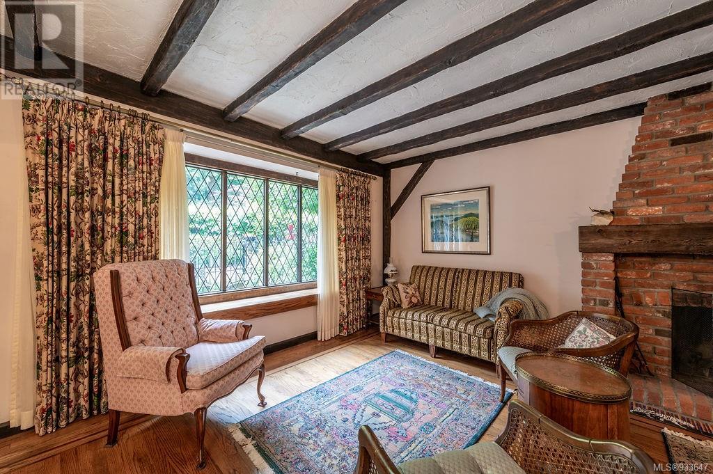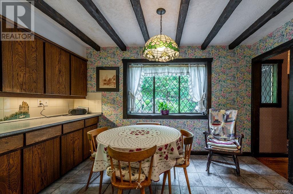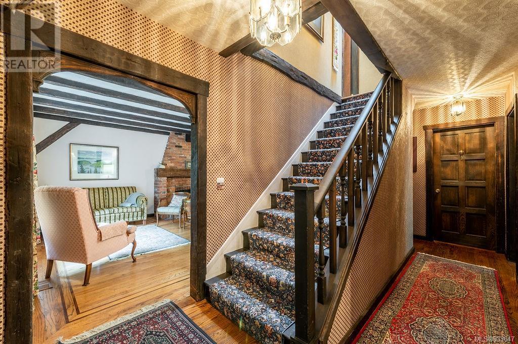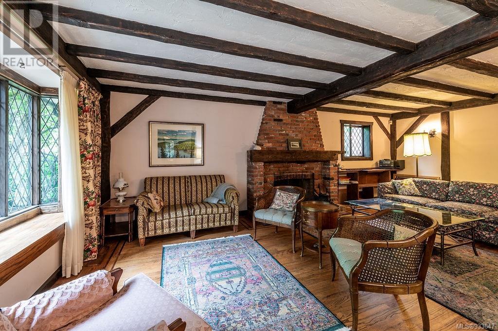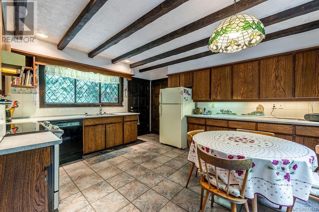 One of the few Tudor style homes in Broadmead reflecting a personal statement of the homeowner in 1973. In need of updating and redecoration this 2 storey home plus unfinished basement sits on a south facing 13,068 sq. ft. lot bordering parkland and with access from an adjacent public access. The home combines 3 bedrooms, plus office/bedroom, 3 baths and 2351 sq. ft. of finished area plus 1010 in the unfinished basement. Large living room with fireplace, separate dining room which was expanded in 1995. In addition to the 3 bedrooms up there is a large recreation/hobby room. Rear deck has access from the kitchen and dining room. Enter the home through the enclosed front courtyard. This unique home and setting is ready for a more contemporary interior. Extensive untouched beams and woodwork throughout. Wood mantle, inlaid hardwood floors, decorative tile on fireplace, leaded glass windows. Time to add your personal statement to this original Tudor home. (id:22211)
