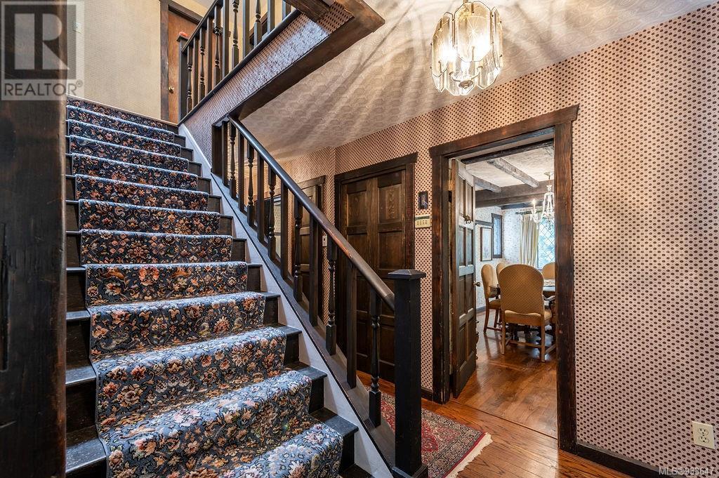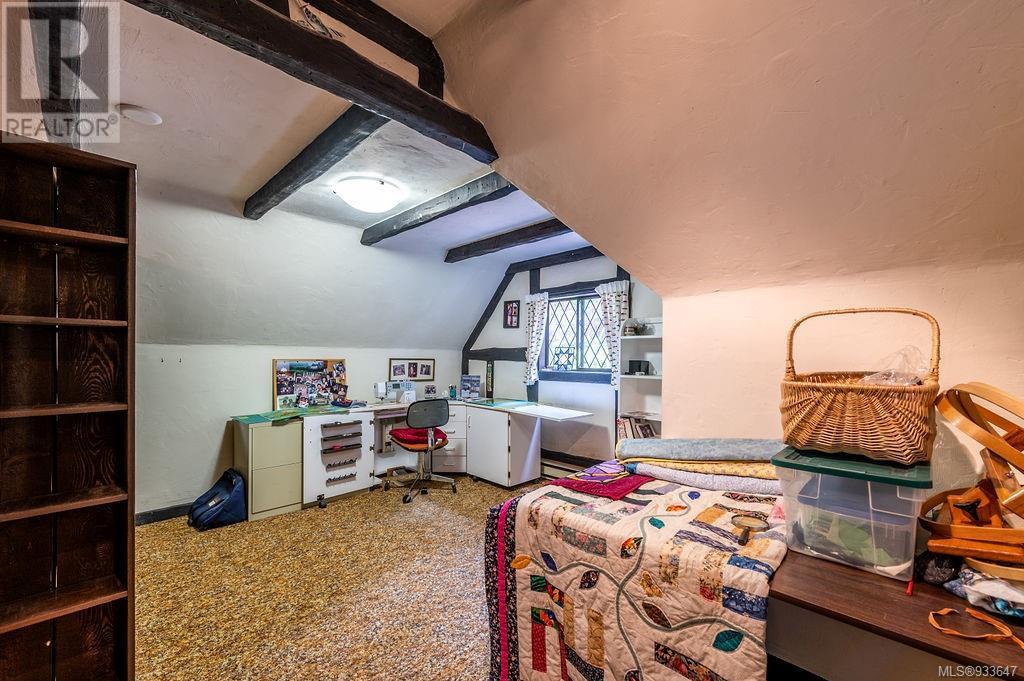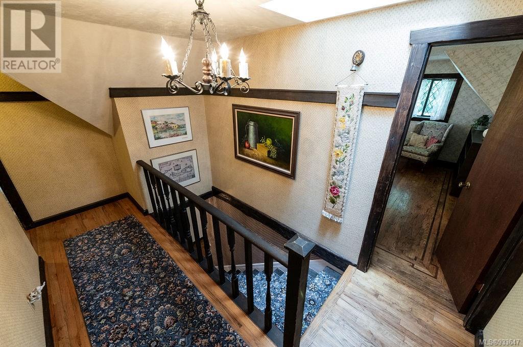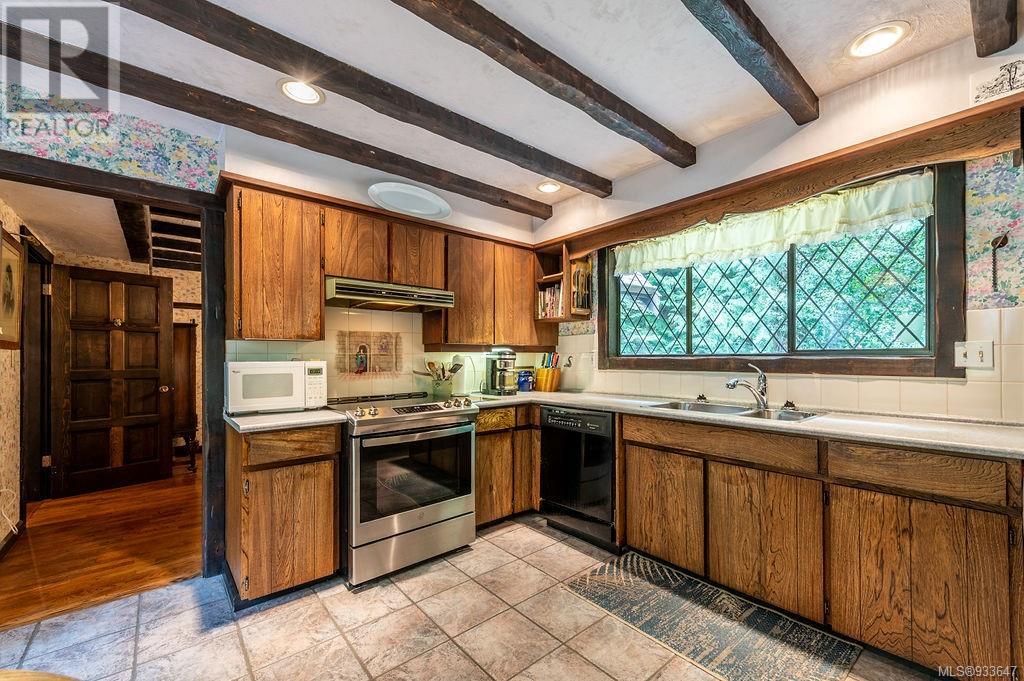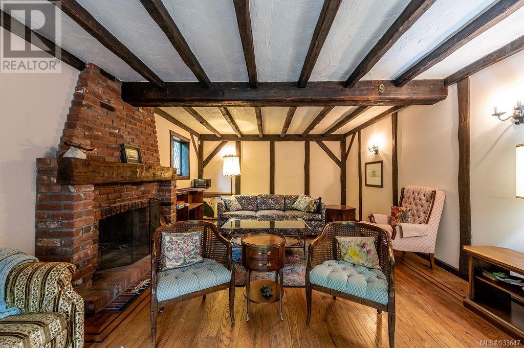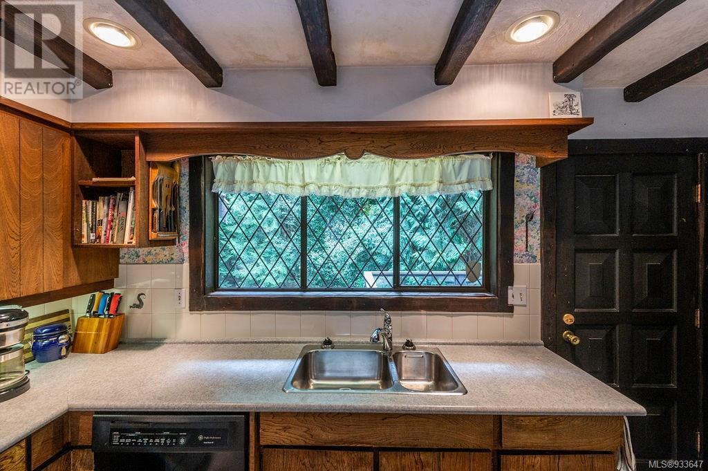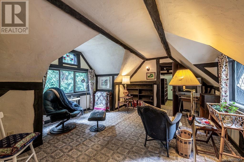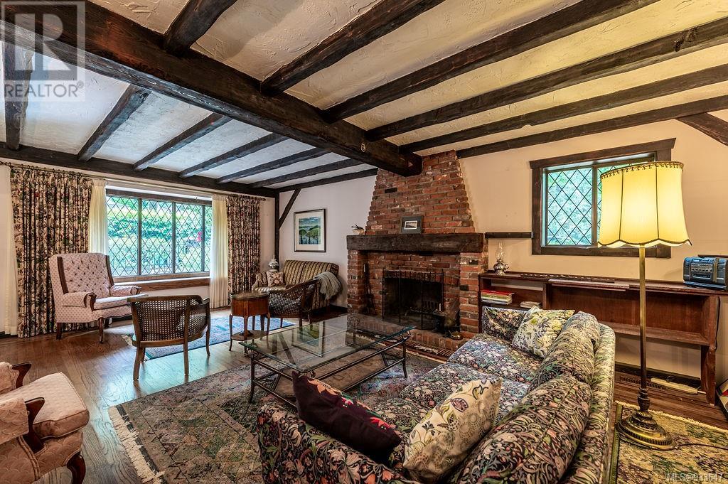 One of the few Tudor style homes in Broadmead reflecting a personal statement of the homeowner in 1973. In need of updating and redecoration this 2 storey home plus unfinished basement sits on a south facing 13,068 sq. ft. lot bordering parkland and with access from an adjacent public access. The home combines 3 bedrooms, plus office/bedroom, 3 baths and 2351 sq. ft. of finished area plus 1010 in the unfinished basement. Large living room with fireplace, separate dining room which was expanded in 1995. In addition to the 3 bedrooms up there is a large recreation/hobby room. Rear deck has access from the kitchen and dining room. Enter the home through the enclosed front courtyard. This unique home and setting is ready for a more contemporary interior. Extensive untouched beams and woodwork throughout. Wood mantle, inlaid hardwood floors, decorative tile on fireplace, leaded glass windows. Time to add your personal statement to this original Tudor home. (id:22211)