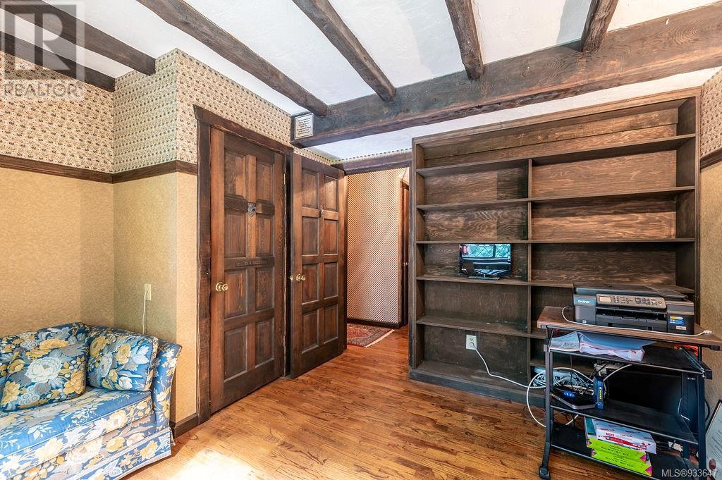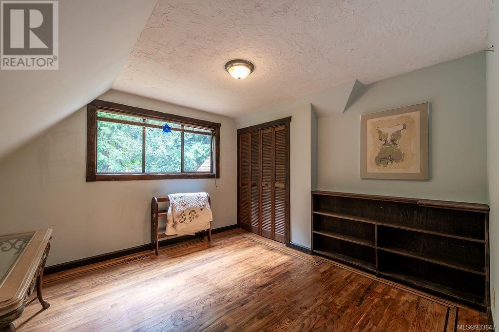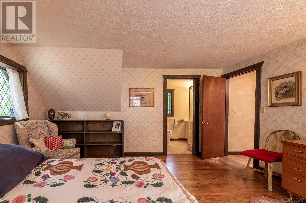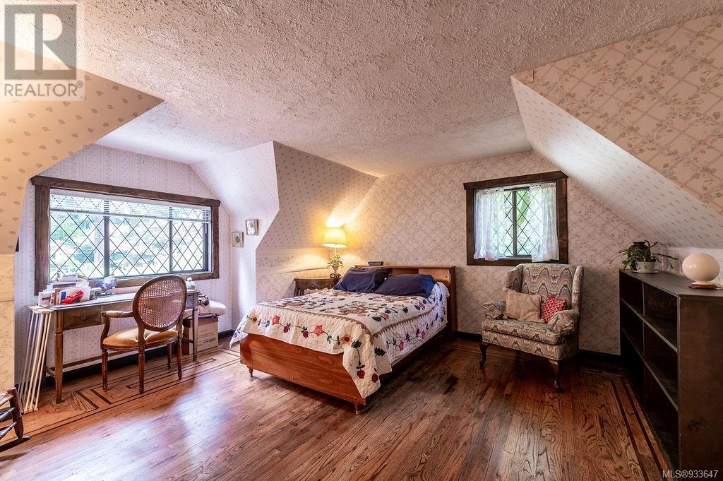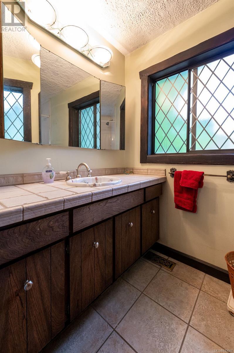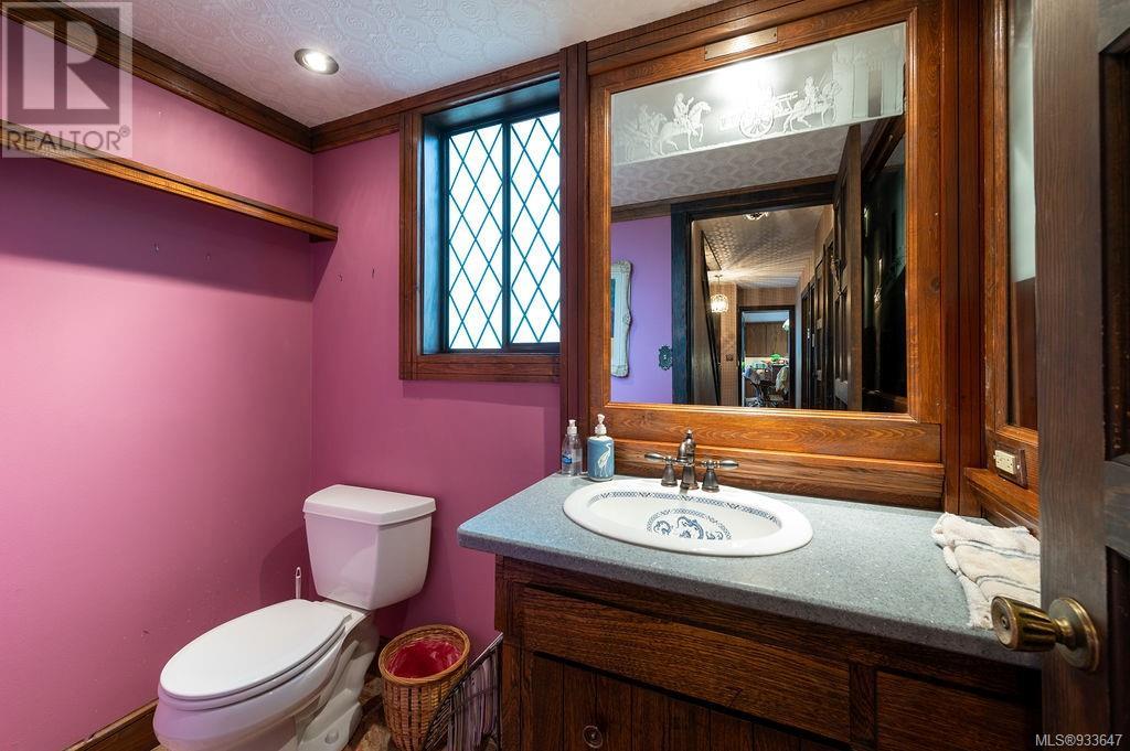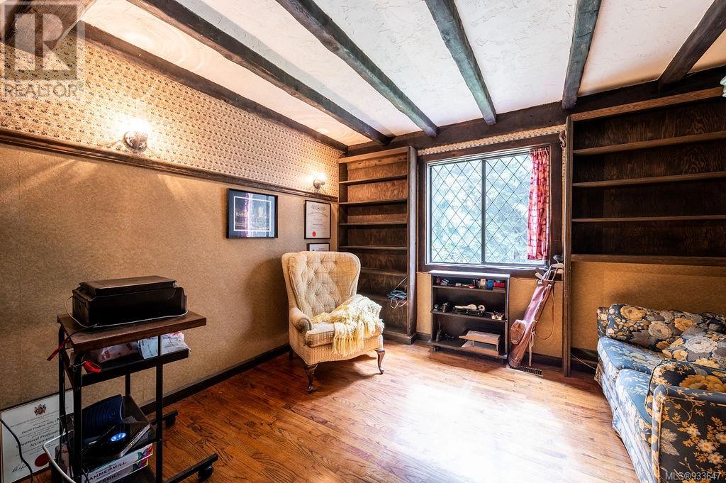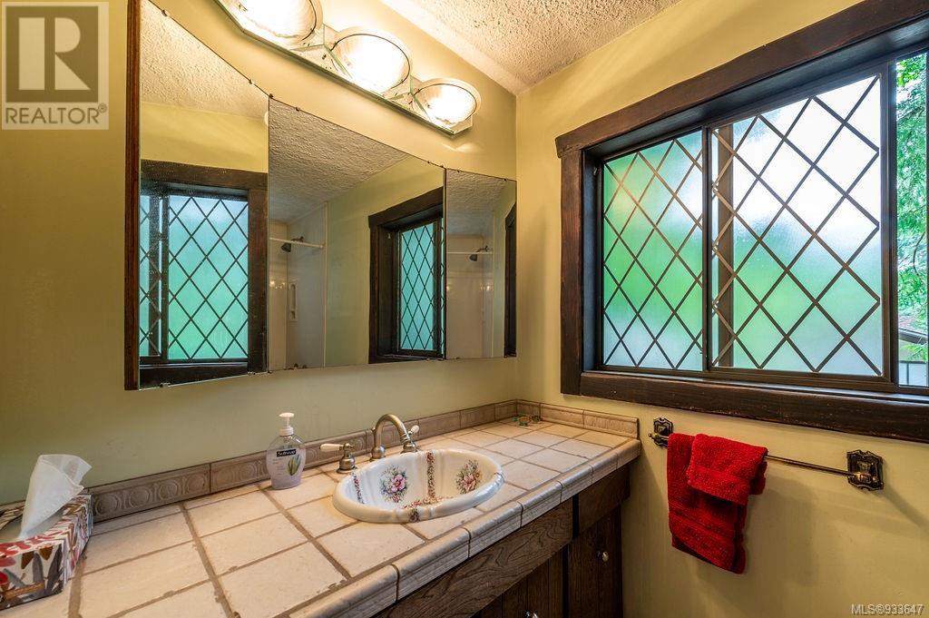 One of the few Tudor style homes in Broadmead reflecting a personal statement of the homeowner in 1973. In need of updating and redecoration this 2 storey home plus unfinished basement sits on a south facing 13,068 sq. ft. lot bordering parkland and with access from an adjacent public access. The home combines 3 bedrooms, plus office/bedroom, 3 baths and 2351 sq. ft. of finished area plus 1010 in the unfinished basement. Large living room with fireplace, separate dining room which was expanded in 1995. In addition to the 3 bedrooms up there is a large recreation/hobby room. Rear deck has access from the kitchen and dining room. Enter the home through the enclosed front courtyard. This unique home and setting is ready for a more contemporary interior. Extensive untouched beams and woodwork throughout. Wood mantle, inlaid hardwood floors, decorative tile on fireplace, leaded glass windows. Time to add your personal statement to this original Tudor home. (id:22211)