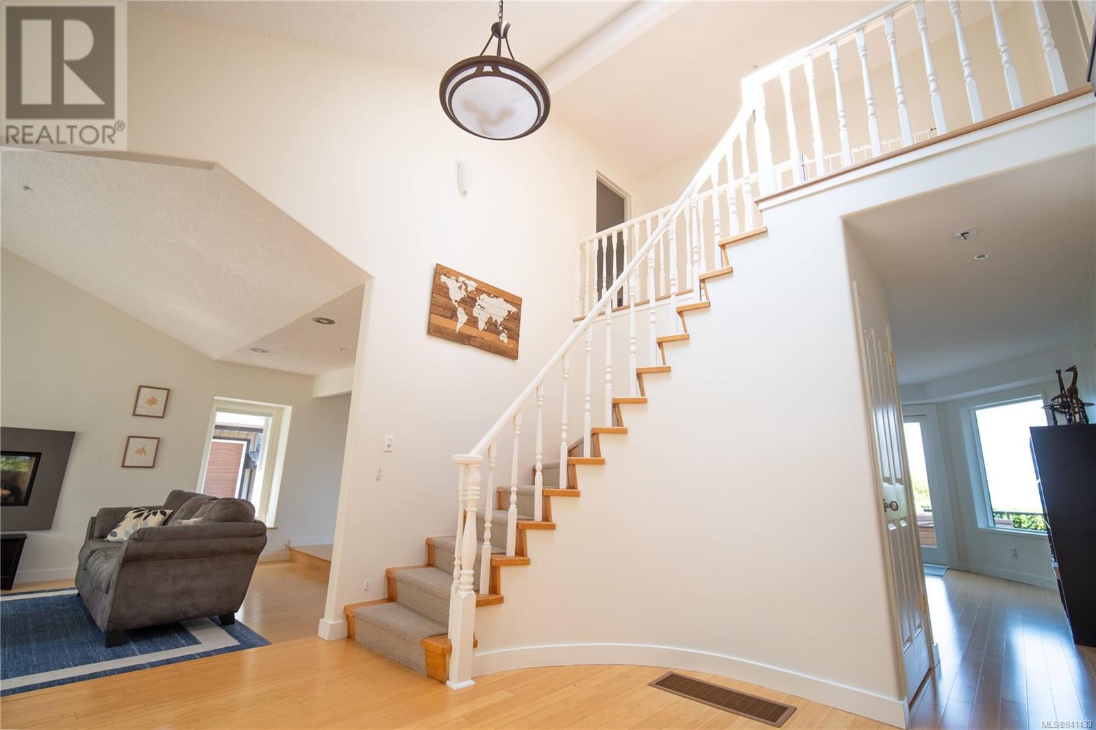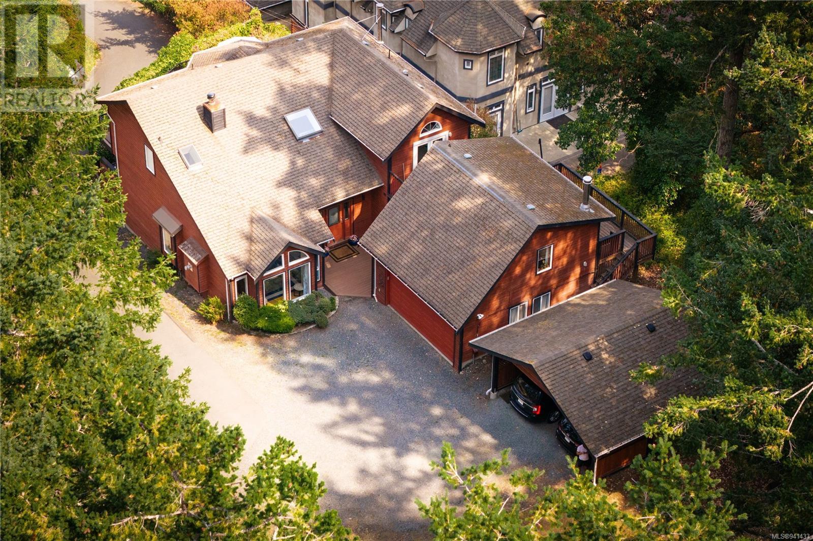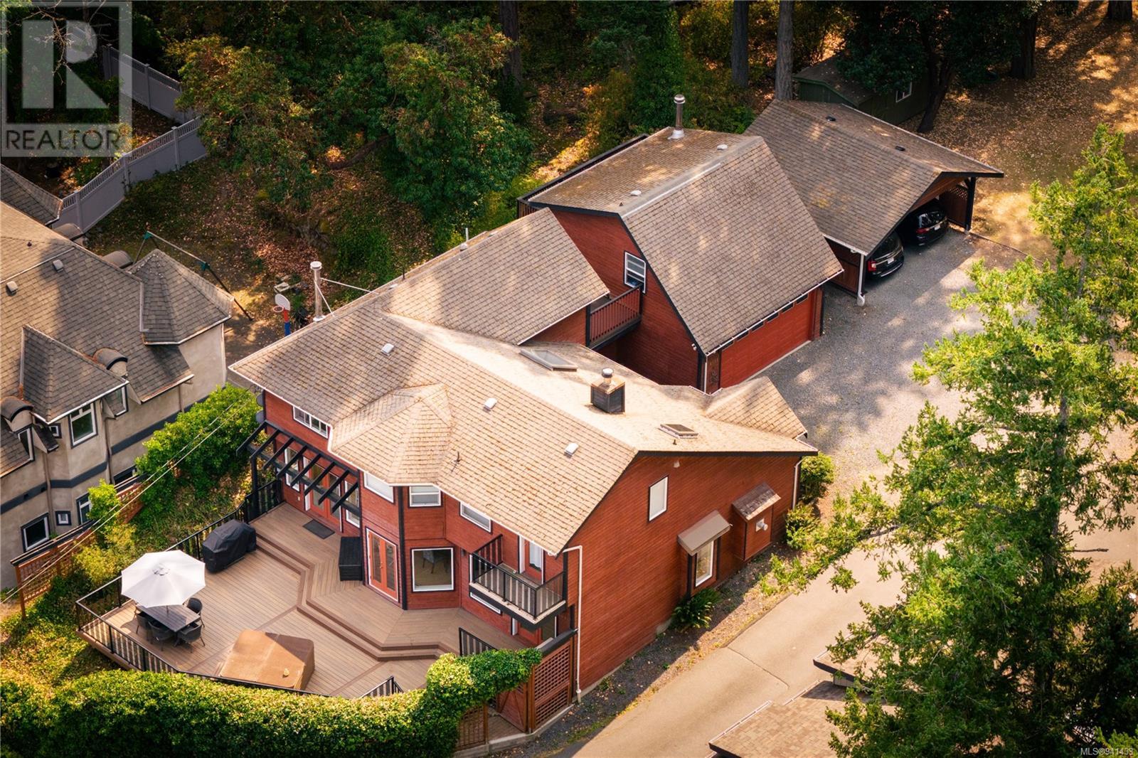 Welcome to your urban sanctuary! Enjoy ocean views and access to the Mt Douglas Park trail system through your backyard. This spacious 6-bedroom, 4-bathroom home has ocean views from every room on the main floor and 2 of the bedrooms upstairs! The home was recently renovated and has many updates including a new Heat Pump, HW tank, electrical panel, fridge and washing machine. The bright and airy interior is enhanced by skylights and cathedral windows. The stylish Trex deck with tinted glass accent rails is over 900 sq ft and hosts a hot tub for you to relax in while you gaze out over Cordova Bay. The home has an in-law suite above its garage that could also function as a home office/business. Come and see this rare property with elevated ocean views and a large, flat backyard! (id:22211)