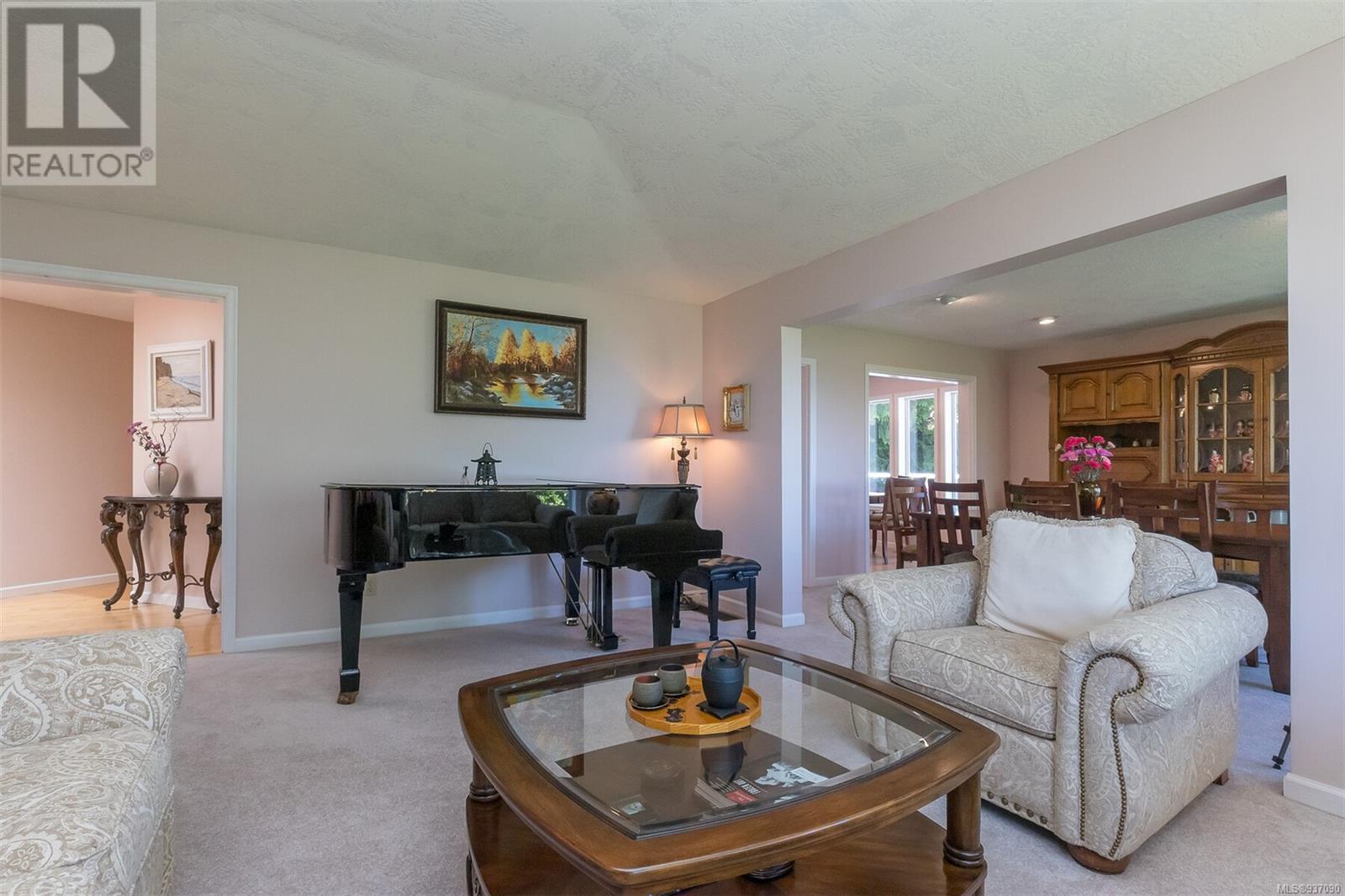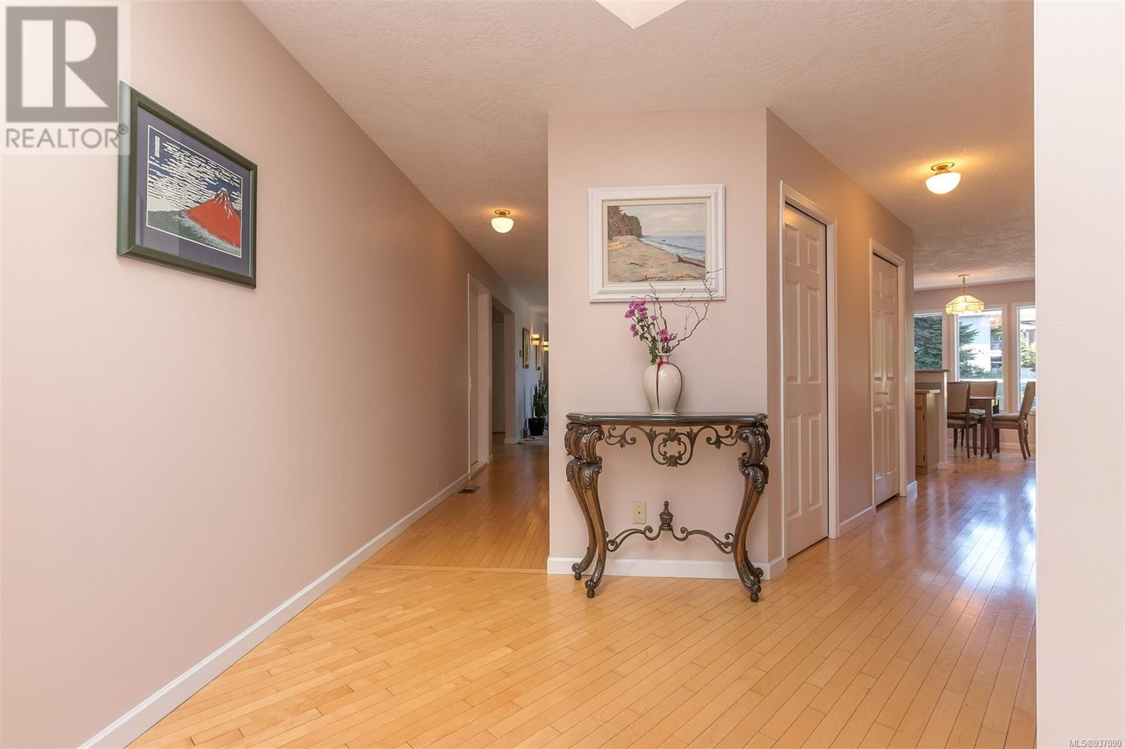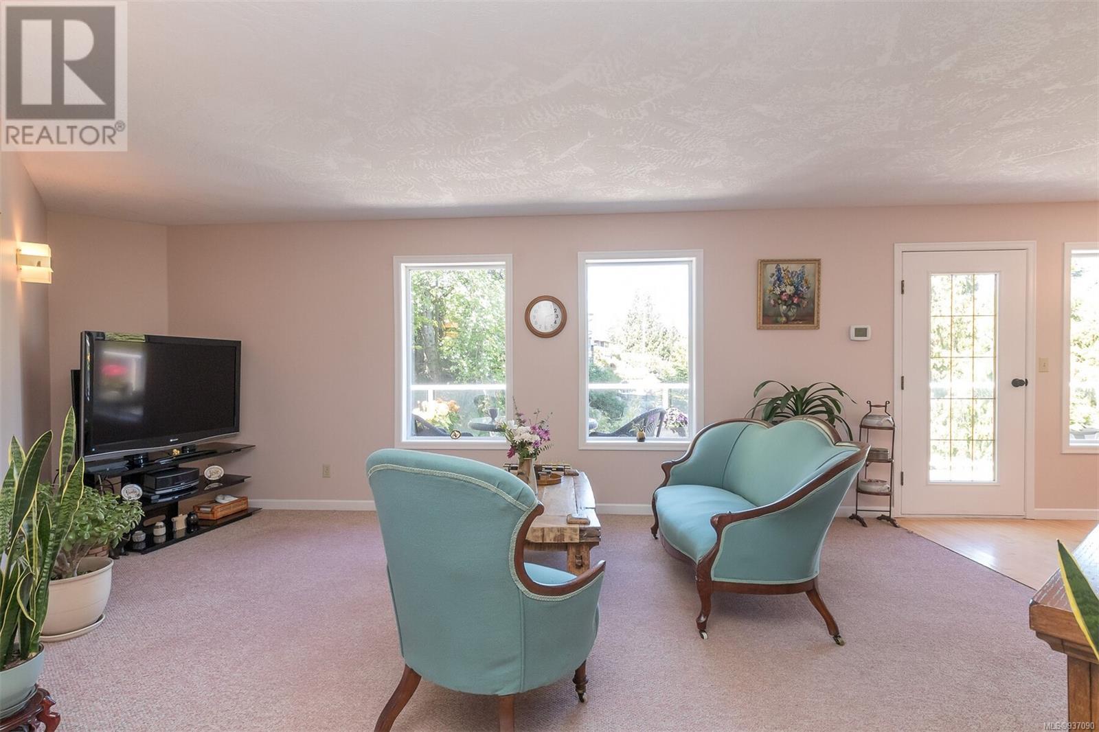 This is your dream home in the highly desirable neighbourhood of Cordova Bay, with mountain and water views! Located in a very quiet cul de sac, with primary bedroom on the main level, the house offers 6-bedroom, 4-bathroom & 5300+ sq feet of living space. Main level has 2200+ sq feet w/ primary bedroom and ensuite, double car garage, powder room, kitchen w/ breakfast area, formal dining room, family room and living room & views, views & more views. Wonderful wrap around sundecks on main level for relaxing & taking in those views. The lower 2 levels have a media room, rec room/gym, 4 bdr and 2 bth, and loads of storage space. Easy to convert a level to a separate in-law suite. 14,262 sq. feet lot with low maintenance landscaping. Heat pump. New roof (2023). Superb location. Steps to Cordova Bay Golf, Mattick’s Farm, beach and many walking trails. Enjoy captivating views from the balcony. (id:22211)