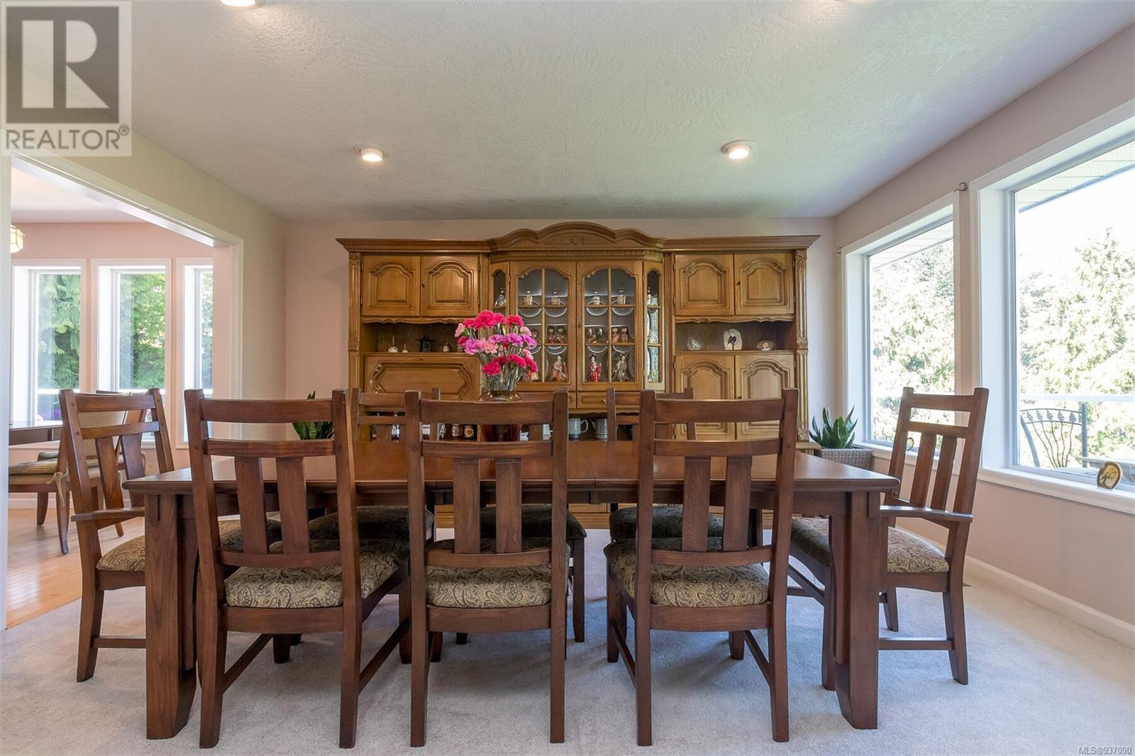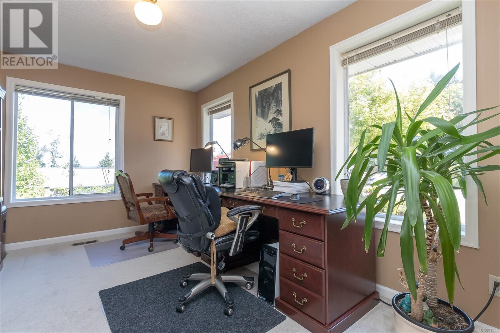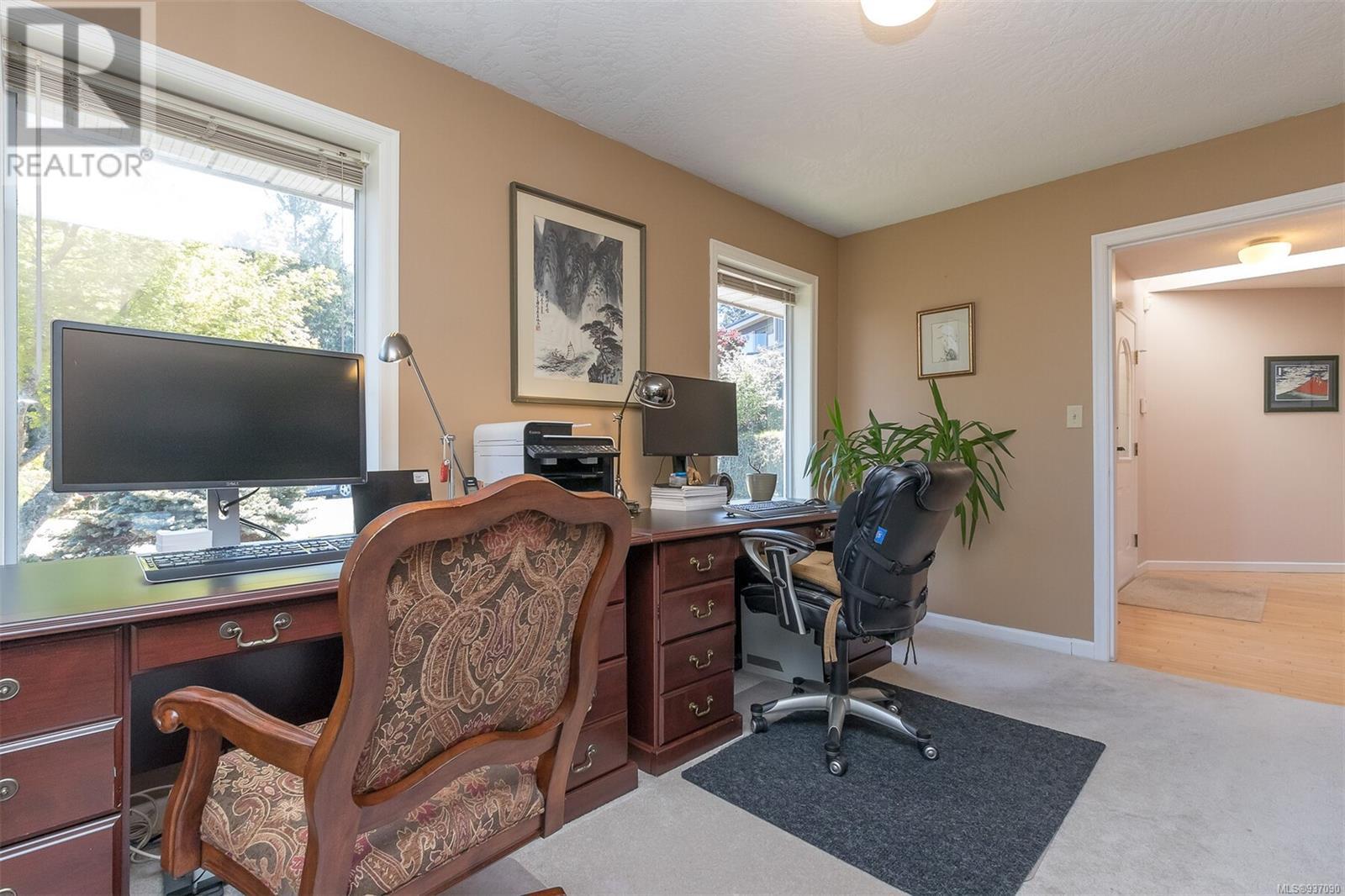 This is your dream home in the highly desirable neighbourhood of Cordova Bay, with mountain and water views! Located in a very quiet cul de sac, with primary bedroom on the main level, the house offers 6-bedroom, 4-bathroom & 5300+ sq feet of living space. Main level has 2200+ sq feet w/ primary bedroom and ensuite, double car garage, powder room, kitchen w/ breakfast area, formal dining room, family room and living room & views, views & more views. Wonderful wrap around sundecks on main level for relaxing & taking in those views. The lower 2 levels have a media room, rec room/gym, 4 bdr and 2 bth, and loads of storage space. Easy to convert a level to a separate in-law suite. 14,262 sq. feet lot with low maintenance landscaping. Heat pump. New roof (2023). Superb location. Steps to Cordova Bay Golf, Mattick’s Farm, beach and many walking trails. Enjoy captivating views from the balcony. (id:22211)