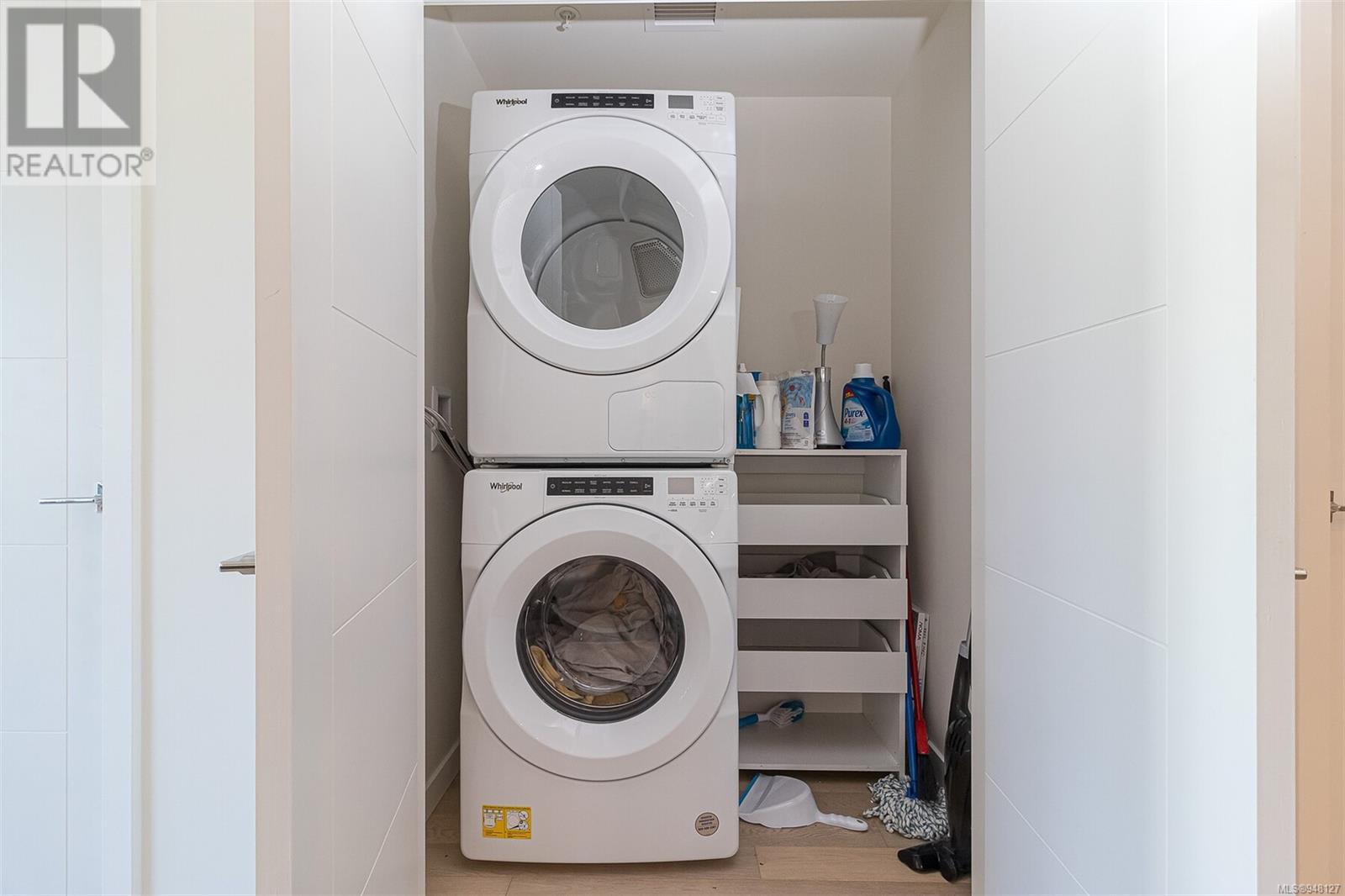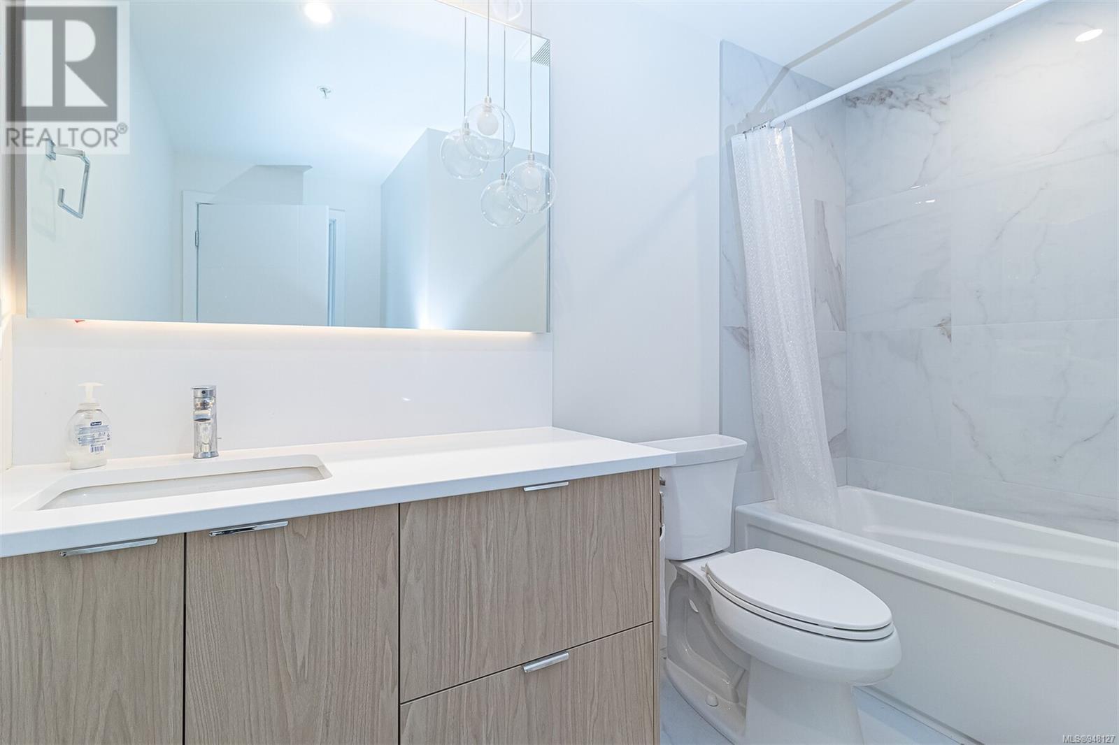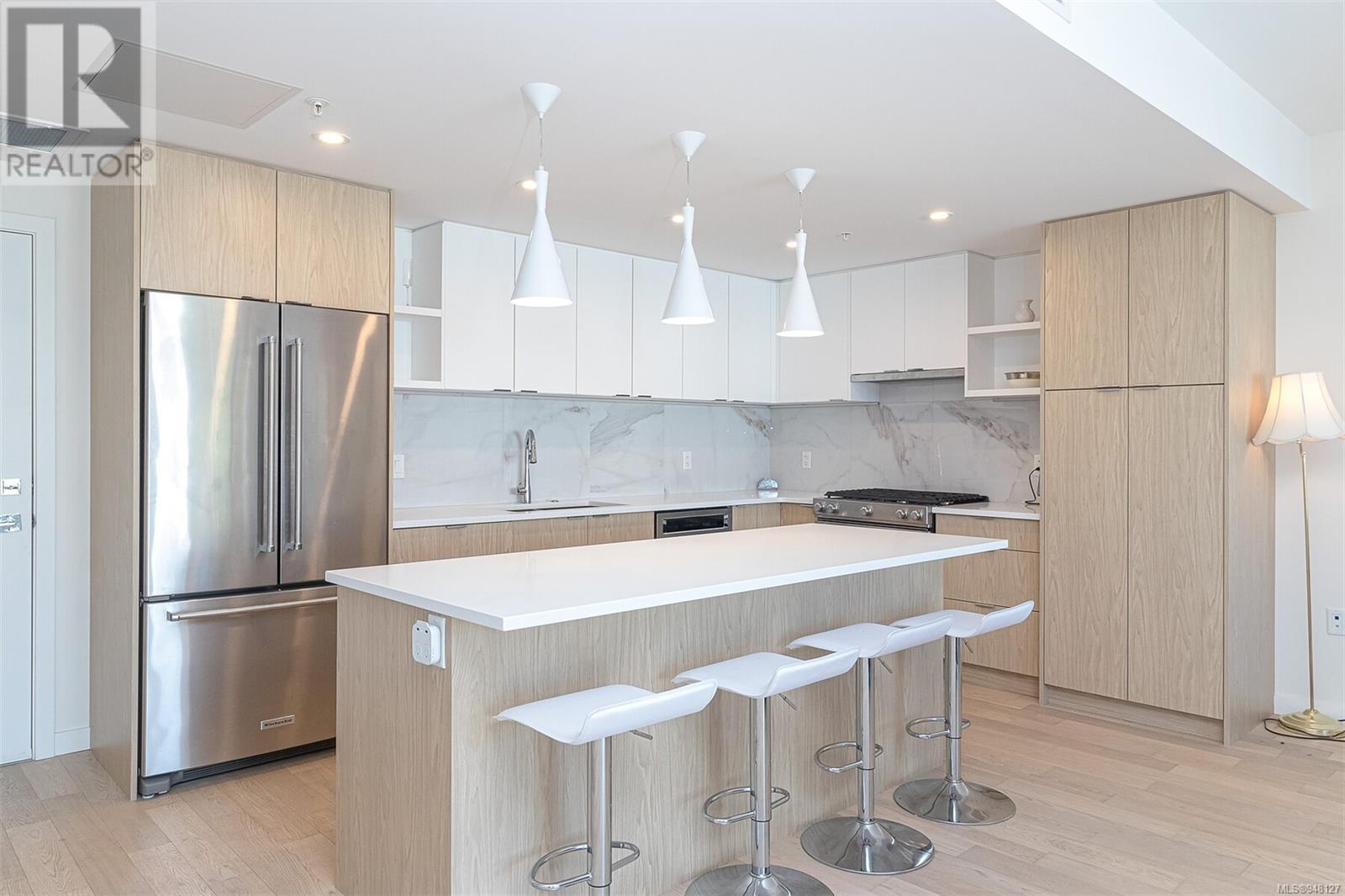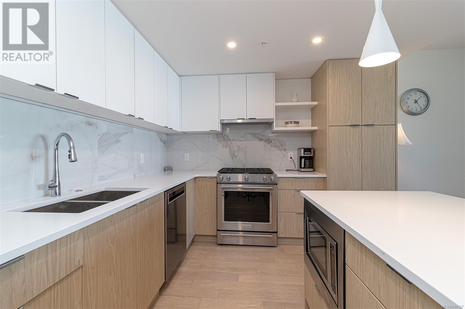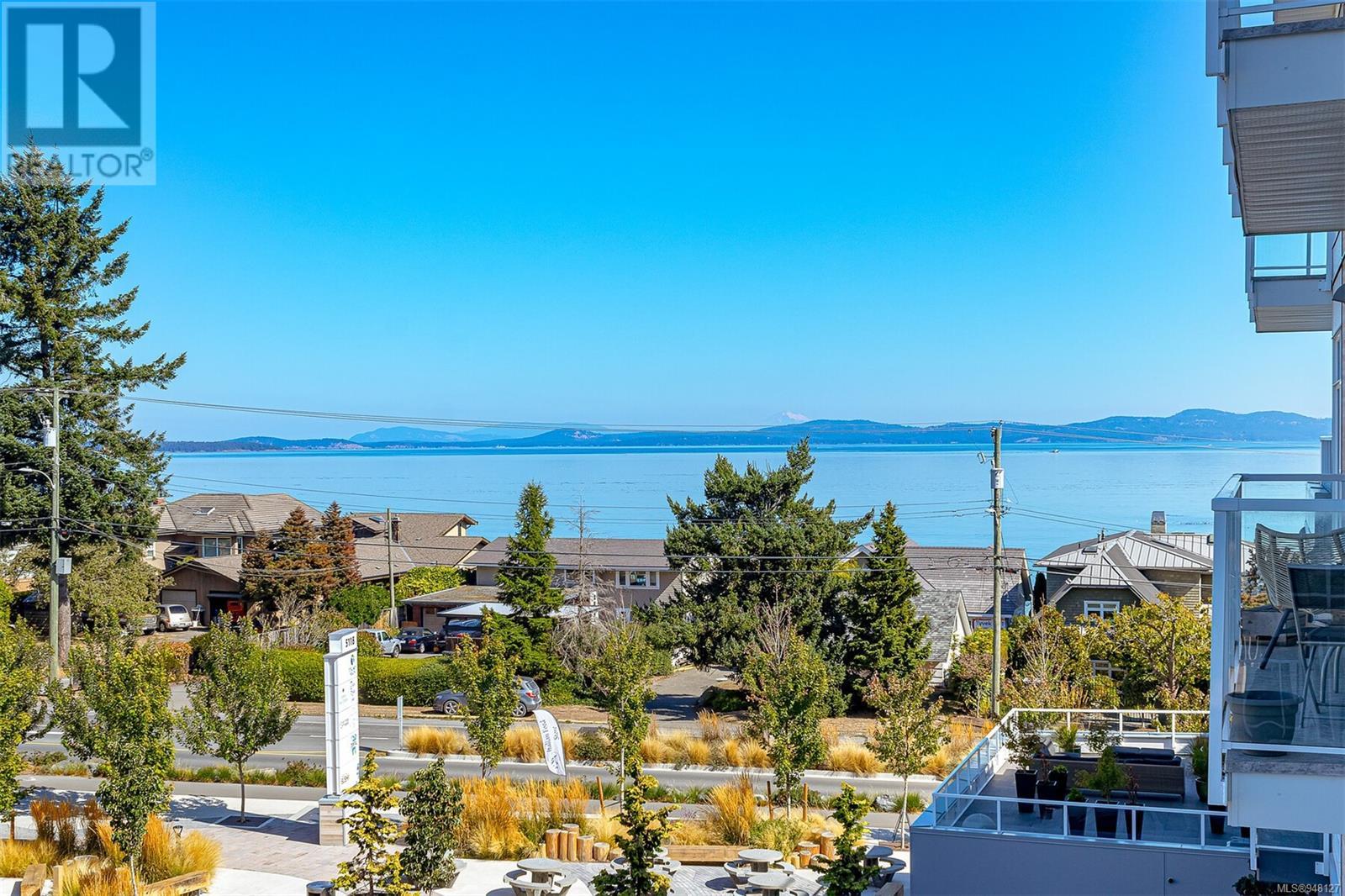 OCEAN VIEW UNIT! Welcome to this meticulous top floor condo in the sought after Haro Development! This 2 bed + Den/ 2 bath Northeast facing unit receives ample natural light throughout the day featuring an open concept floor plan and split bedroom design. The modern kitchen is complete with stainless steel appliances and contemporary finishes including quartz countertops and soft close cabinetry. The spacious primary features a 3-piece en-suite with walk-in shower. Completed in 2021, these units were built with attention and detail. This suite also includes in-unit laundry, a designated secure underground parking space, separate storage, is pet and family friendly, and allows rentals. Located in one of Victoria’s most prestigious neighborhoods, Cordova Bay is an active community where exercise is a part of daily life. Paths wind through tall trees and farmland. Just steps away from the beach and within walking distance to many amenities, golf courses and schools. Call today (id:22211)