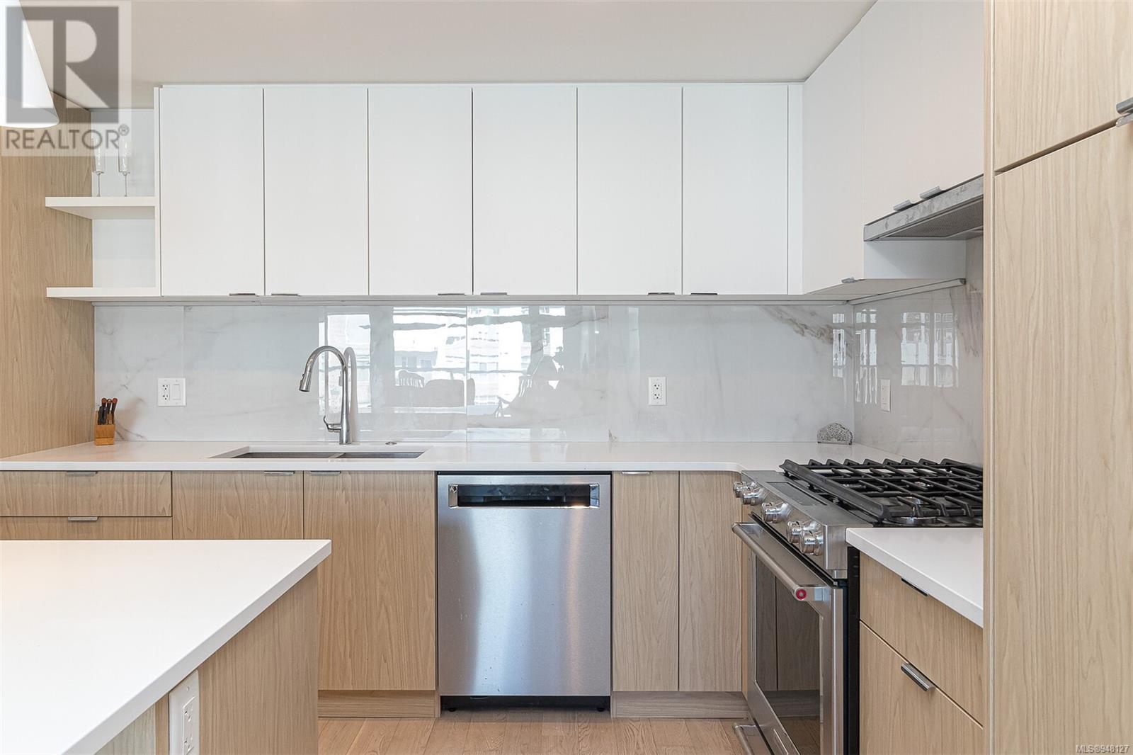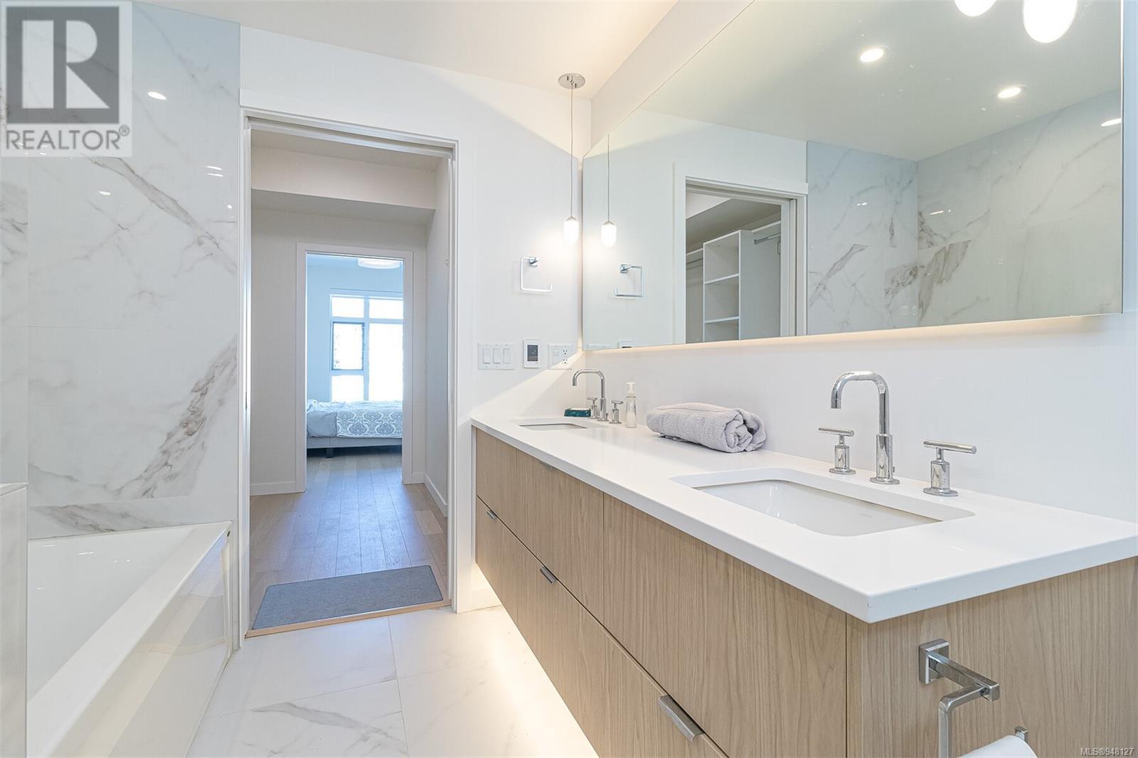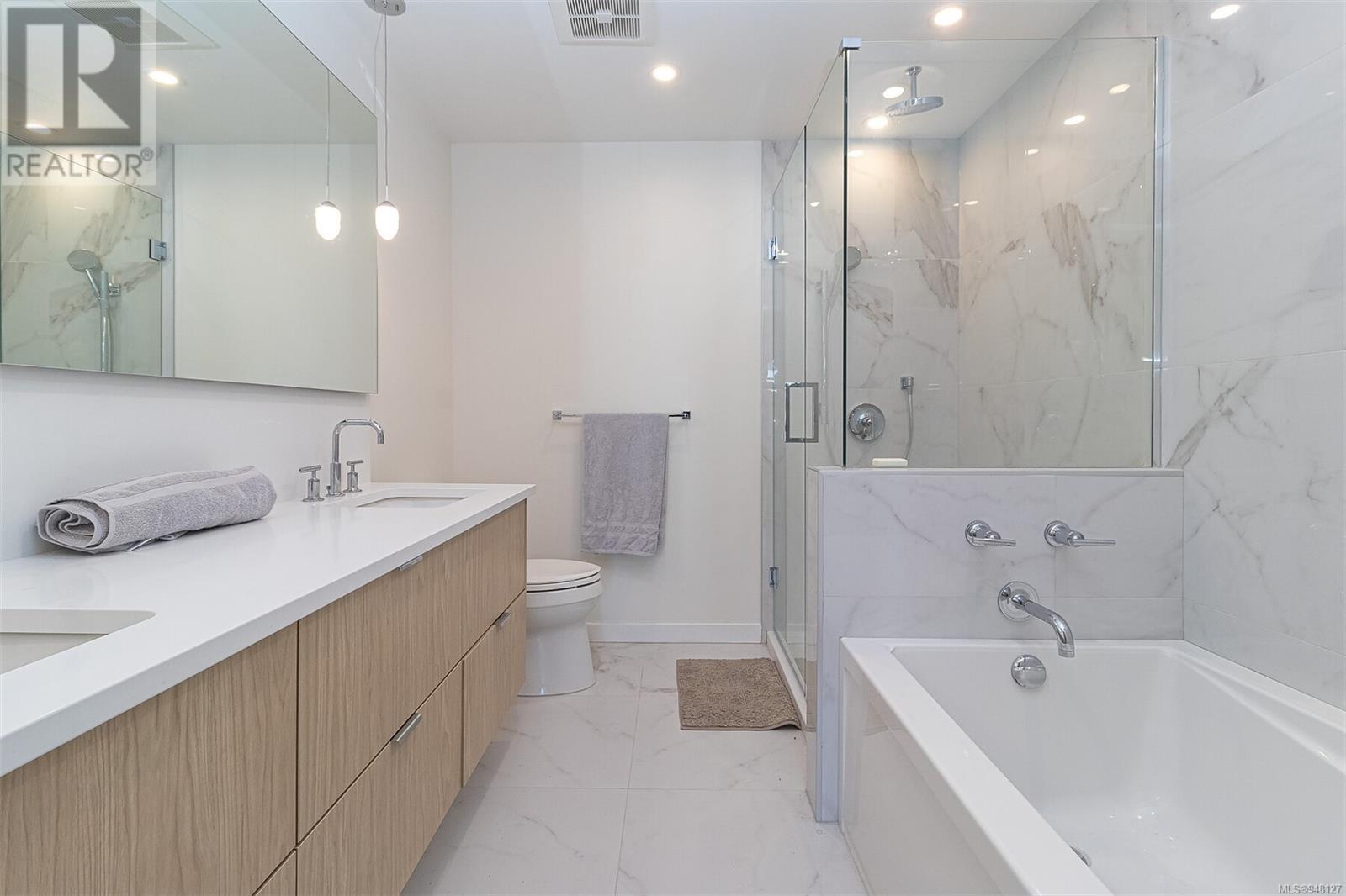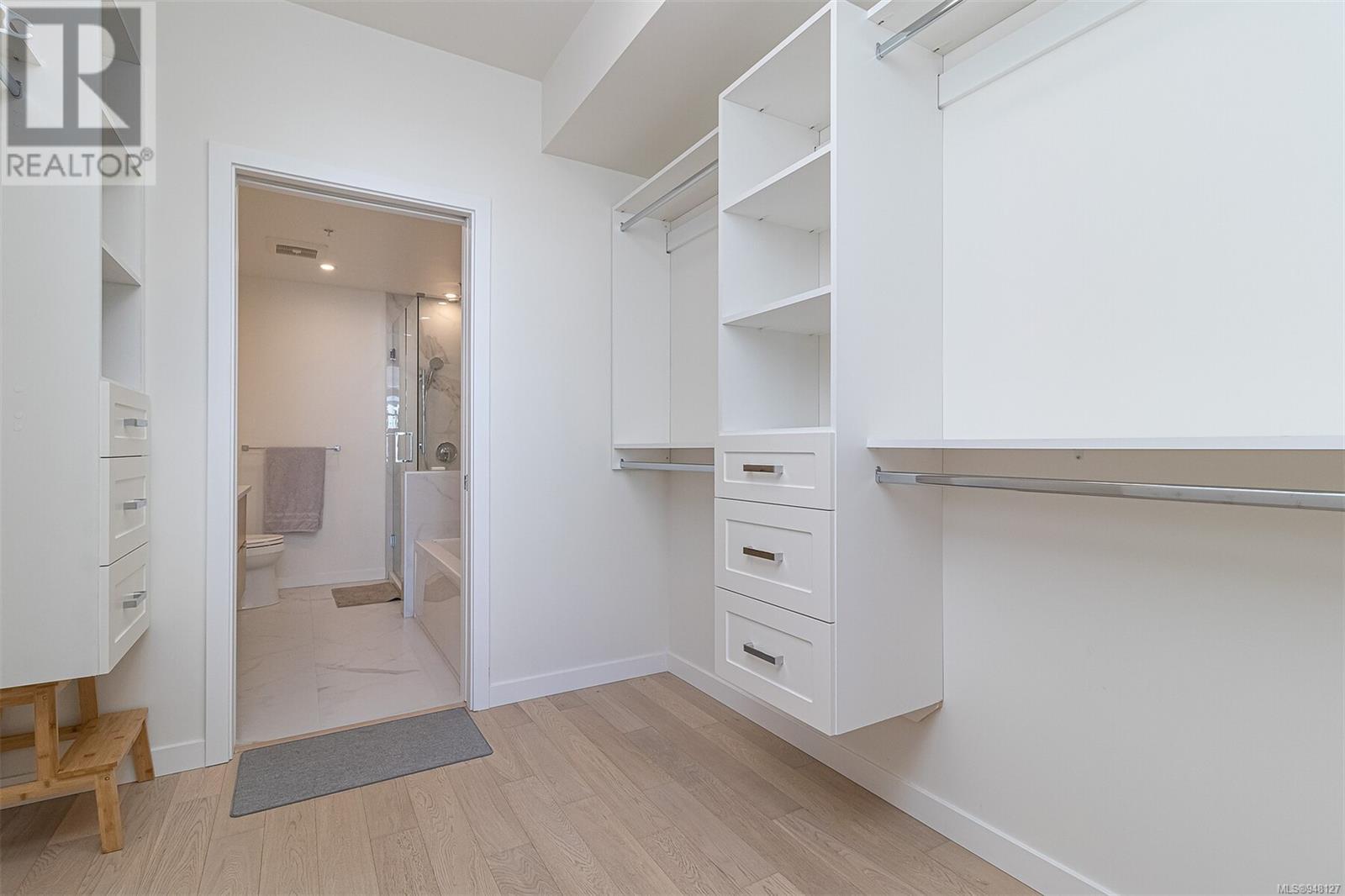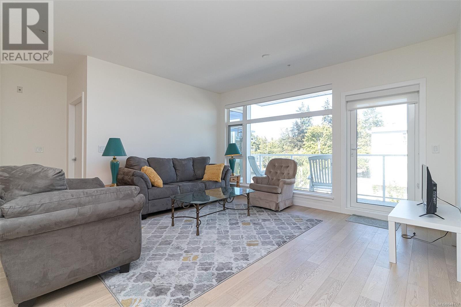 OCEAN VIEW UNIT! Welcome to this meticulous top floor condo in the sought after Haro Development! This 2 bed + Den/ 2 bath Northeast facing unit receives ample natural light throughout the day featuring an open concept floor plan and split bedroom design. The modern kitchen is complete with stainless steel appliances and contemporary finishes including quartz countertops and soft close cabinetry. The spacious primary features a 3-piece en-suite with walk-in shower. Completed in 2021, these units were built with attention and detail. This suite also includes in-unit laundry, a designated secure underground parking space, separate storage, is pet and family friendly, and allows rentals. Located in one of Victoria’s most prestigious neighborhoods, Cordova Bay is an active community where exercise is a part of daily life. Paths wind through tall trees and farmland. Just steps away from the beach and within walking distance to many amenities, golf courses and schools. Call today (id:22211)