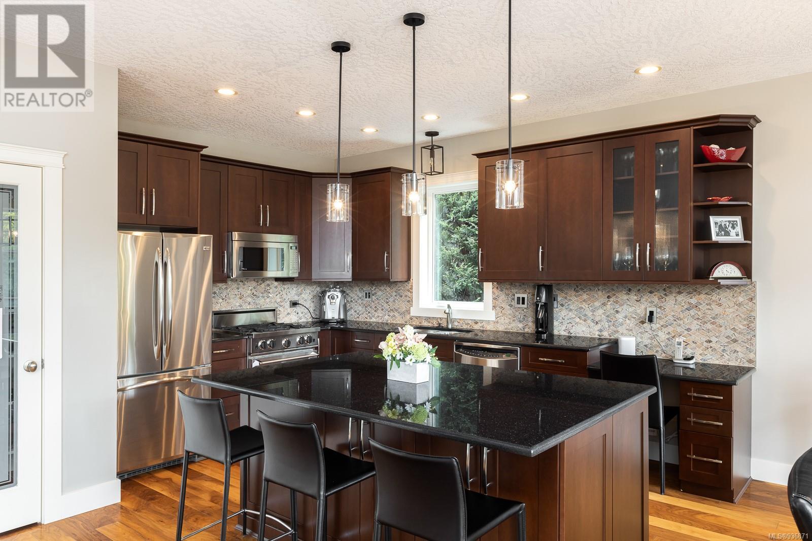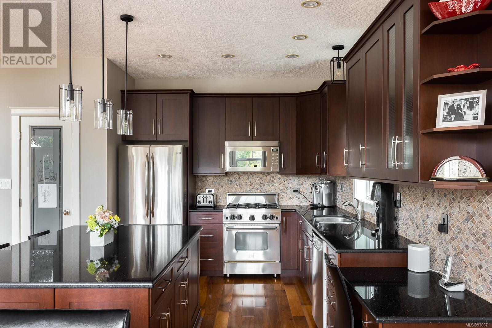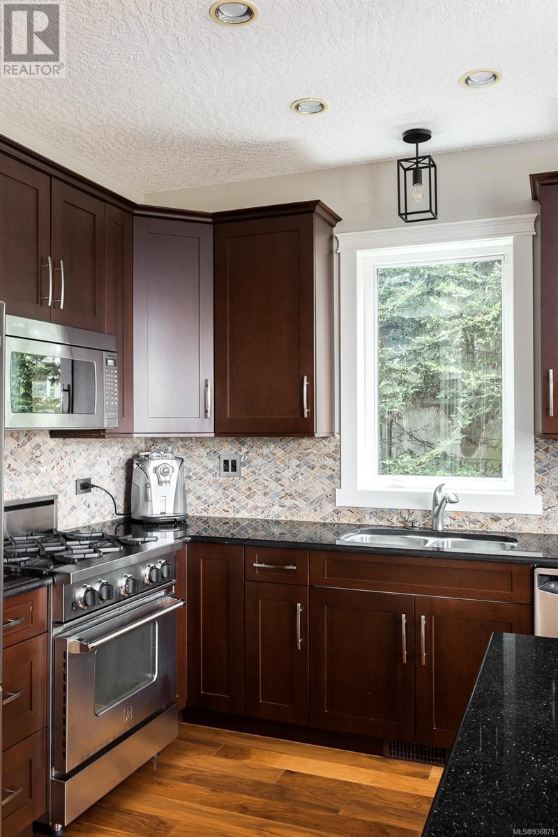 Situated on a quiet cul-de-sac in a great neighbourhood, this custom-built home's design & construction have carefully considered every imaginable detail. 17-foot vaulted ceilings in the living room create light & space as you move through the open concept living, dining room & kitchen. An oversized island, gas range, stainless steel appliances & ample space create a perfect spot for entertaining. Doors off of the dining & living room lead to the expansive outdoor balcony with views onto the private & meticulously landscaped west-facing backyard. The primary room on the main allows for seamless living. The lower level boasts a rec room, family room, 2 additional beds & a 3 pc bath. The upper level lends itself to 2 more beds, a 4pc bath & storage. Double car garage with Bonus workshop, close proximity to Elk/Beaver Lake, the beach, a short distance to downtown Victoria, the airport & ferries. If you are looking for a suite, the property is easily suitable with separate entrance. (id:22211)