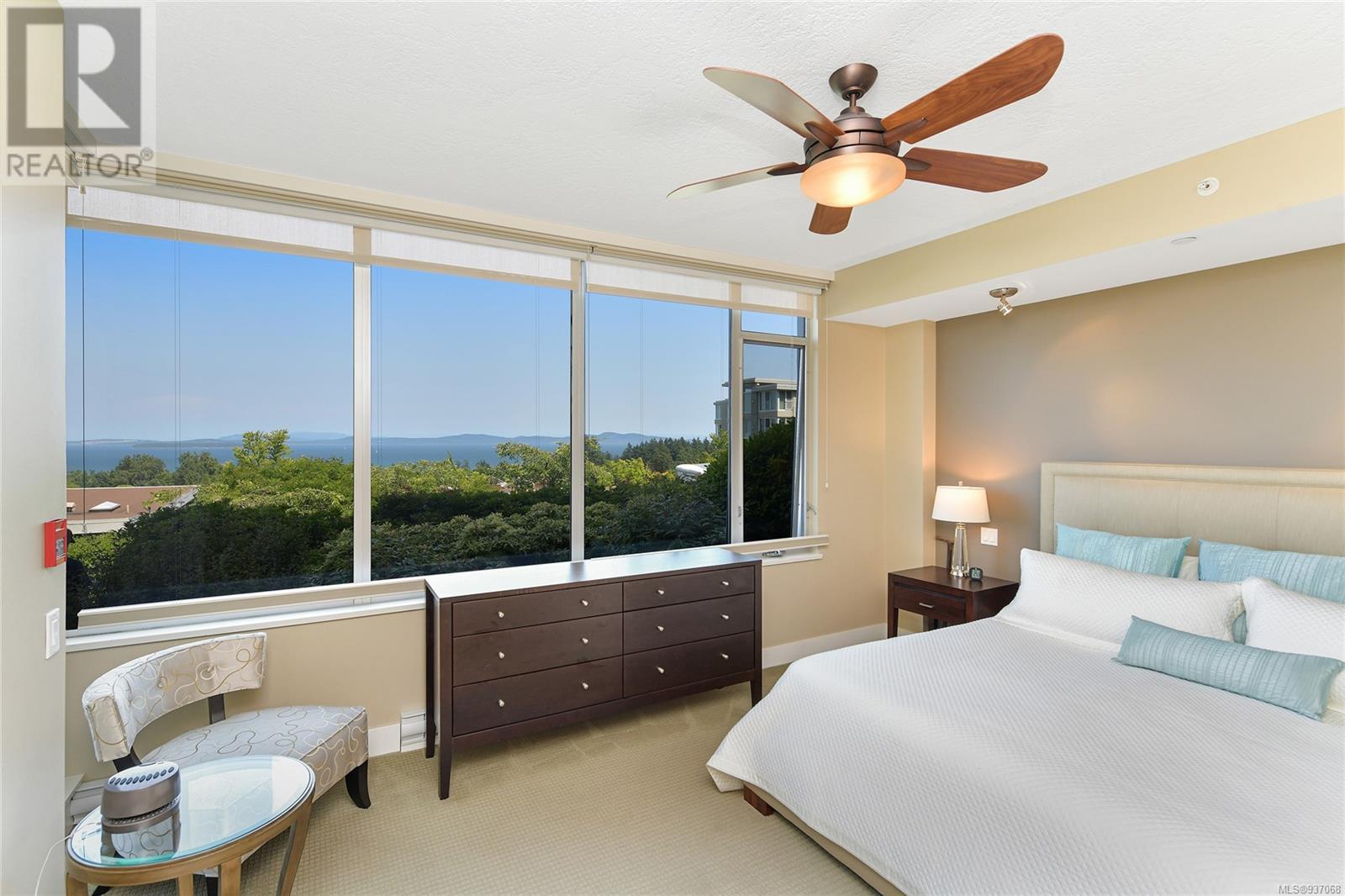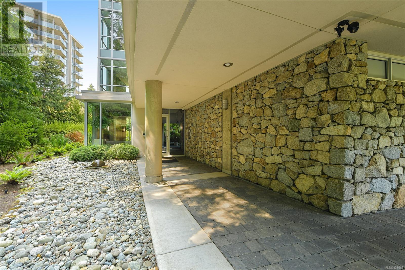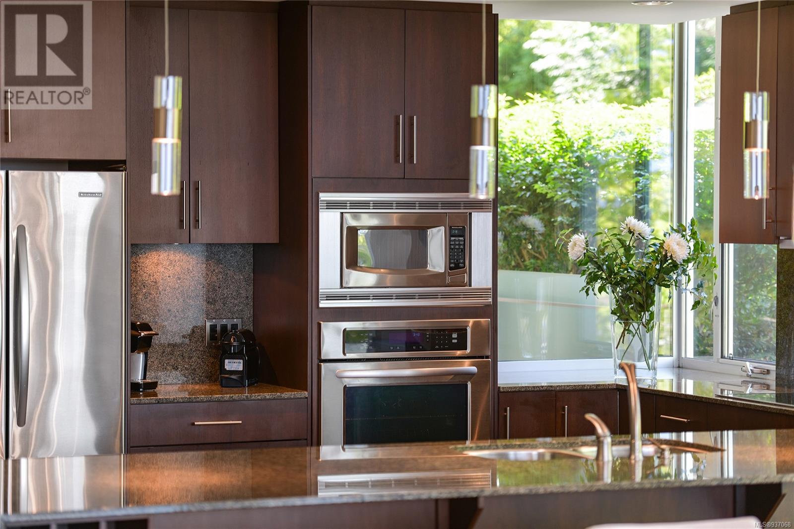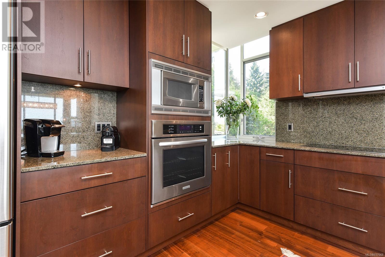 SAYWARD HILL offers Victoria's best VIEWS & LIFESTYLE, overlooking world-class golf at Cordova Bay, sandy beaches, walking/biking trails, shops at Mattick's Farm all nearby. This premiere, 2008 JAWL concrete/steel building is sought-after with its corner location, amazing natural light and walk-out view patios of 1100sf for true outdoor west coast living. An elegant home, meticulously maintained, fantastic layout with 1,773sf, feels more like a Townhouse with main level entry. Perfect for entertaining in the Chef's kitchen with KitchenAid s/steel appliances, 11' granite island, gas BBQ connection to dine alfresco capturing stunning views of Mt. Baker to the East or relax on the SW private treed view patio. The Primary retreat offers spa-styled ensuite, heated floors, soaker tub, over-sized walk-in closet leading to a separate laundry room. Media Room, Home Office/Pantry & separate Guest Bedroom/Bath make this an exceptional home. 2 secured parking stalls with EV Charging & storage too! (id:22211)