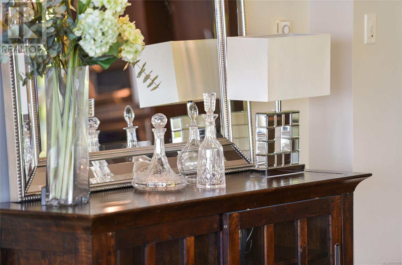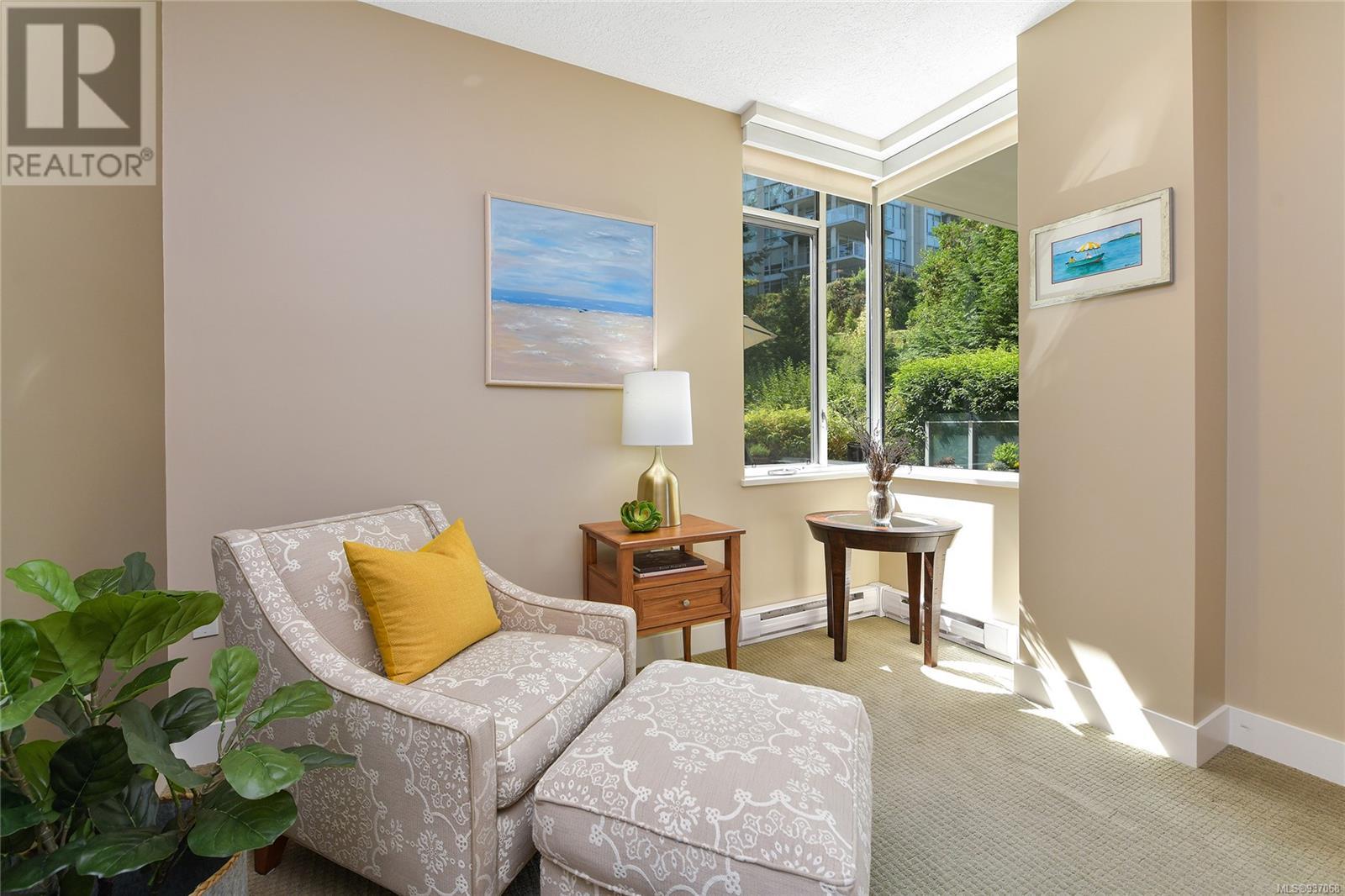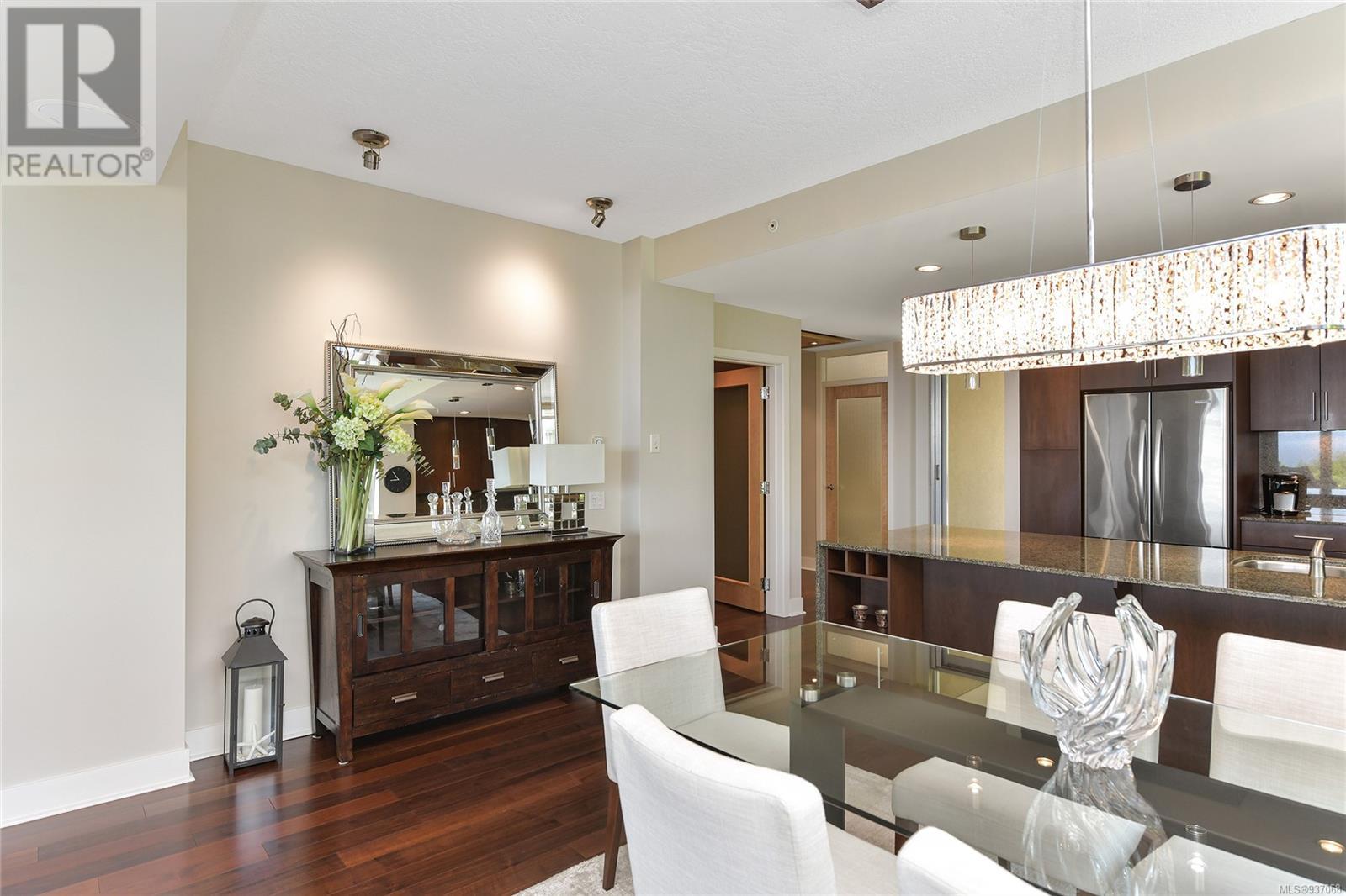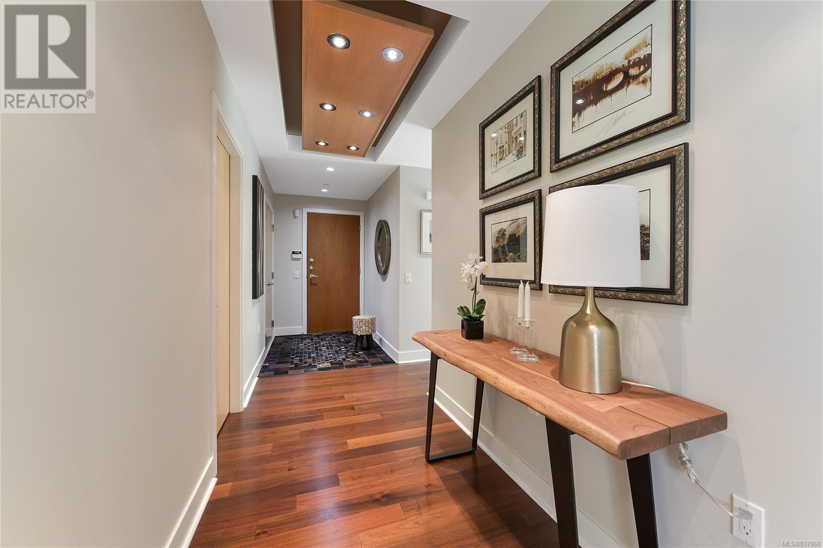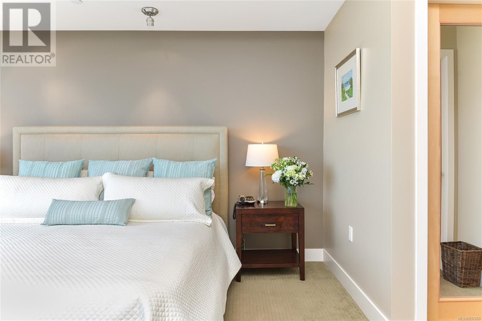 SAYWARD HILL offers Victoria's best VIEWS & LIFESTYLE, overlooking world-class golf at Cordova Bay, sandy beaches, walking/biking trails, shops at Mattick's Farm all nearby. This premiere, 2008 JAWL concrete/steel building is sought-after with its corner location, amazing natural light and walk-out view patios of 1100sf for true outdoor west coast living. An elegant home, meticulously maintained, fantastic layout with 1,773sf, feels more like a Townhouse with main level entry. Perfect for entertaining in the Chef's kitchen with KitchenAid s/steel appliances, 11' granite island, gas BBQ connection to dine alfresco capturing stunning views of Mt. Baker to the East or relax on the SW private treed view patio. The Primary retreat offers spa-styled ensuite, heated floors, soaker tub, over-sized walk-in closet leading to a separate laundry room. Media Room, Home Office/Pantry & separate Guest Bedroom/Bath make this an exceptional home. 2 secured parking stalls with EV Charging & storage too! (id:22211)