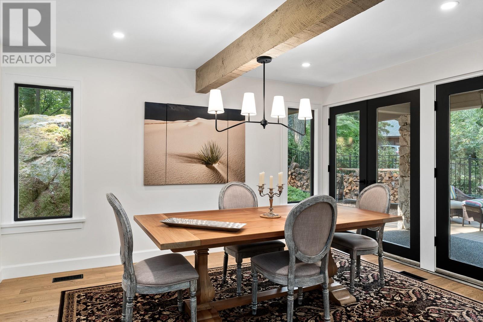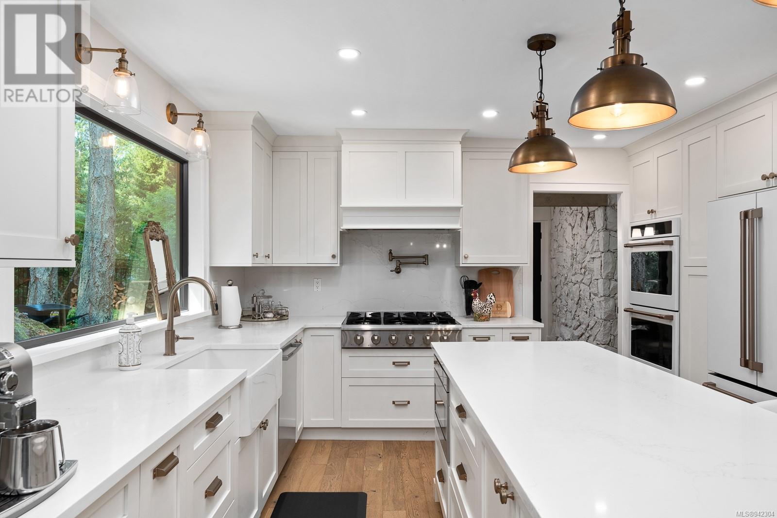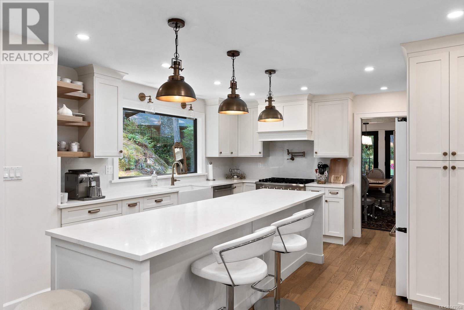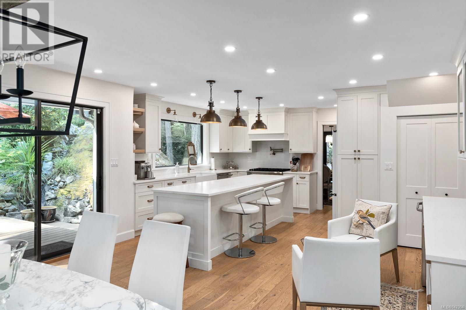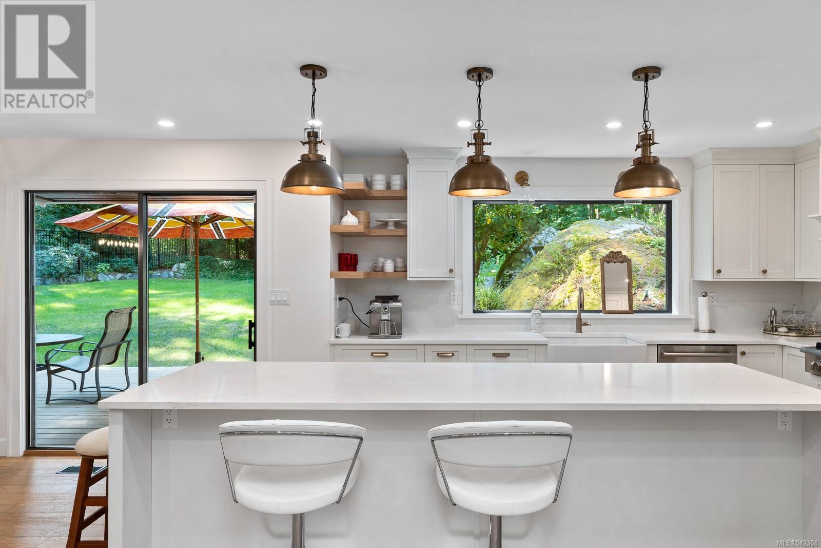 We proudly present this exquisite West Coast-style home spanning over 3,200 sq.ft. with five bedrooms and three bathrooms, gracefully situated on a private 1/3 acre lot within the highly desirable Broadmead community. Enter a world of sophistication as you step into this beautifully renovated home adorned with top-notch built-ins, timeless hardware, high-end appliances, and a thoughtfully landscaped yard. This residence is a testament to the dreams of any entertainer, offering formal spaces for elegant dining and social gatherings. Enjoy casual in-kitchen dining and relaxation in the adjacent family room for more laid-back moments. Transition seamlessly outdoors to the south-facing wrap-around deck that perfectly complements the sunny grass area, natural rock formations and lush foliage. Noteworthy features of this property include a spacious three-car garage and an elongated driveway, providing ample parking space. Embrace the convenience of numerous nearby trails, including the scenic Rithet's Bog along the Emily Carr Trail. Indulge in a range of amenities highlighted by exceptional dining options at the nearby Broadmead Shopping Center. (id:22211)