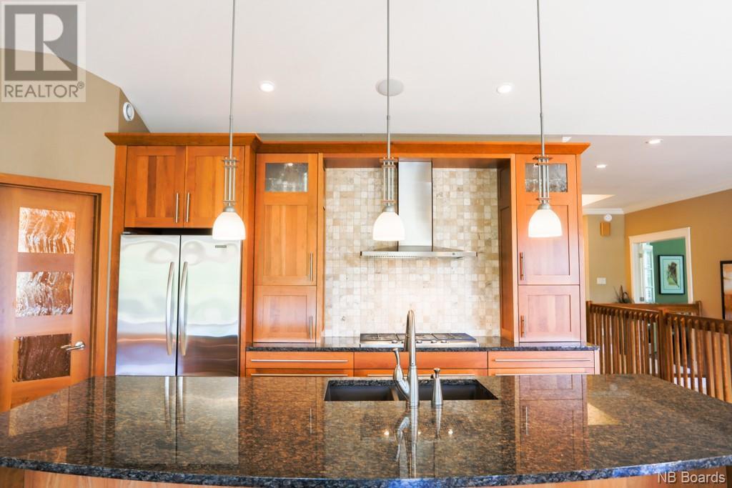 This area of Saint John has its reputation for luxury, privacy, and proximity thanks to the stunning water vistas that take centre stage residing here. Being 10 minutes from our Provinces major hospital, university and Uptown location, a large check mark. The uniqueness of this property is that its a perfect blend of being a refined home while having the water views like that of a cottage. Complete with a spot to have a boat moored, set against a backdrop of rocky outcrops. Step inside the tiled entrance and you notice the tray ceiling which is a common focal point throughout. The tile seamlessly translates to hardwood, where there is a wood staircase that leads to a finished walk-out basement. Staying on the main level, the kitchen is floor to ceiling wood cabinetry, granite countertops accented with cylinder style hardware. The highlight in this space is the walk-in chefs pantry with tiled backsplash and wall-to-wall cabinetry. The living rooms water view is emphasized with high Dutch ceilings and panoramic windows. Adding to this spaces ambiance is a cozy gas fireplace. With 3 bedrooms, 3 bathrooms, main floor laundry, walk-in master closet these may pale in comparison set against the stunning cedar sauna in the guest bathroom. On the lower level, the living room is anchored by a pellet stove, built-ins and enough room for a home gym. With its luxurious features and incomparable location, this is a rich opportunity of a dwelling. (id:22211)