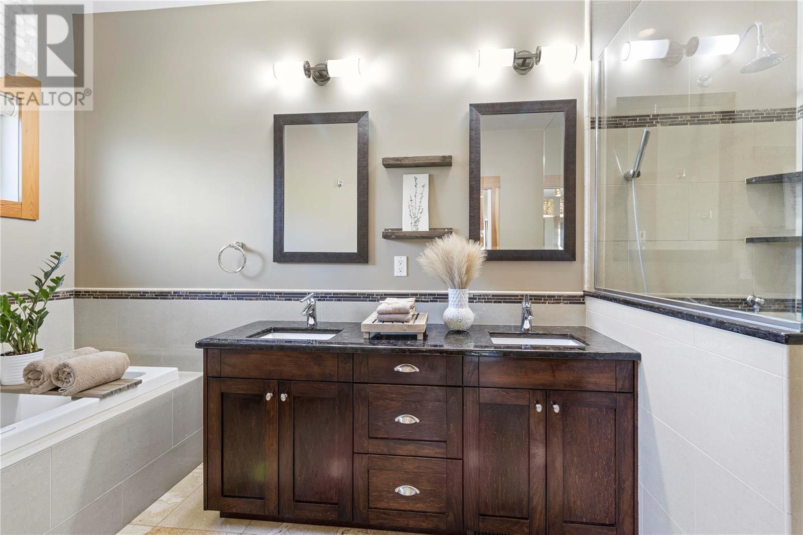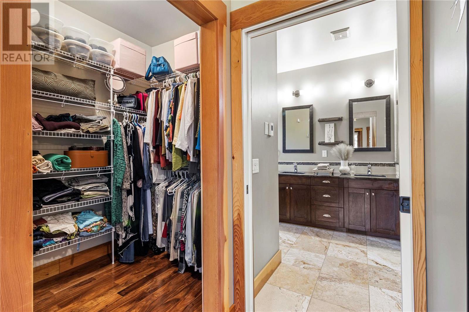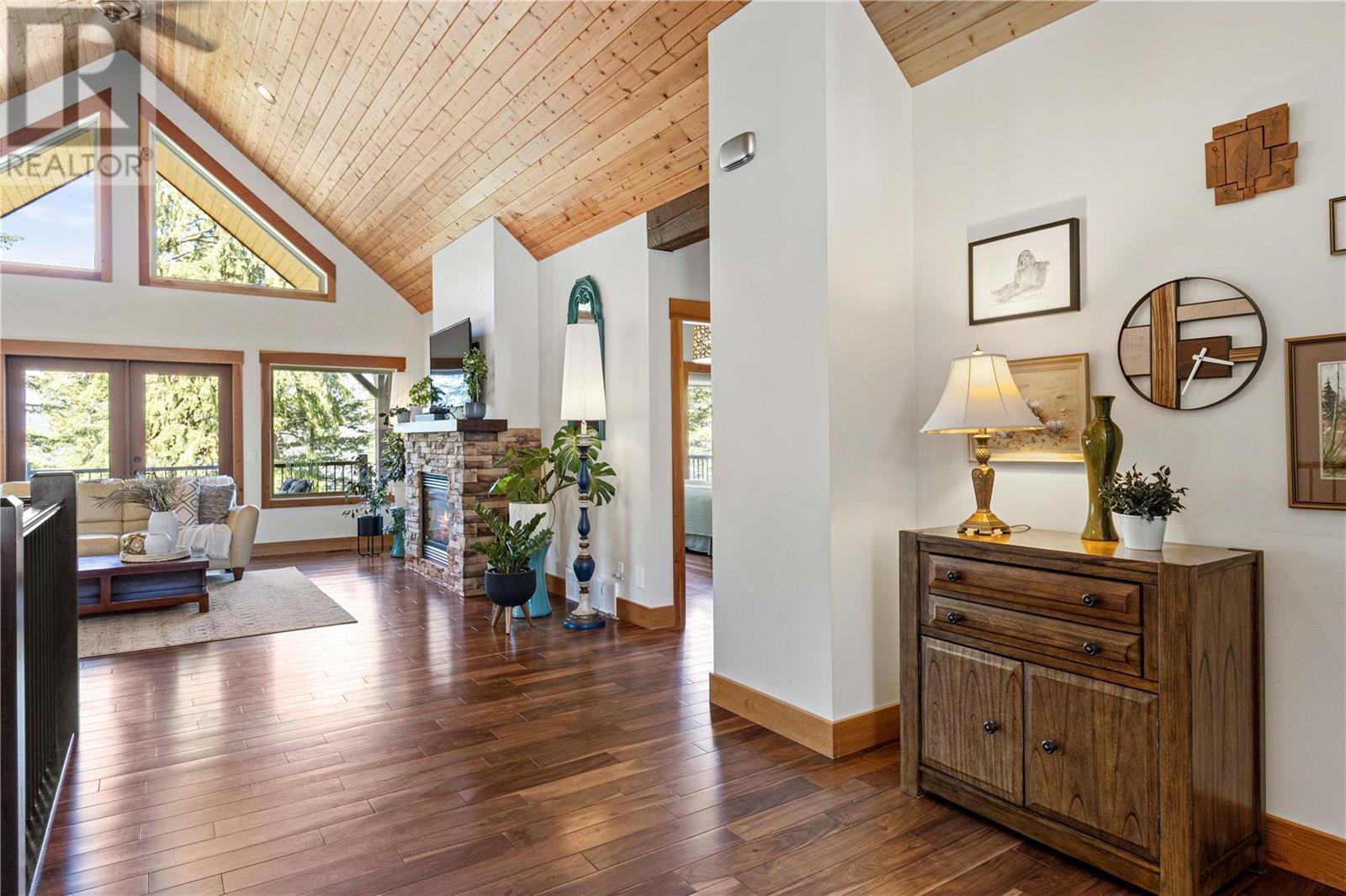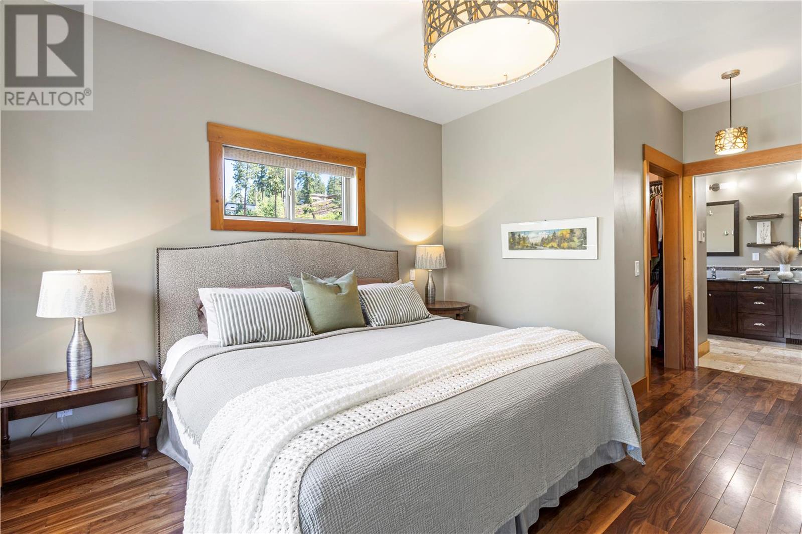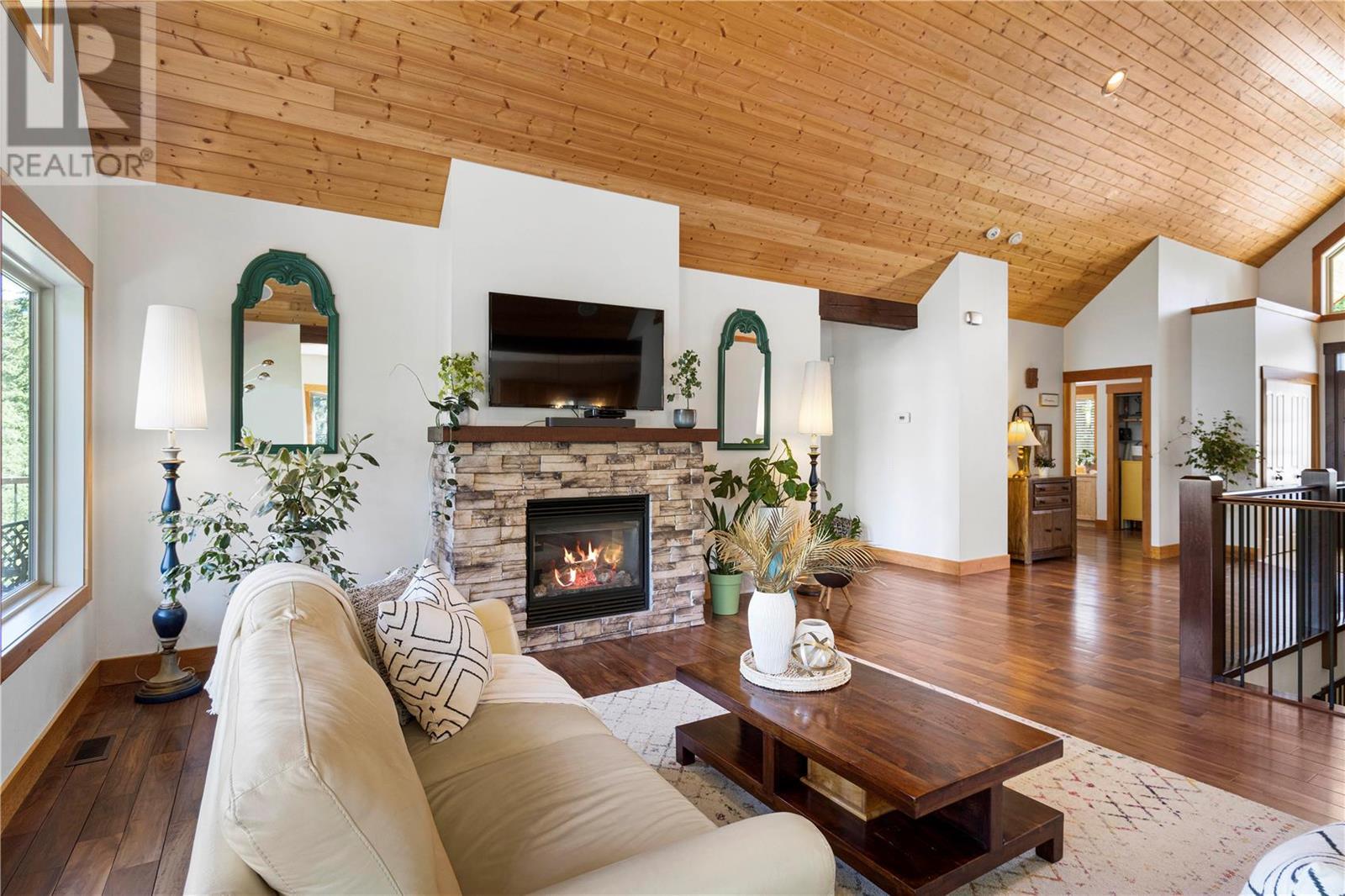 Custom craftsman 4bdrm/3bth built home on .65 of an acre with natural...beautiful lake views! Sought after & located in an area of prestigious homes in Upper Lakeshore. Lots of privacy...no immediate neighbors very desirable to many. You will be impressed as you step through the solid fir door. Fine finishing throughout w/post & beams accents, travertine & solid wood flooring. High ceilings, w/open concept living/dining area w/gas rock f/p. French doors leading to the living area out to the massive concrete deck, 2 cvrd deck areas. Beautiful kitchen w/granite countertops, gas range, pot filler & walk thru pantry. Gorgeous mstr bdrm w/full 5 pc ensuite w/in floor heating & walk in closet. Spacious bdrm used as an office area. Mud room & Laundry provide access to the oversized (28X28) garage w/220 plug. Down below is a lower garage & storage area. Full bsmt w/2 lrg bdrms, full bth, rustic bar, family area w/wood stove. Walk out to the cvrd patio area. Landscaped w/cedars, rockwall & irrigation. Lots of room for all your toys! Measurements done by Matterport. Pls see attached 3D Video. (id:22211)