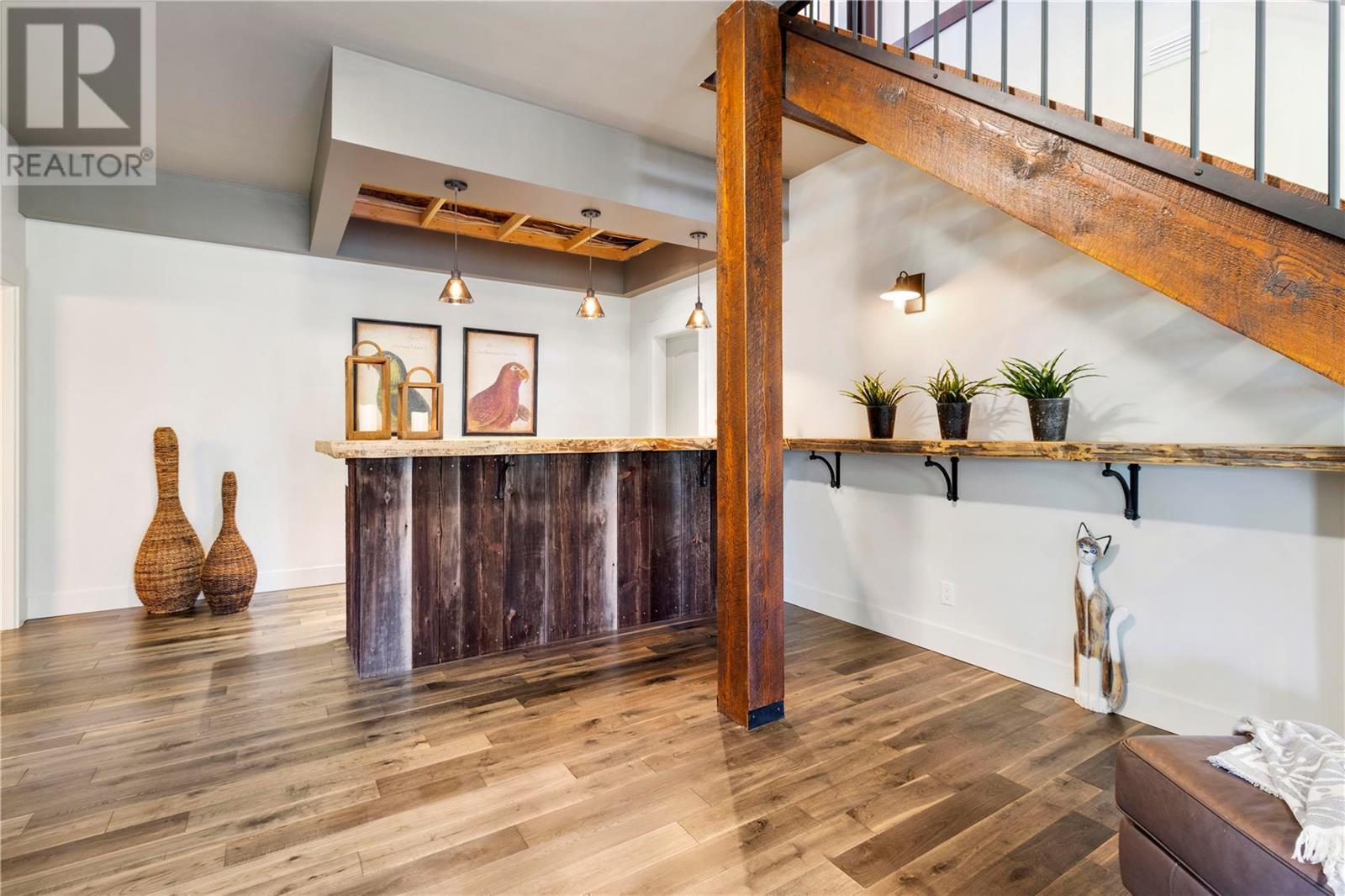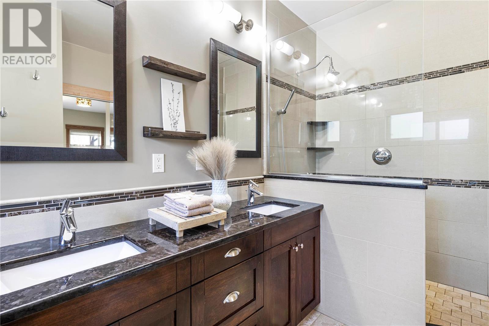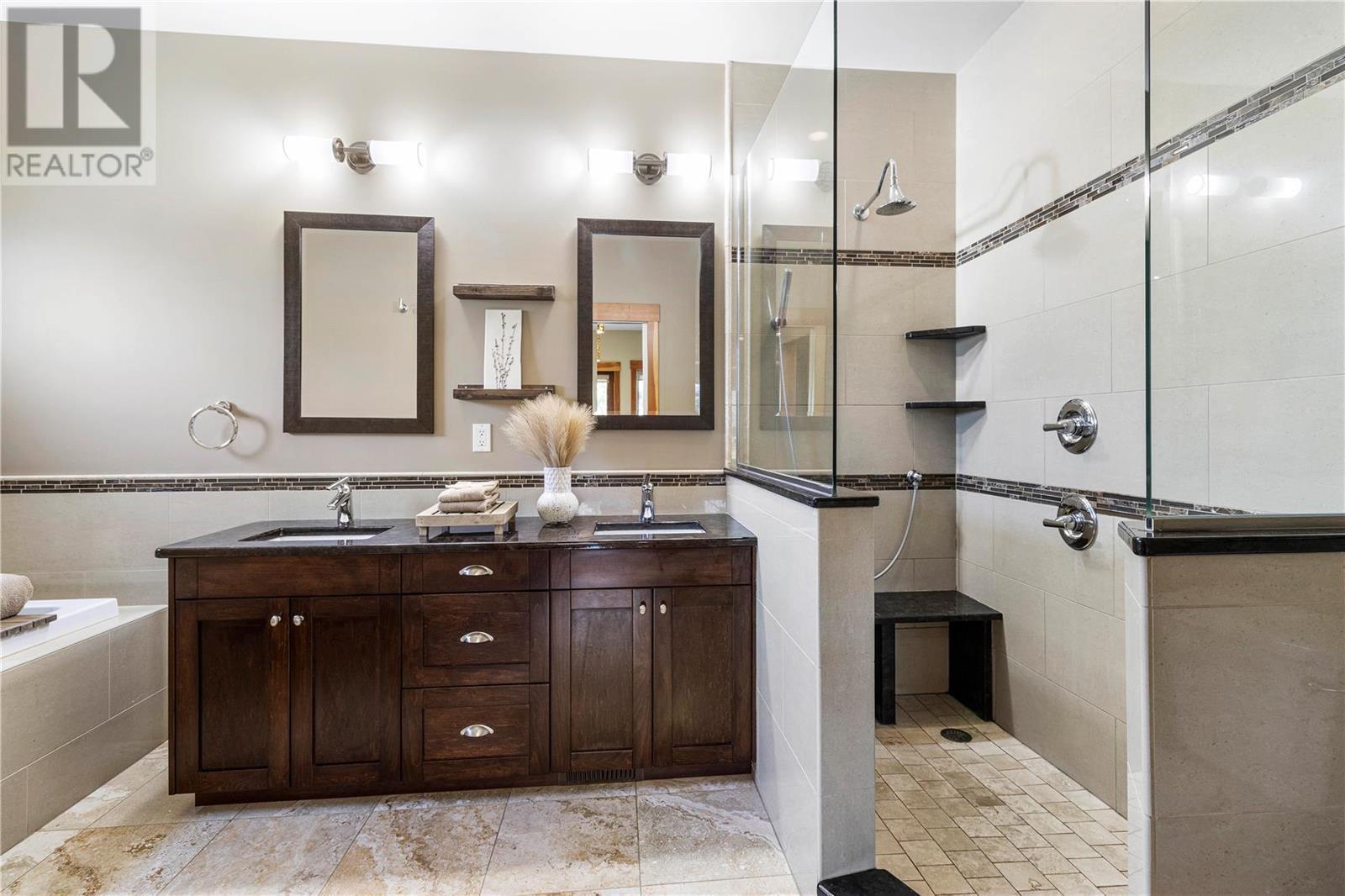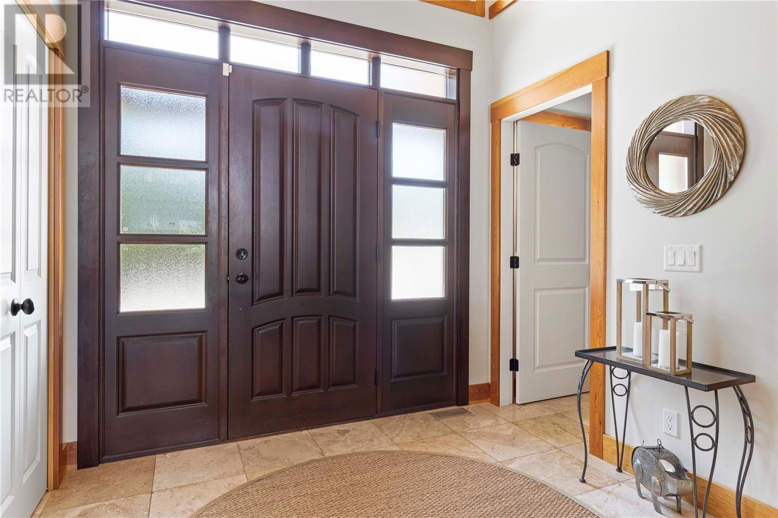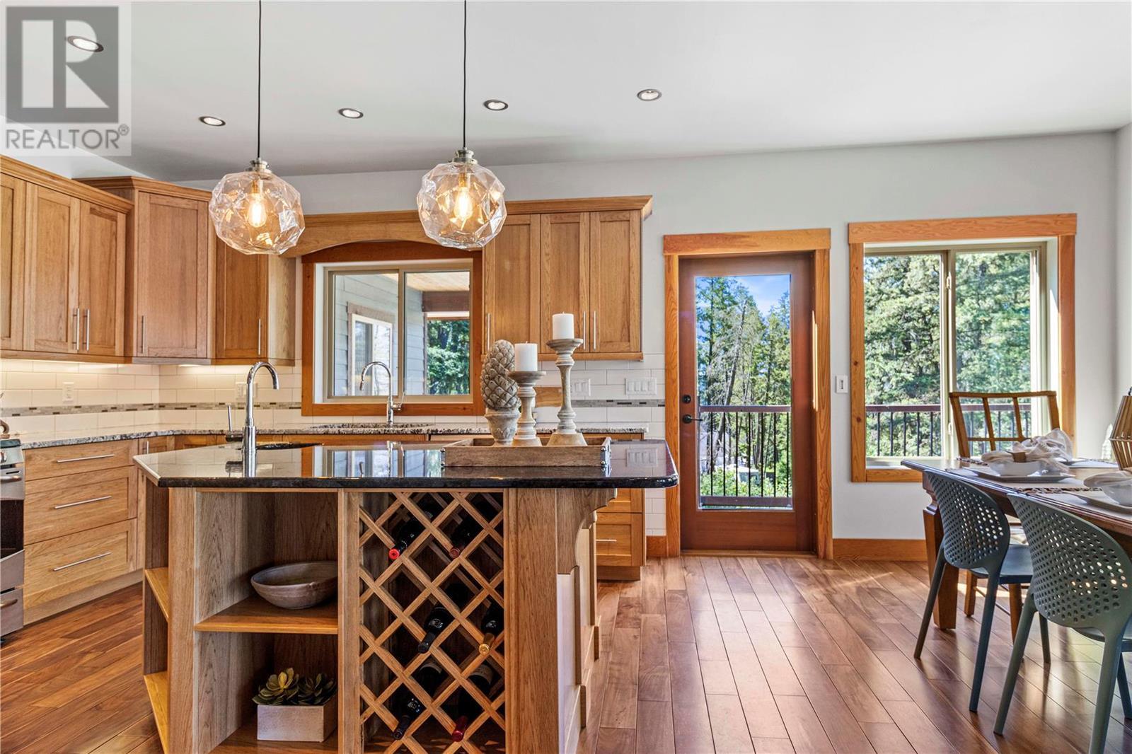 Custom craftsman 4bdrm/3bth built home on .65 of an acre with natural...beautiful lake views! Sought after & located in an area of prestigious homes in Upper Lakeshore. Lots of privacy...no immediate neighbors very desirable to many. You will be impressed as you step through the solid fir door. Fine finishing throughout w/post & beams accents, travertine & solid wood flooring. High ceilings, w/open concept living/dining area w/gas rock f/p. French doors leading to the living area out to the massive concrete deck, 2 cvrd deck areas. Beautiful kitchen w/granite countertops, gas range, pot filler & walk thru pantry. Gorgeous mstr bdrm w/full 5 pc ensuite w/in floor heating & walk in closet. Spacious bdrm used as an office area. Mud room & Laundry provide access to the oversized (28X28) garage w/220 plug. Down below is a lower garage & storage area. Full bsmt w/2 lrg bdrms, full bth, rustic bar, family area w/wood stove. Walk out to the cvrd patio area. Landscaped w/cedars, rockwall & irrigation. Lots of room for all your toys! Measurements done by Matterport. Pls see attached 3D Video. (id:22211)