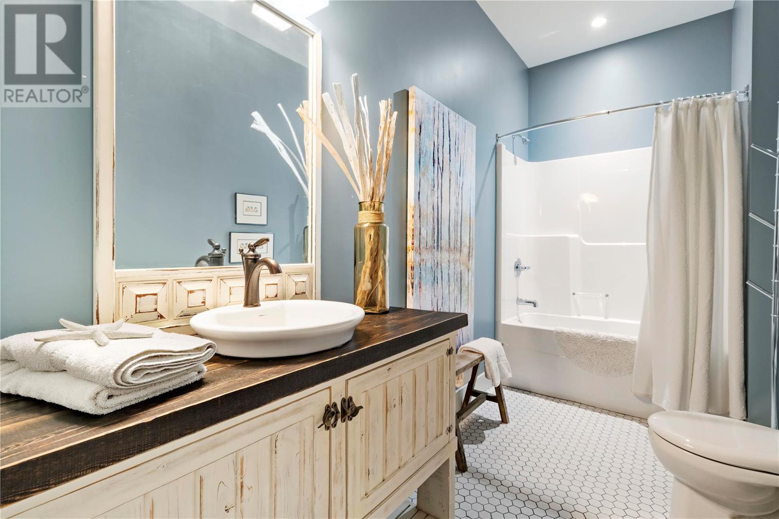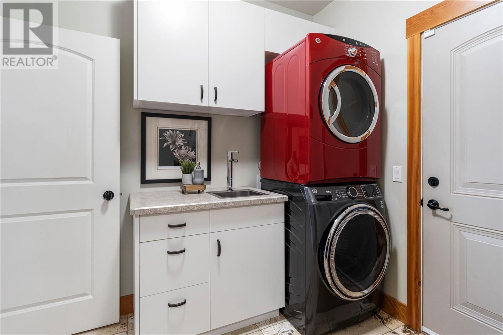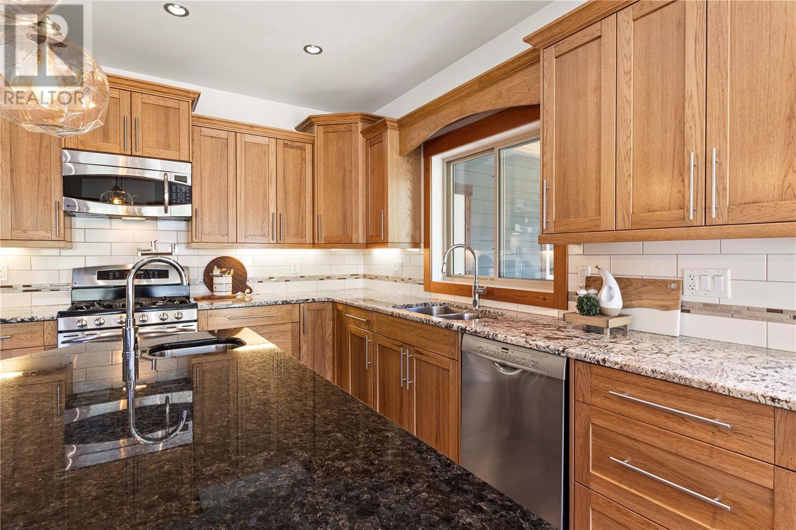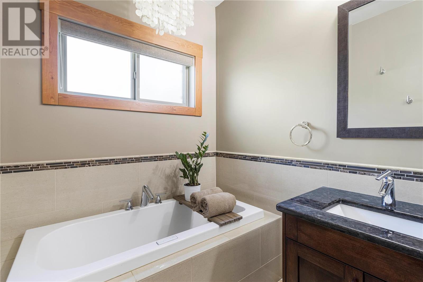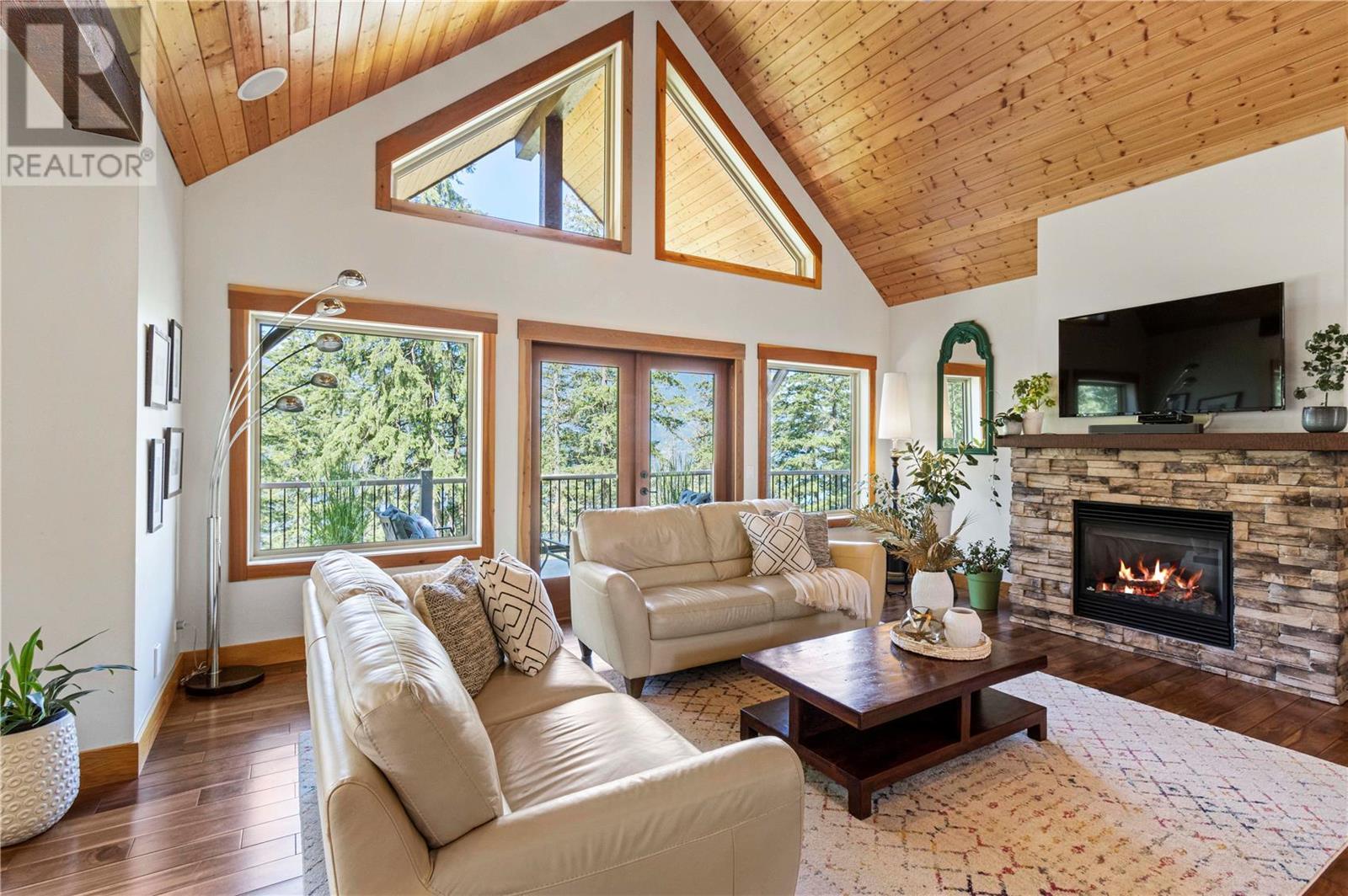 Custom craftsman 4bdrm/3bth built home on .65 of an acre with natural...beautiful lake views! Sought after & located in an area of prestigious homes in Upper Lakeshore. Lots of privacy...no immediate neighbors very desirable to many. You will be impressed as you step through the solid fir door. Fine finishing throughout w/post & beams accents, travertine & solid wood flooring. High ceilings, w/open concept living/dining area w/gas rock f/p. French doors leading to the living area out to the massive concrete deck, 2 cvrd deck areas. Beautiful kitchen w/granite countertops, gas range, pot filler & walk thru pantry. Gorgeous mstr bdrm w/full 5 pc ensuite w/in floor heating & walk in closet. Spacious bdrm used as an office area. Mud room & Laundry provide access to the oversized (28X28) garage w/220 plug. Down below is a lower garage & storage area. Full bsmt w/2 lrg bdrms, full bth, rustic bar, family area w/wood stove. Walk out to the cvrd patio area. Landscaped w/cedars, rockwall & irrigation. Lots of room for all your toys! Measurements done by Matterport. Pls see attached 3D Video. (id:22211)