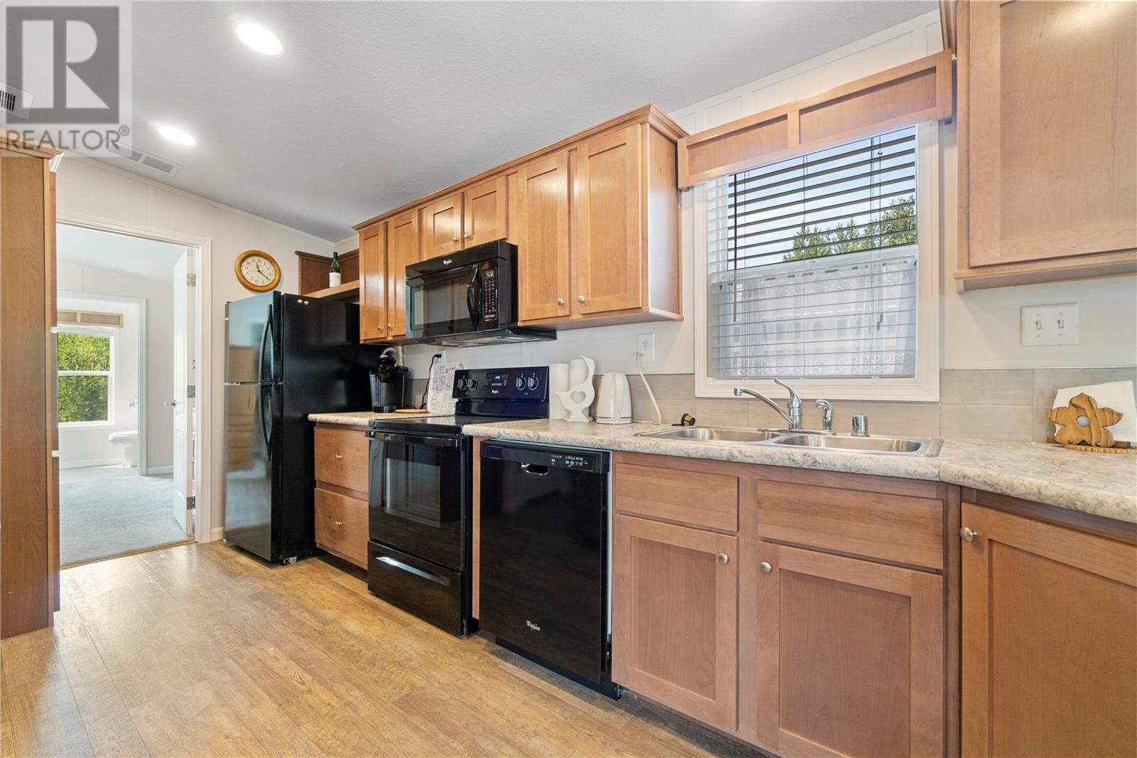 Well Maintained - Move in Ready and Like New. This 2 bed 2 bath home offers plenty of storage, spacious kitchen, separate laundry space, AC, Carport offers one covered space and has a lockable Storage Shed, there is room for a second and third vehicle as well. This home is bright and requires little maintenance inside and out - fenced back yard with zero grass and just a small bit in the front to maintain. Lakeland is a small park on its own local septic system with city water and garbage pick up. Seller has Shaw cable/internet installed (TELUS available). Pad Rent will be $560/month - Pets require Park Approval - No Rentals (id:22211)