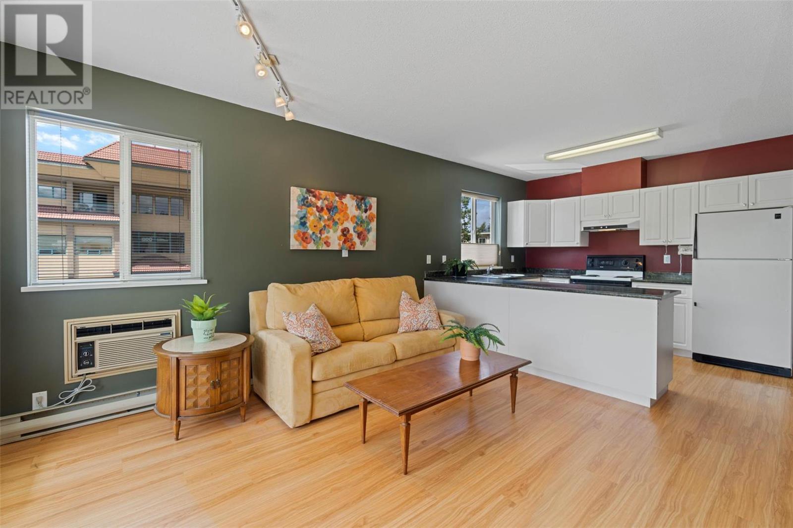 LOCATION LOCATION LOCATION - Rare opportunity to own an affordable condo in the downtown area right next to McGuire Lake. Featuring 2 bedrooms / 2 baths this unit is on the top floor of a 2 storey walk-up overlooking downtown Salmon Arm with great views of Mount Ida, Fly Hills and peek-a-boo views of Shuswap Lake. The spacious primary bedroom has an walkthrough closet area and ensuite and offers access to the balcony. The open kitchen/dining and livingroom area is bright with lots of light and great views with sliding doors to the covered balcony. Strata fee of $250.43 per month. Walk to town, restaurants, cafes and shopping. Close to walking trails, the foreshore trail and the wharf. Enjoy an evening glass of wine while looking out at the city lights. Quick possession possible. (id:22211)