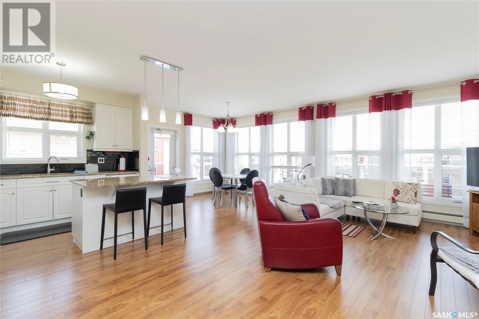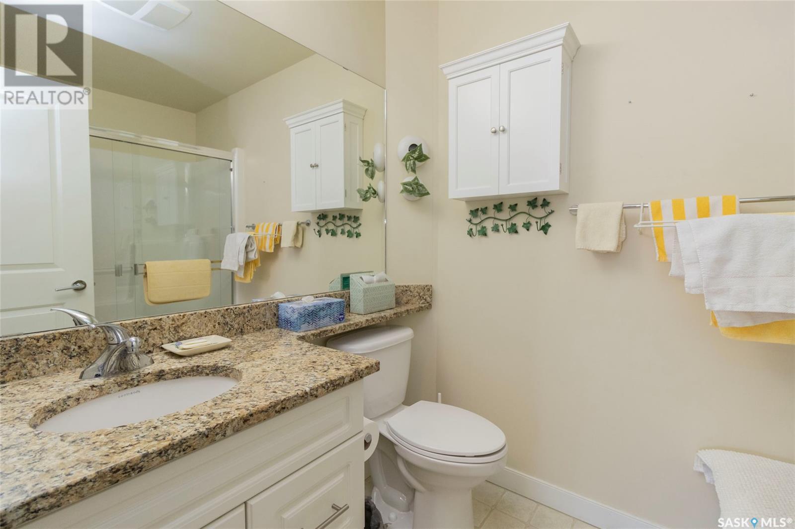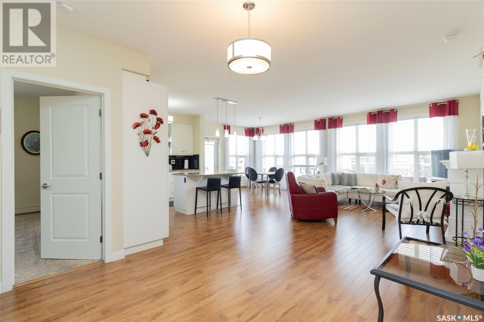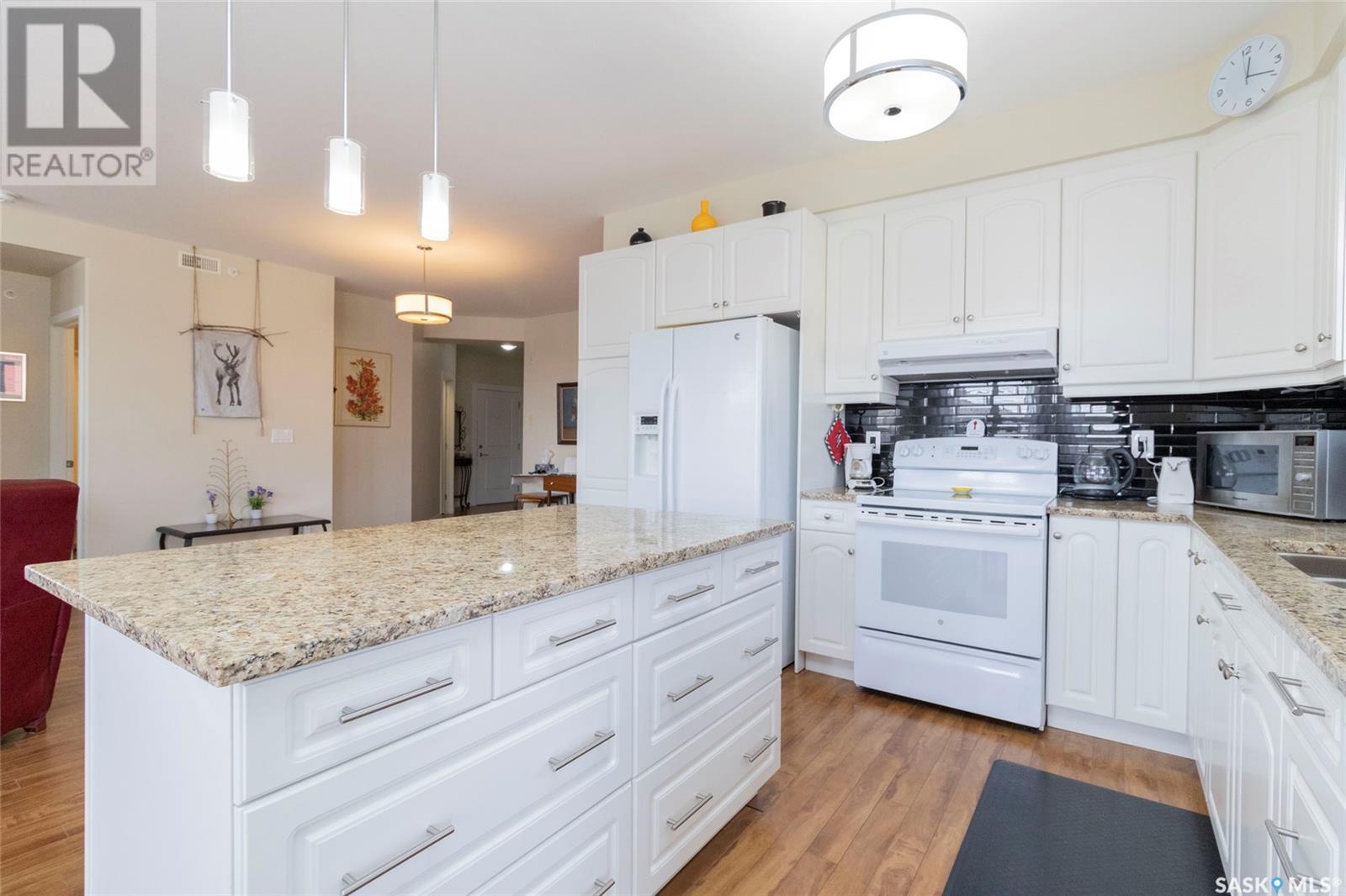 Welcome to this stunning top floor condo with 2 bedrooms, 2 bathrooms, and incredible features that will surely impress you. Situated in a desirable location, this condo offers a luxurious and comfortable living experience. Upon entering, you'll be greeted by an inviting and spacious layout, filled with natural light streaming through large windows. The open-concept design seamlessly connects the living, dining, and kitchen areas, creating an ideal space for entertaining or relaxing with family and friends. The kitchen is equipped with granite countertops, ample cabinet space, a beautiful backsplash and a convenient island for casual dining or preparing delicious meals. The two bedrooms are generously sized and offer a peaceful retreat after a long day. The master bedroom boasts an en-suite bathroom, providing privacy and convenience. The second bathroom is easily accessible from the main living area, making it convenient for guests. One of the highlights of this condo is the north east, top floor location, ensuring that your suite is quiet and private. Step outside onto your L-shaped private balcony and enjoy a morning coffee or evening cocktail. Additionally, this condo comes with two underground parking stalls with storage, providing secure and convenient parking options for you and your guests. As an added bonus, there is also one surface parking stall for your convenience. The building amenities offer a fitness center, and a guest suite available for rental. Located in a highly sought-after area, this condo is just minutes away from shopping centers, restaurants, parks, and major transportation routes, making it a perfect choice for those seeking a blend of convenience and serenity. Don't miss out on the opportunity to make this top floor condo your new home. Contact your Realtor® today to schedule a private viewing and experience the beauty and elegance this property has to offer. (id:22211)