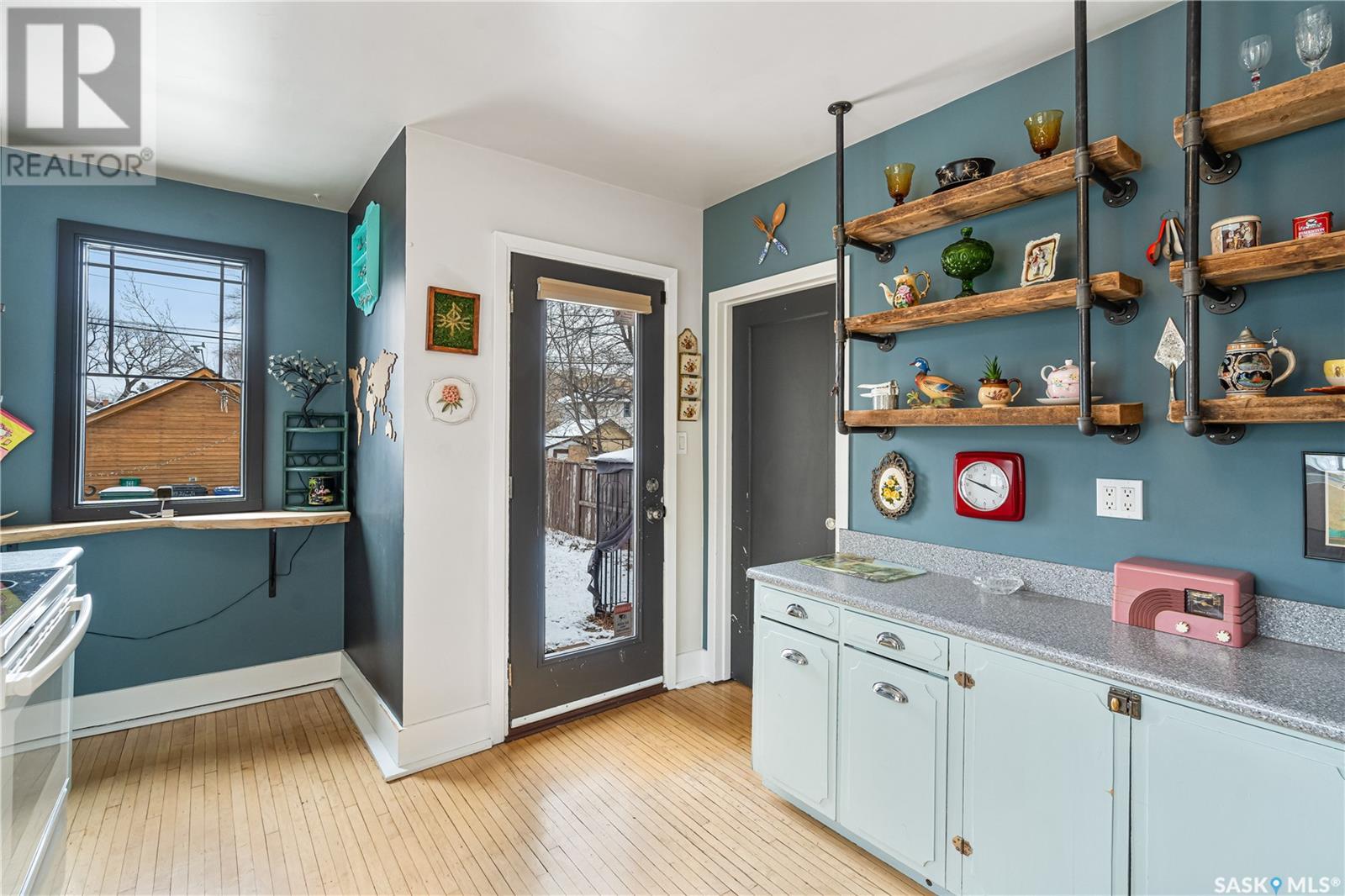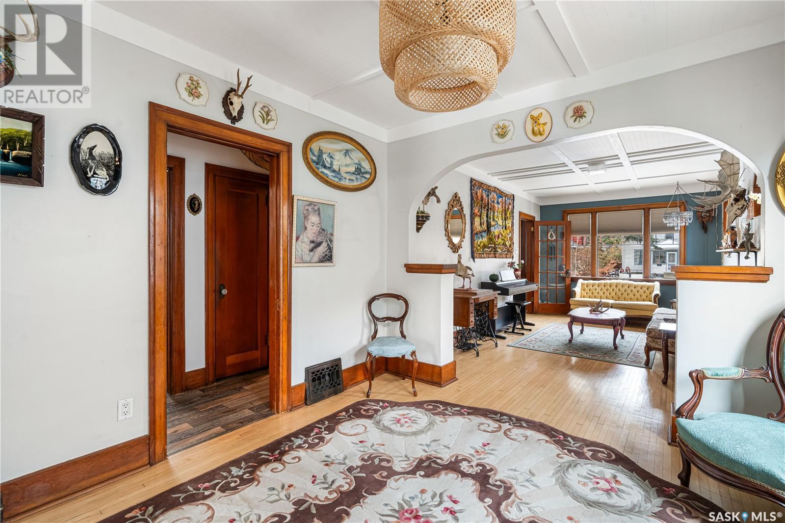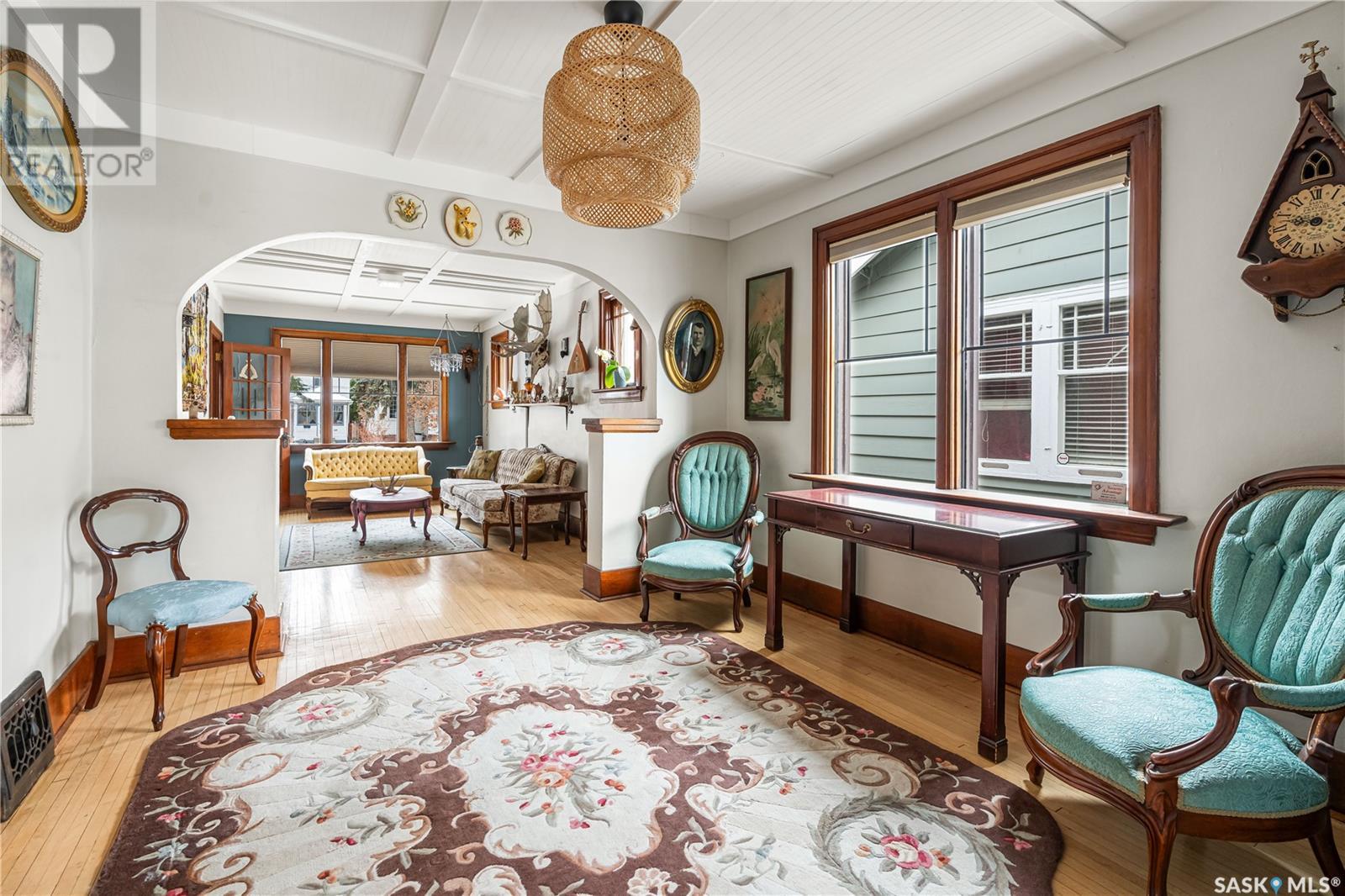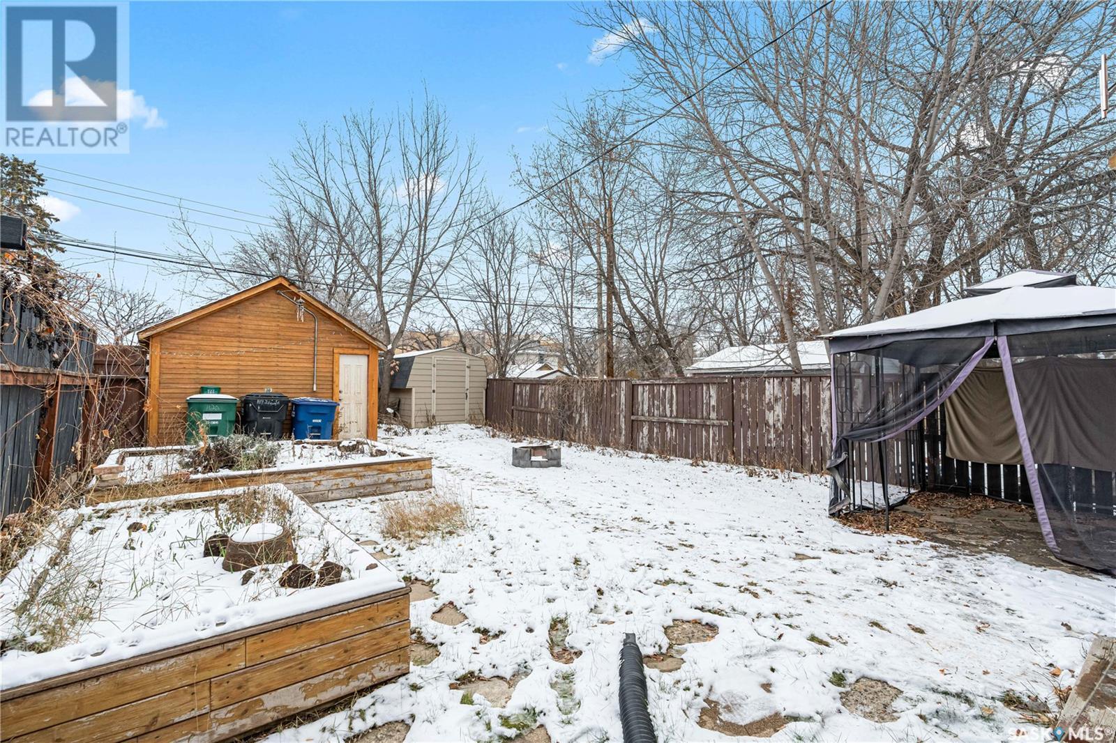 Character and style at an entry level price point! Welcome to 1120 Avenue B North in charming Caswell Hill. This well maintained and nicely updated character home is bungalow style with 2 bedrooms and 1 bathroom. As you pull up to the house you’ll love the neat and tidy exterior that’s preserved the original look of the home. As you step inside you’re welcomed into a large sunny living room dripping in charm featuring original wood flooring and glass door knobs that run throughout, gorgeous original mouldings, built in book cases, original wood window frames and stunning ceiling detail. The living area leads right into the spacious dining area giving the space that great open feel while updated lighting and more rich original finishes maintain a cozy and intimate vibe. You’ll love the stylish updates in the kitchen with plenty of cabinetry, tons of room to work, open shelving and live edge eating bar. Both bedrooms are on the main floor and the primary has tons of space with ample natural lighting and closet space. Rounding out the main floor is the remodelled 4 piece bathroom where you’ll find updated vanity, flooring, and a nice sized tub. The basement is where you’ll find the laundry and storage areas and a cold room, rough in for second bathroom and plenty of space for continued development. Outside in the fully fenced yard there’s well lit garden space, gazebo and room for pets or kids to play as well as the single detached garage with alley access. More notable extras and upgrades include central air, newer windows and exterior doors and all of the appliances are included in the sale! Located steps from transit, Sask Polytechnic, grocery stores and all major amenities and a short walk or drive downtown. Don’t miss this fantastic opportunity, call or text your favourite Saskatoon real estate agent today to arrange your viewing and don’t forget to check out the video! (id:22211)