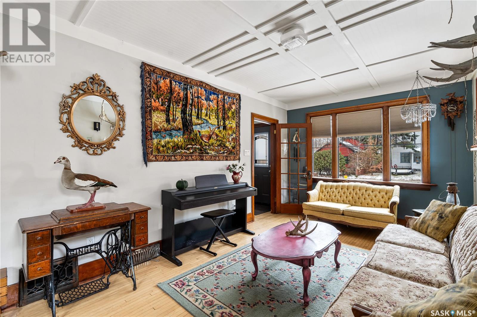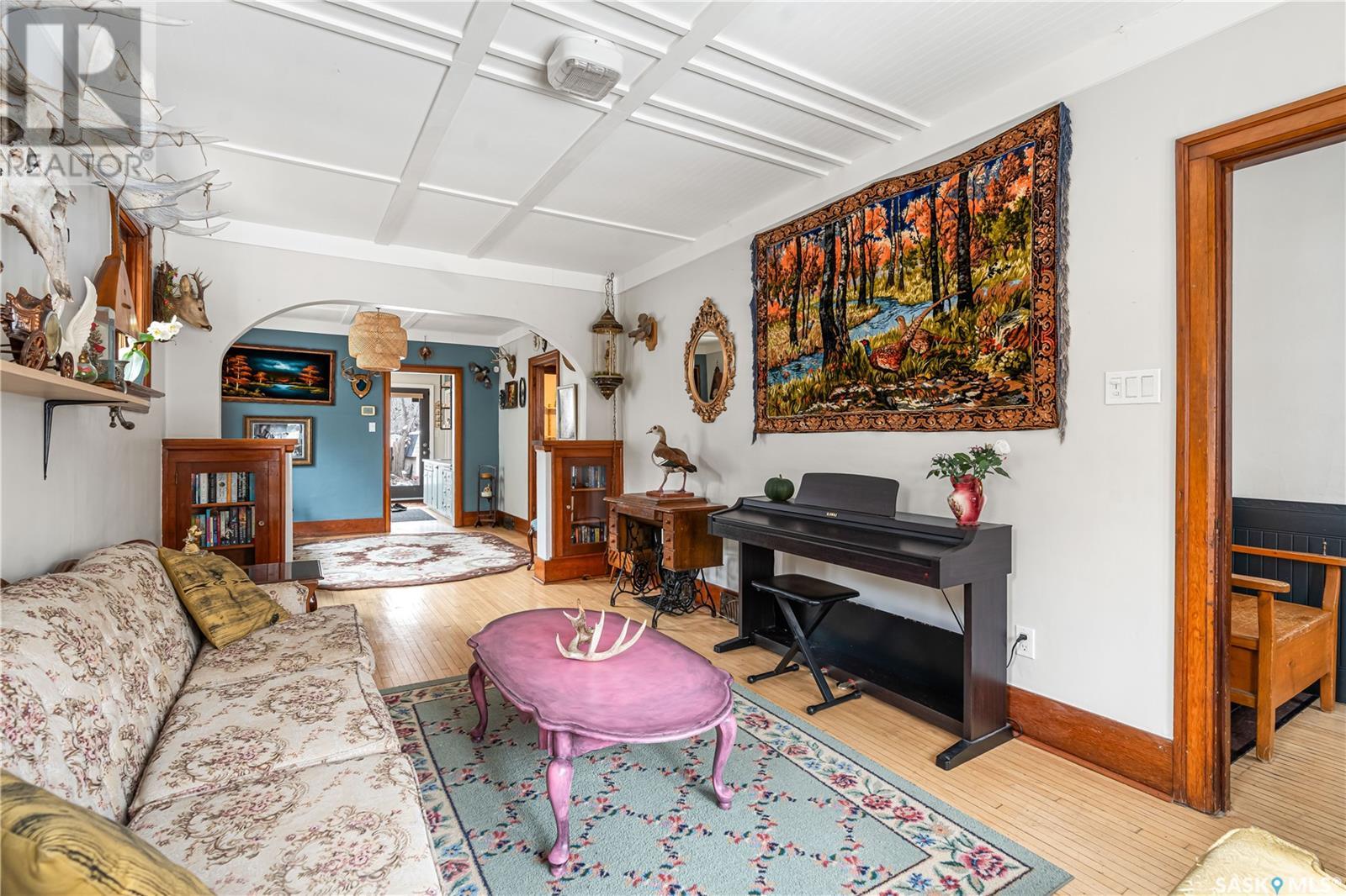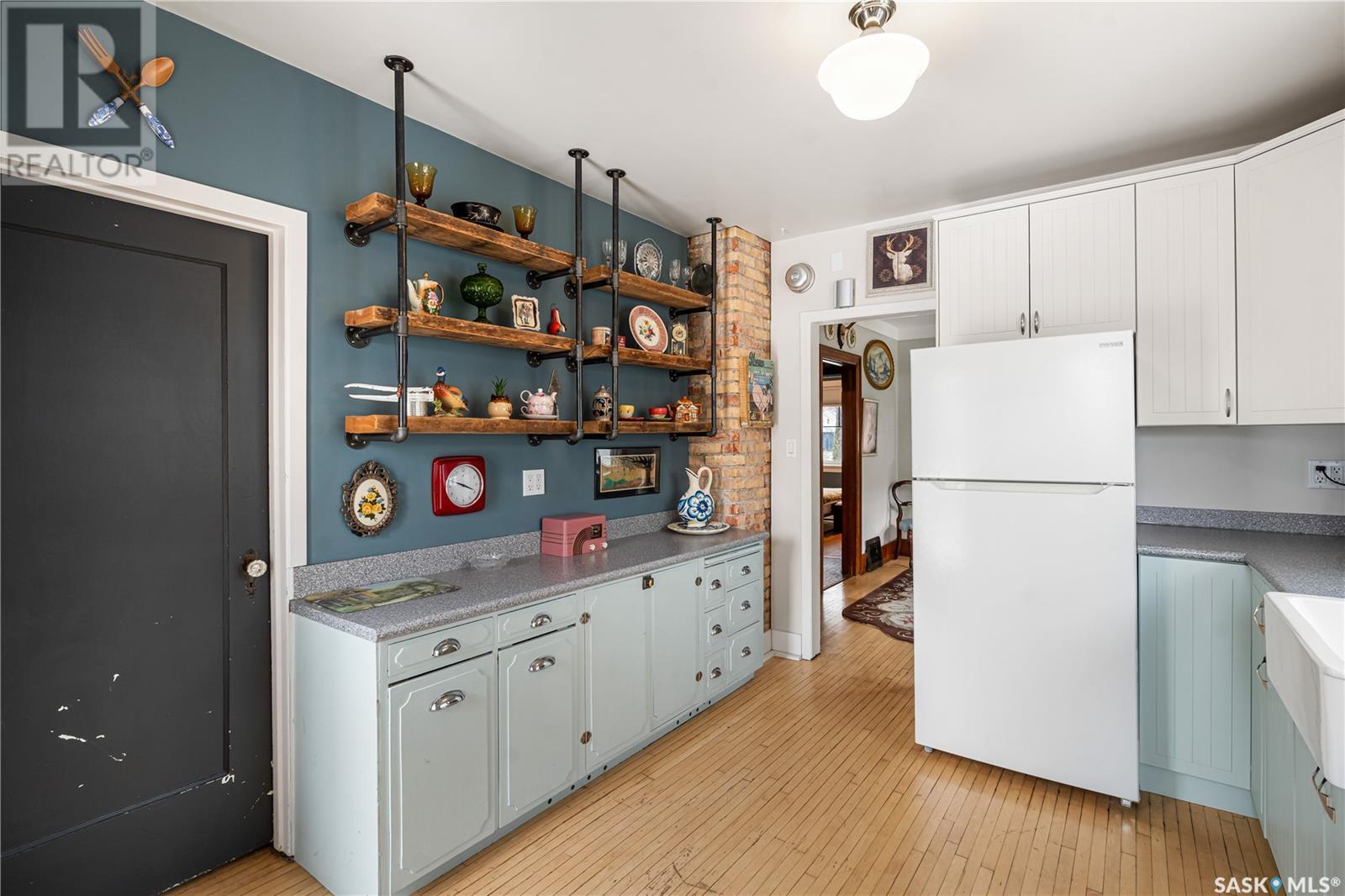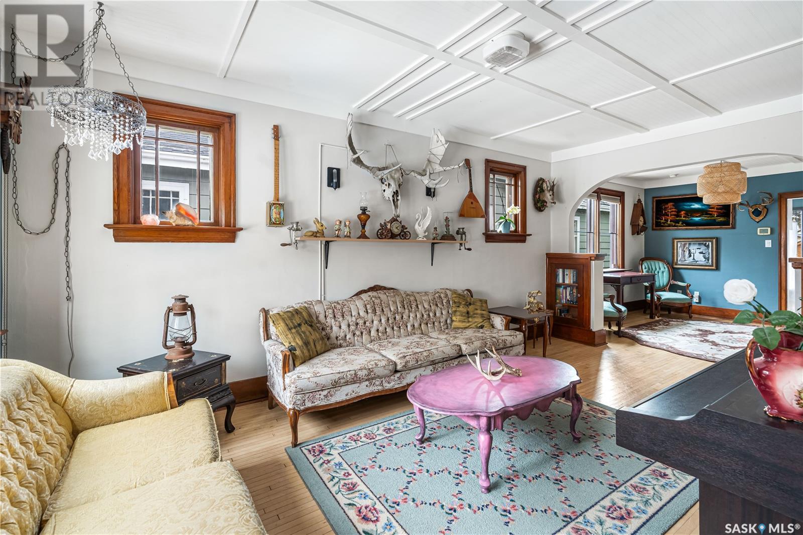 Character and style at an entry level price point! Welcome to 1120 Avenue B North in charming Caswell Hill. This well maintained and nicely updated character home is bungalow style with 2 bedrooms and 1 bathroom. As you pull up to the house you’ll love the neat and tidy exterior that’s preserved the original look of the home. As you step inside you’re welcomed into a large sunny living room dripping in charm featuring original wood flooring and glass door knobs that run throughout, gorgeous original mouldings, built in book cases, original wood window frames and stunning ceiling detail. The living area leads right into the spacious dining area giving the space that great open feel while updated lighting and more rich original finishes maintain a cozy and intimate vibe. You’ll love the stylish updates in the kitchen with plenty of cabinetry, tons of room to work, open shelving and live edge eating bar. Both bedrooms are on the main floor and the primary has tons of space with ample natural lighting and closet space. Rounding out the main floor is the remodelled 4 piece bathroom where you’ll find updated vanity, flooring, and a nice sized tub. The basement is where you’ll find the laundry and storage areas and a cold room, rough in for second bathroom and plenty of space for continued development. Outside in the fully fenced yard there’s well lit garden space, gazebo and room for pets or kids to play as well as the single detached garage with alley access. More notable extras and upgrades include central air, newer windows and exterior doors and all of the appliances are included in the sale! Located steps from transit, Sask Polytechnic, grocery stores and all major amenities and a short walk or drive downtown. Don’t miss this fantastic opportunity, call or text your favourite Saskatoon real estate agent today to arrange your viewing and don’t forget to check out the video! (id:22211)