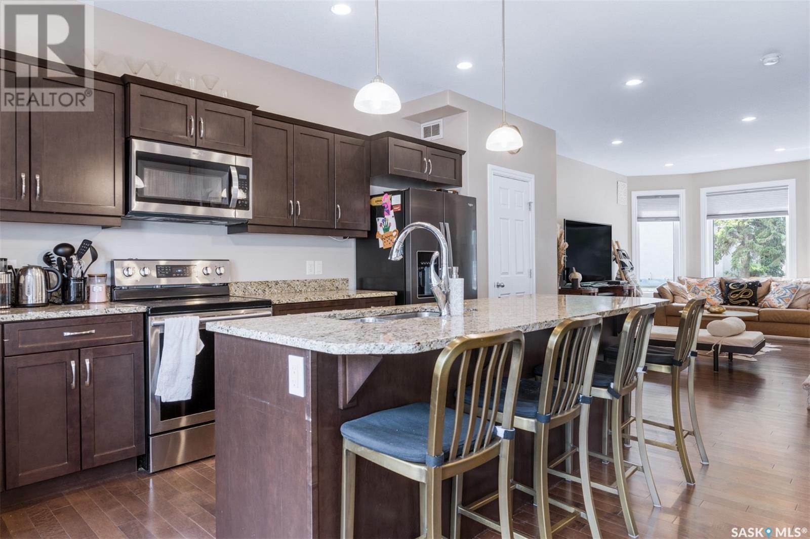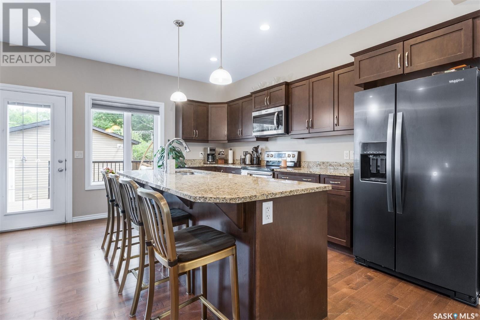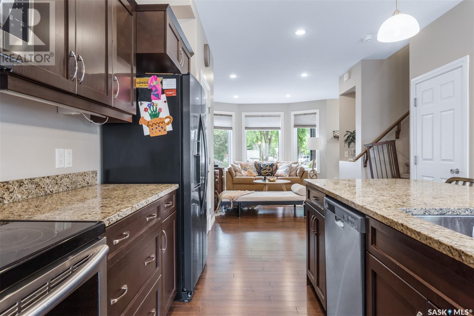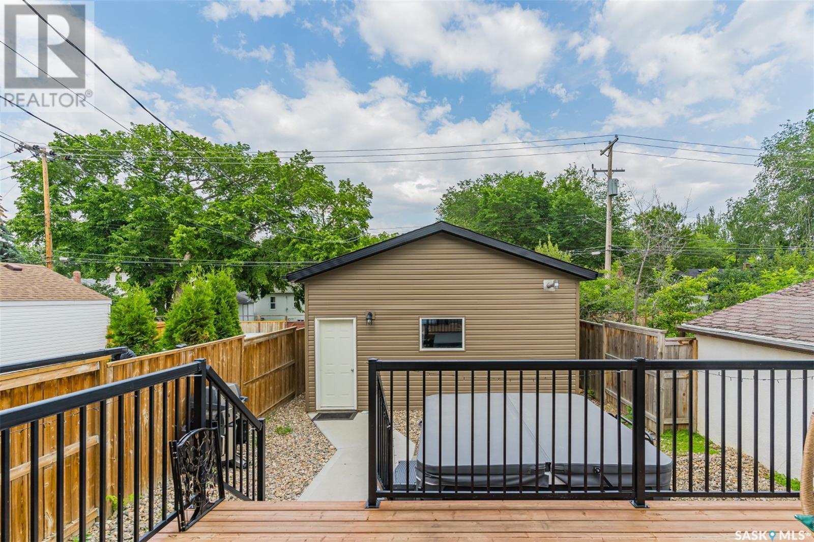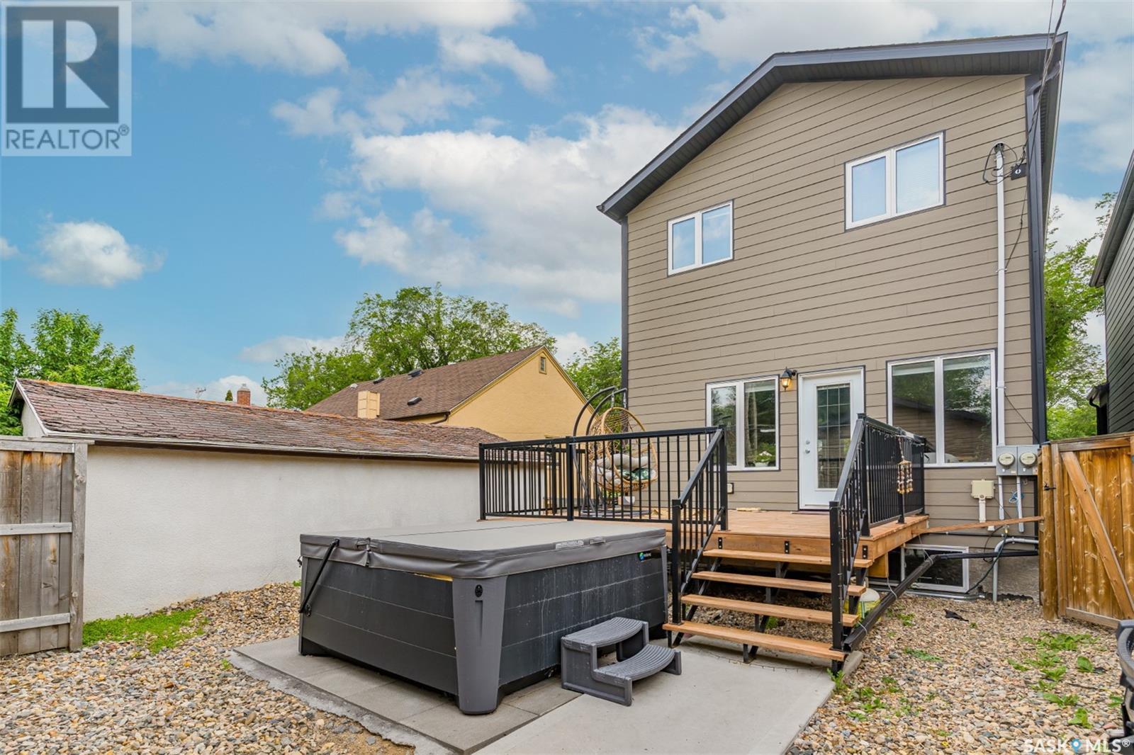 Discover the perfect blend of convenience and style in this two-story single-family home with a legal basement suite. Situated just South of 8th Street in Haultain, you'll enjoy effortless access to the University, Broadway, and downtown, putting all the best amenities within your grasp. Boasting a generous 1380 sq' of living space, this home showcases an open floor plan with 9' ceilings on the main level, creating bright and spacious ambiance. The maple hardwood flooring, dark maple cabinets, and granite counters exemplify the stylish design, while the large island and spacious dining area make entertaining a breeze. The master bedroom offers a cathedral ceiling, walk-in closet, and three-piece ensuite. An additional highlight of this property is a 1-bedroom, 1-bathroom legal basement suite, presenting opportunities for additional income. Outside you will find a large deck and hot tub. The home is complete with a double detatched garage that is insulated and heated. Don't miss the opportunity to make this exceptional property your own. Contact the listing agent today! (id:22211)