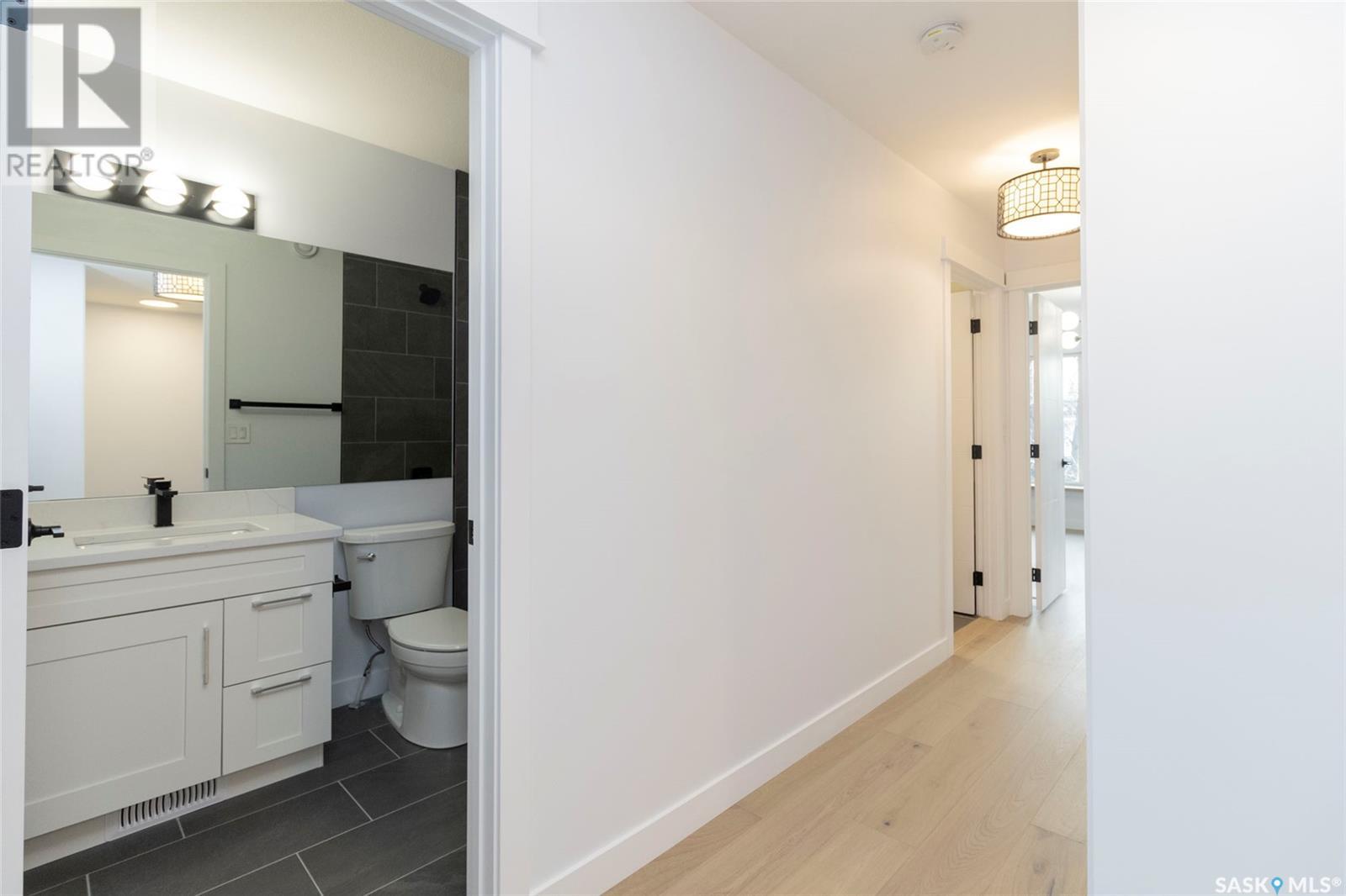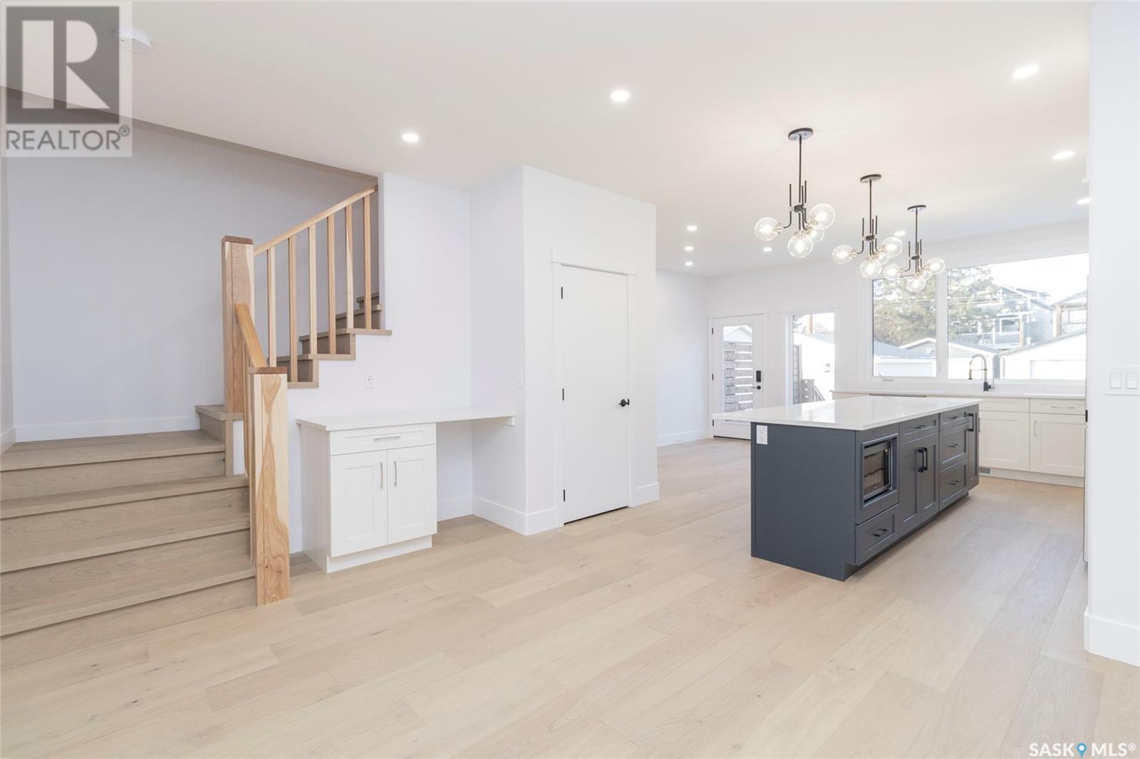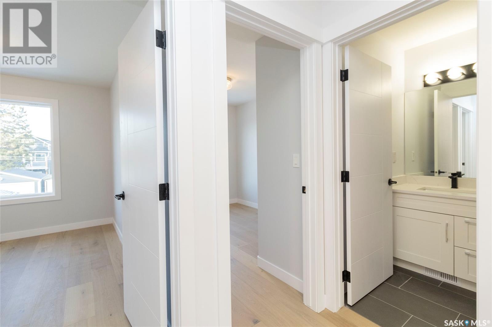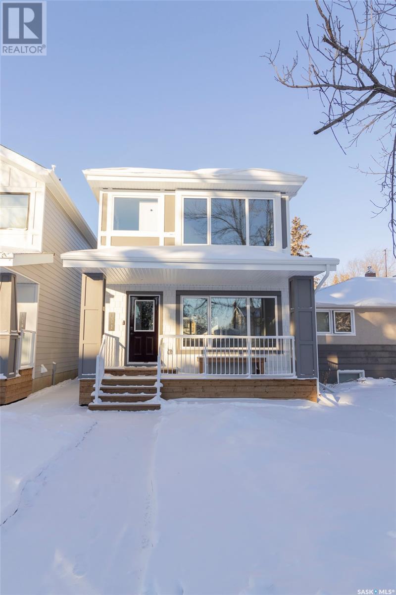 Welcome to 1329 13th St, in one of Saskatoon’s most desirable neighbourhoods Varsity View! With Albert Oulton and Raoul Wallenberg Parks minutes away, school and grocery stores down the street, this location would make the perfect place to call home. This new home is designed to seamlessly integrate into the beautiful established neighbourhood. Generous windows allow plenty of natural light to flow all throughout the home. Main floor features an open concept with two living spaces, 2 piece washroom, and a gorgeous kitchen with gas range. The hardwood flooring continues through the 2nd level with 3 spacious bedrooms. Master bedroom has a large walk-in closet with built in storage and a great 4 piece en-suite with heated floors. 2nd floor laundry room with a generous amount of storage. Other features of this home include: Spacious 9’ main floor & basement ceilings, Classic coffers in living room, Refined white oak engineered hardwood over both levels and stairs, Custom stair posts and handrails, Convenient side entrance with direct entry to basement, Basement roughed in for bathroom and potential suite, exterior walls framed and insulated for greater energy efficiency. Timeless exterior with fibre cement siding. Front landscaping, walkways & parking pad complete. Call your favourite agent today to view this new home! (Note: Some photos were virtually staged so buyers can visualize the space furnished.) (id:22211)