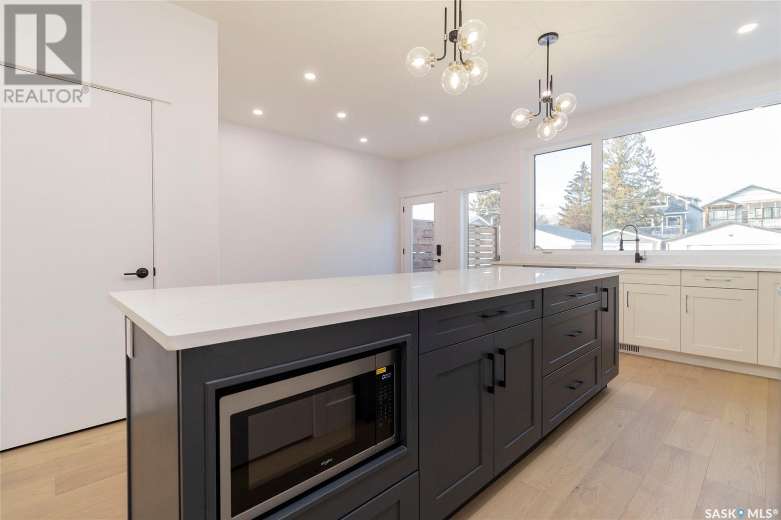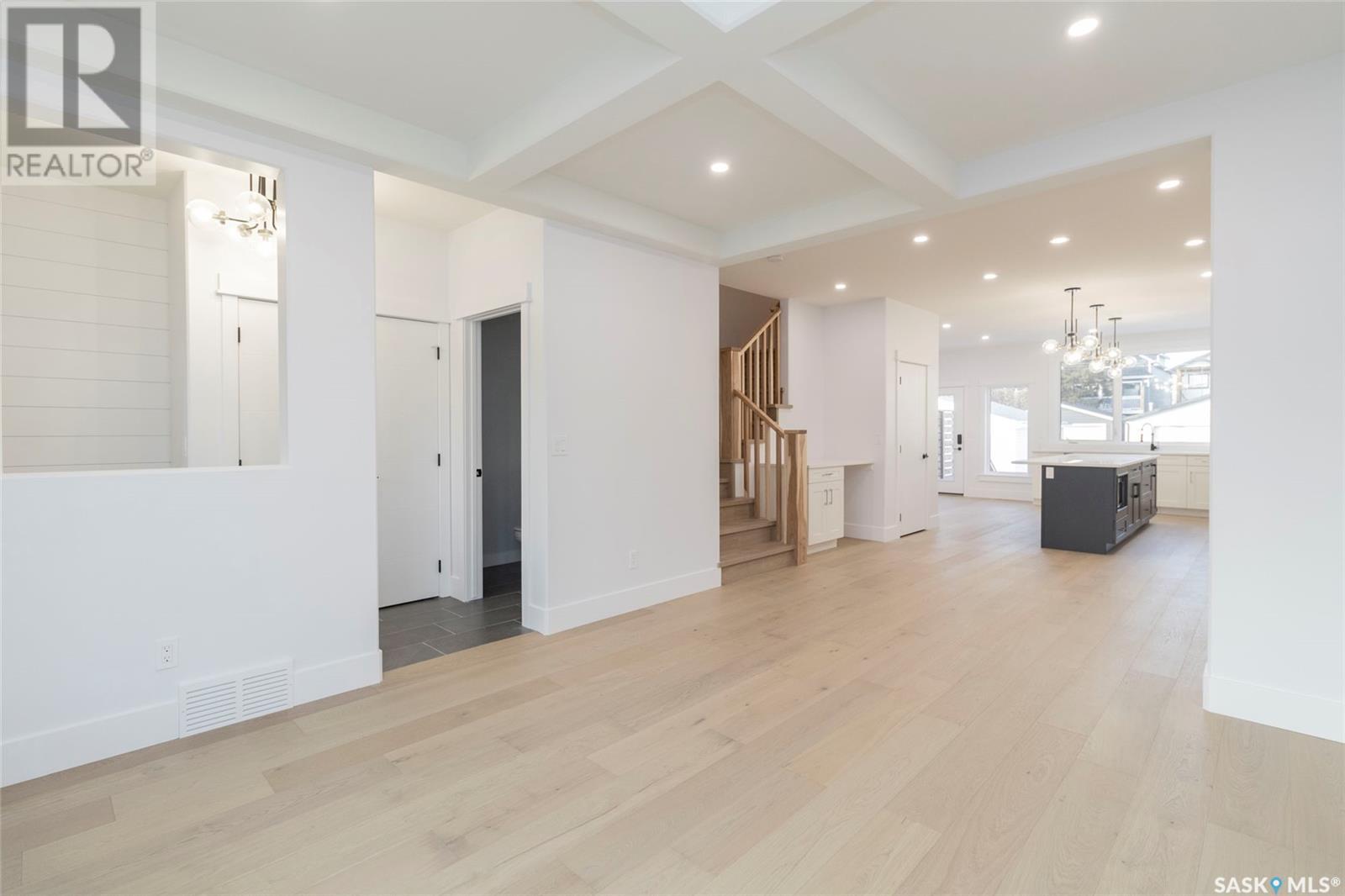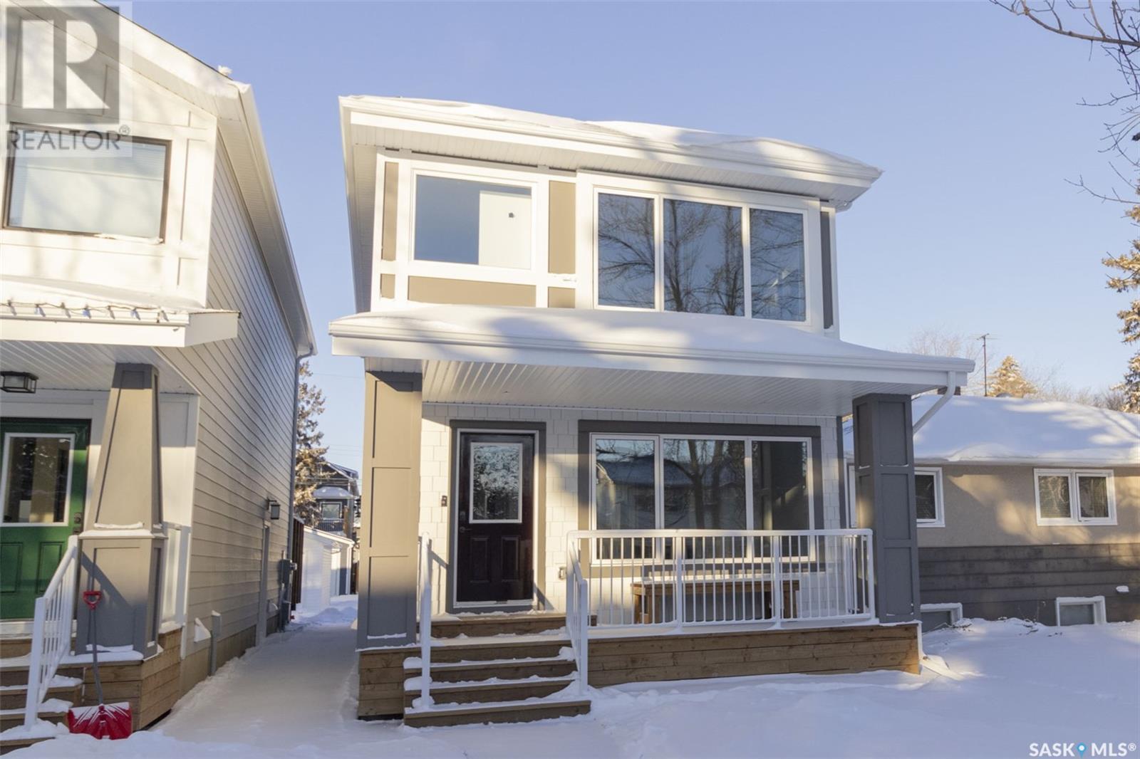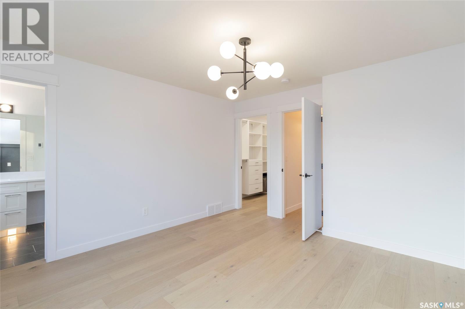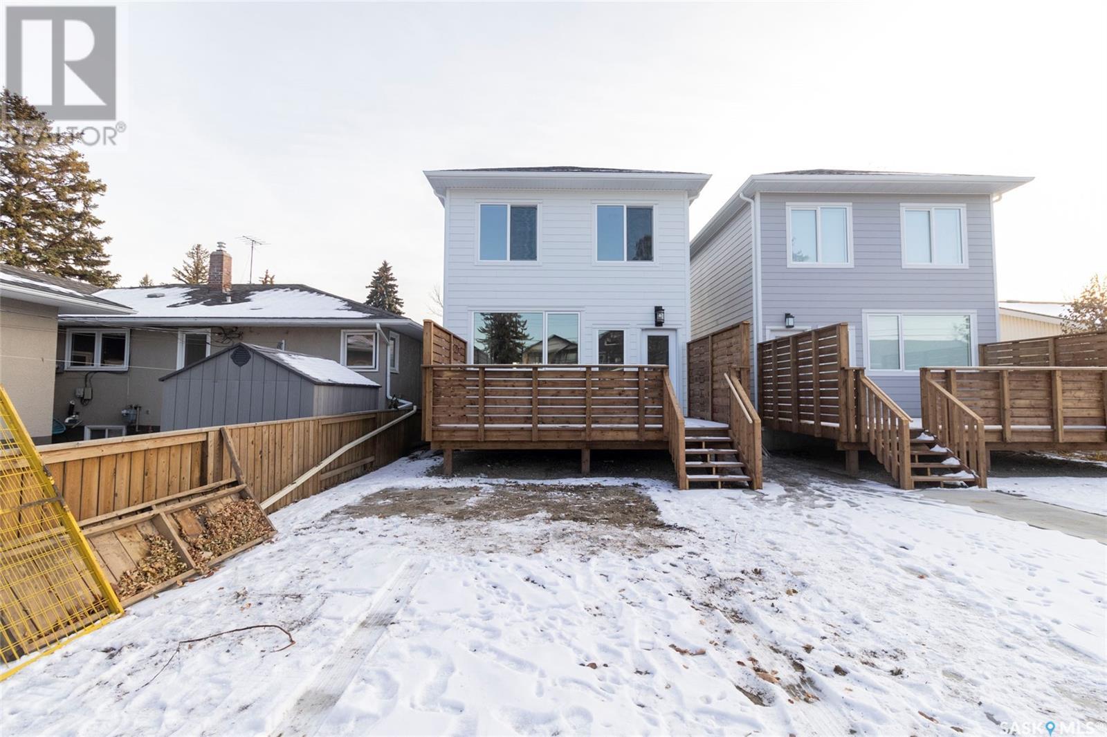 Welcome to 1329 13th St, in one of Saskatoon’s most desirable neighbourhoods Varsity View! With Albert Oulton and Raoul Wallenberg Parks minutes away, school and grocery stores down the street, this location would make the perfect place to call home. This new home is designed to seamlessly integrate into the beautiful established neighbourhood. Generous windows allow plenty of natural light to flow all throughout the home. Main floor features an open concept with two living spaces, 2 piece washroom, and a gorgeous kitchen with gas range. The hardwood flooring continues through the 2nd level with 3 spacious bedrooms. Master bedroom has a large walk-in closet with built in storage and a great 4 piece en-suite with heated floors. 2nd floor laundry room with a generous amount of storage. Other features of this home include: Spacious 9’ main floor & basement ceilings, Classic coffers in living room, Refined white oak engineered hardwood over both levels and stairs, Custom stair posts and handrails, Convenient side entrance with direct entry to basement, Basement roughed in for bathroom and potential suite, exterior walls framed and insulated for greater energy efficiency. Timeless exterior with fibre cement siding. Front landscaping, walkways & parking pad complete. Call your favourite agent today to view this new home! (Note: Some photos were virtually staged so buyers can visualize the space furnished.) (id:22211)